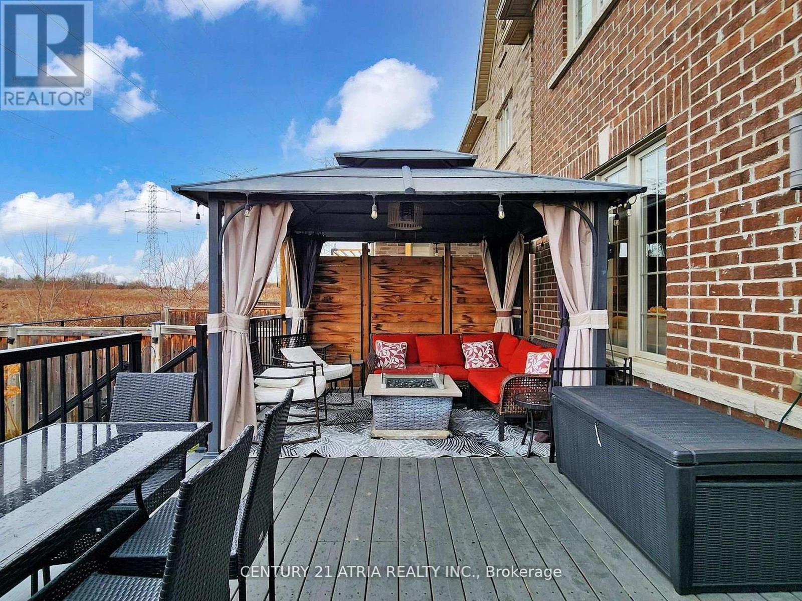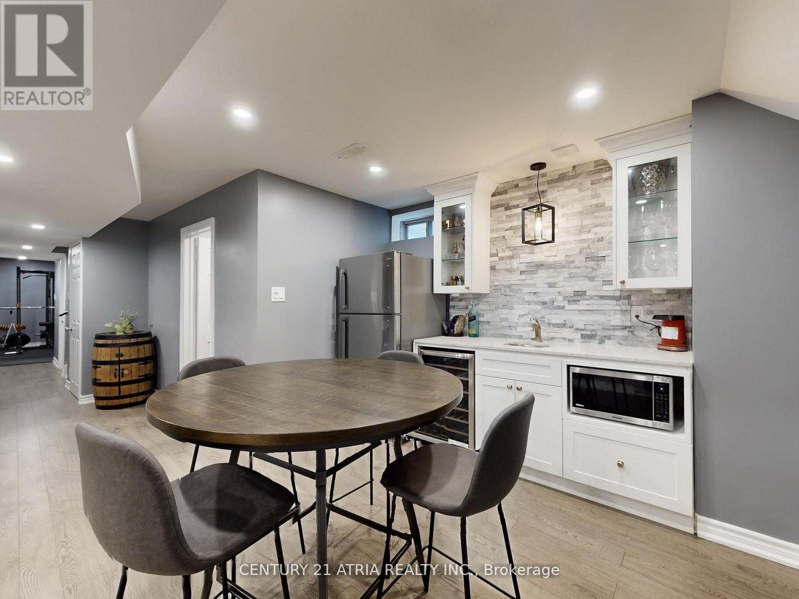 A MUST SEE in one of Ajax's most family-friendly communities offering approx. 2,800 sqft of total finished living space. Backing onto a tranquil green space with no rear neighbours, this upgraded home blends luxury & functionality. Features include smooth ceilings, crown moulding, wainscoting, California shutters, upgraded lighting & interior/exterior potlights throughout. The modern kitchen showcases quartz countertops, custom cabinetry & a walkout to a freshly re-stained deck (2025) overlooking the ravine; perfect for entertaining or quiet evenings outdoors. Upstairs offers a spacious primary suite with walk-in closet & convenient 2nd-floor laundry. The finished basement is an entertainer's dream with a wet bar, fireplace & potlights making it ideal for hosting or additional family living space. MAJOR UPDATES include new patio sliding doors (2025) & owned furnace, A/C + HWT. Located close to trails, parks, community centre, schools, shopping, restaurants and quick access to Hwy 401 & 407. Turn-key living with space, privacy & upgrades already done! (id:51158)