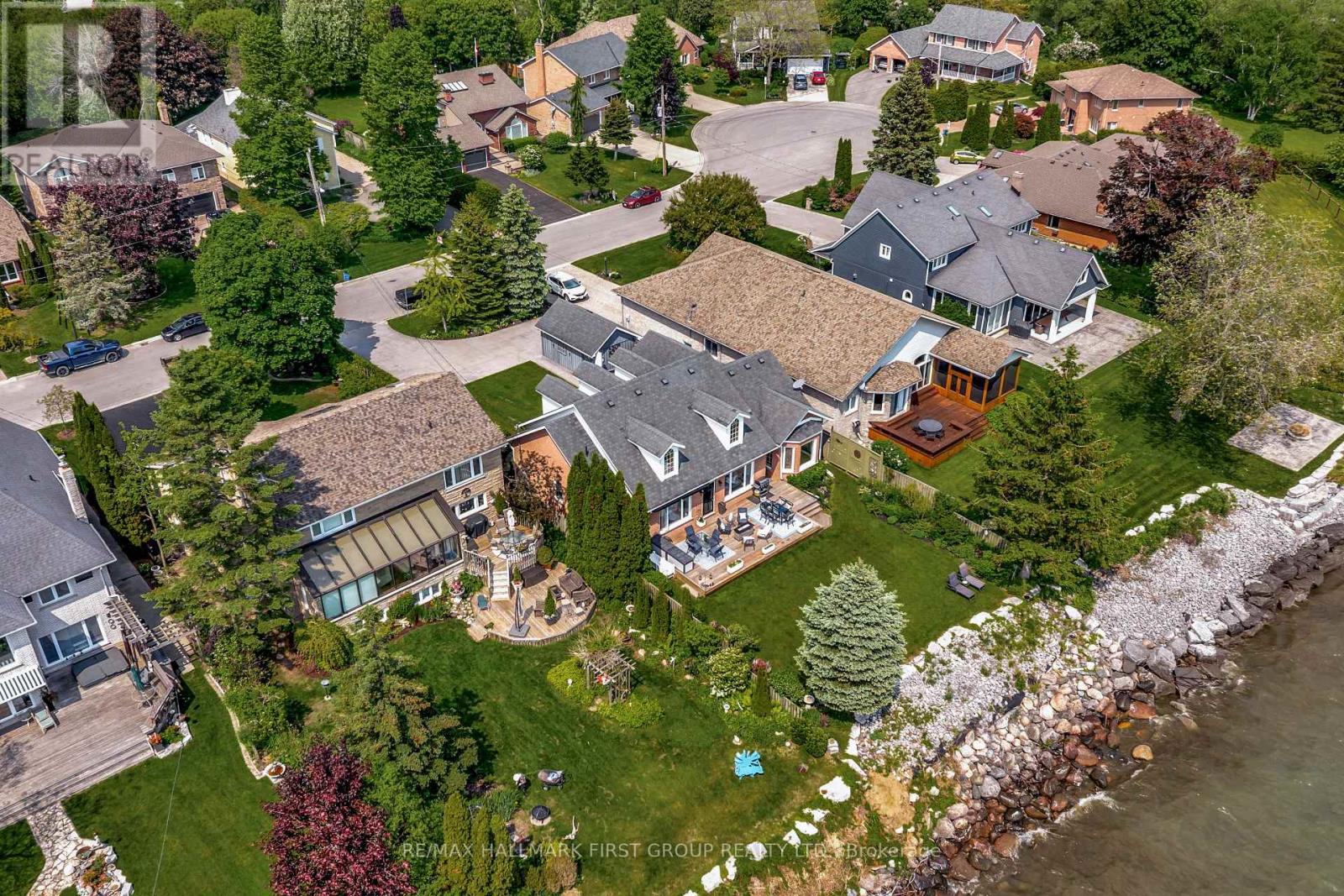 Discover refined waterfront living in this all-brick colonial, nestled on an exclusive street, where opportunities to purchase are rare. This beautifully updated 2 + 1 bed, 3 bath home is set in one of Cobourg's most coveted neighbourhoods & blends thoughtful renovations with executive functionality. From the stunning curb appeal to breathtaking views, prepare to be impressed. Inside, the expansive floor plan feats. 9ft ceilings on both levels, grand entry foyer with sight lines to the sun-filled family room & formal dining room, while a fully renovated kitchen w/ glass pocket doors feat. sleek quartz countertops modern appliances, including a b/i bar fridge, fridge, stove, microwave & dishwasher provides plenty of room to gather. Complete w/ a large centre island, servery, lakeside breakfast nook & access to the deck. Engineered hardwood floors run throughout creating a sophisticated flow. The primary bed overlooks the lake w/ ensuite privileges to the updated bath, while the 2nd bed overlooks the garden. Appreciate main floor laundry, w/i pantry & mudroom. The finished basement includes a spacious family room, 3rd bed, full bath in addition to a games area, storage & workshop under the stairs. An efficient ICF foundation provides year-round comfort with in-floor heating on both levels. Outside, find a stamped concrete driveway, and professional landscaping throughout. The backyard is a private oasis complete with a retractable awning over the updated deck perfect for entertaining, relaxing, or enjoying the evening lake breeze. Every inch of this home has been thoughtfully maintained and stylishly upgraded, offering a rare opportunity to enjoy an exceptional lifestyle near the water, in the heart of Cobourg. Enjoy morning sunrise & evening sunsets, a short stroll to Cobourg's Peace Park, the West Beach, marina, and downtown Cobourg -- truly the best of small-town living w/ quick access to the 401 & proximity to Northumberland Hills Hospital. (id:51158)
