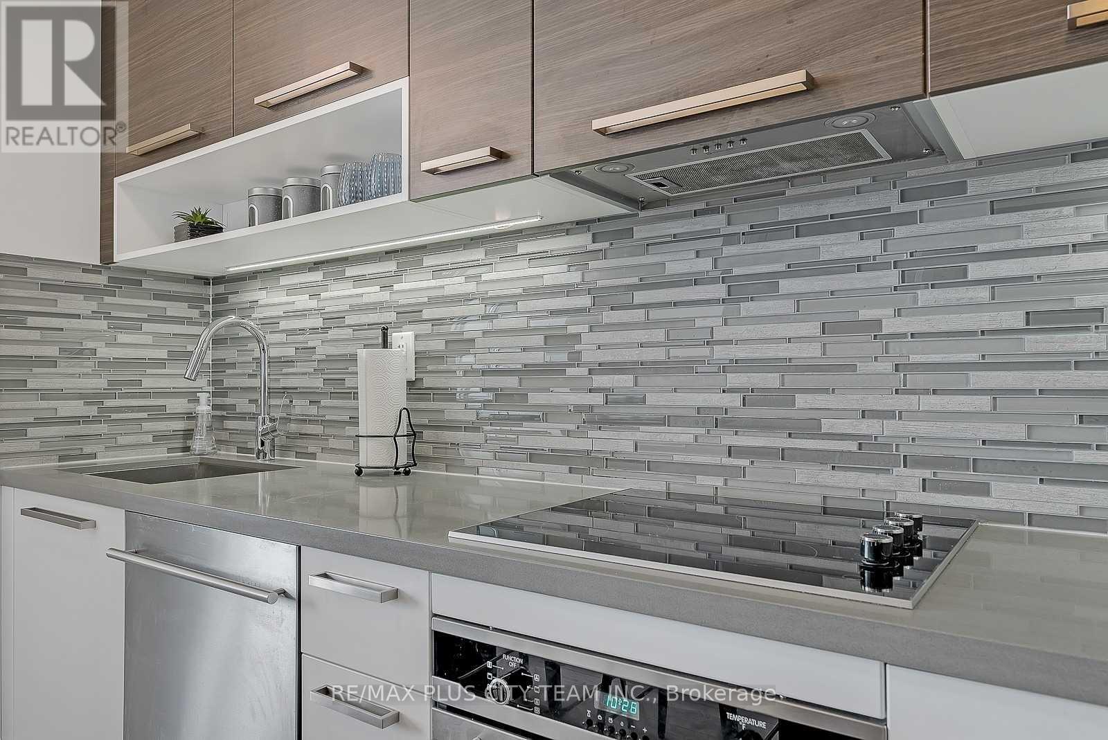 Welcome to this stunning one-bedroom sub-penthouse, where 10-foot smooth ceilings create an expansive, airy atmosphere and elevate the overall sense of luxury. The thoughtfully designed kitchen features quartz countertops and stainless steel appliances, offering both style and functionality. The open-concept living and dining area flows seamlessly onto a private balcony, perfect for enjoying spectacular views and fresh air. Enjoy the convenience of a dedicated parking space located just steps from the elevator, making daily living effortless. Ideally situated just moments from the lake, scenic bike paths and trails, as well as everyday essentials like Metro, LCBO, Shoppers Drug Mart, and more, this residence offers a perfect balance of tranquility and urban convenience. Whether you're seeking a serene retreat or vibrant city living, this sub-penthouse delivers both in a prime waterfront location. (id:51158)