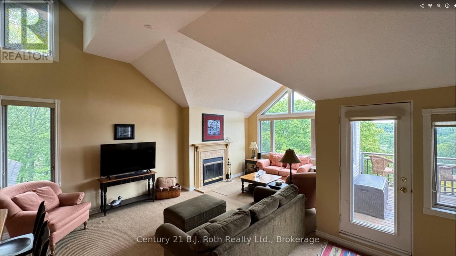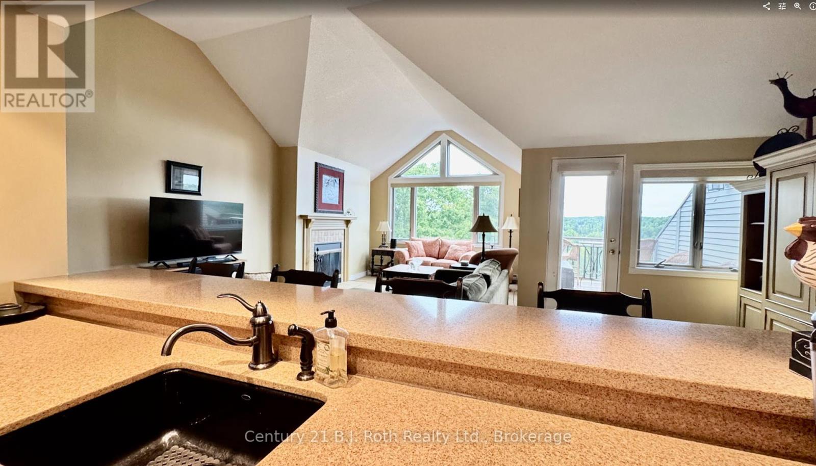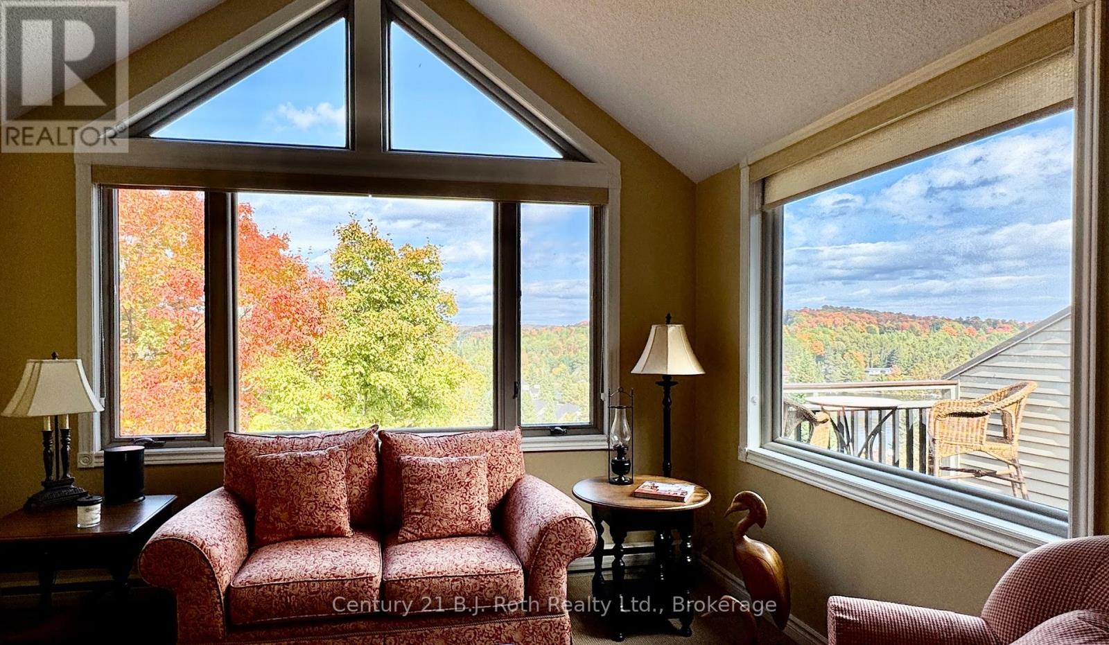 $590.96 MonthlyPRICED TO SELL! Located in the center of Muskoka surrounded by Lakes, rock, trees, hills, Muskoka pines and wild life. Walk into this condo & the first thing you will see is the fantastic view that changes with every season. The cozy Muskoka decor will make you feel like being at the cottage. This unit has always been used as a summer retreat for the past & present owners. The condo fees of $590.96/month make it affordable living & one of the lowest fees for a 2/2 condo in Grandview. Water access off the swim dock just a short walk away. Close to town with it's amenities but far enough out to feel like country living. The enclosed Loft can be made into an office/den or a large second bedroom. Two renovated bathrooms with heated flooring in the main bathroom. Kitchen has also been updated with modern appliances. Brand new AC unit(2025). Combination of hardwood floors, tile & carpet. Modern floorplan with high vaulted ceilings make this 1400 sq ft home feel large. The outside deck has been extended for more comfort while taking in the grand view with a glass of wine or dinner on the patio. Golfing is available close by as well as many hiking trails, downhill skiing, skating at Arrowhead Park, fishing, boating, camping at Algonquin Park & Limberlost Park. Grandview is an established community that is people & pet friendly. Quiet top floor, corner unit. No one over your head walking about. Time to go south for the winter, travel or go back to the city? Just lock it up & leave! A great down sizing home.(Approximate costs: Electricity $185/month Hot Water tank rental $28/month Taxes $3109.96 /year Bell Fibre $95/month Condo Fees $590.96/month ) (id:51158)