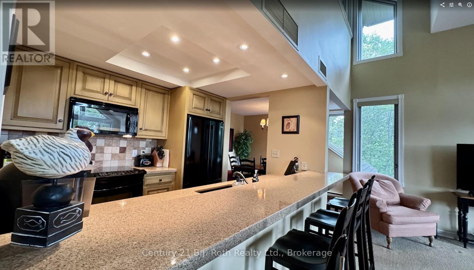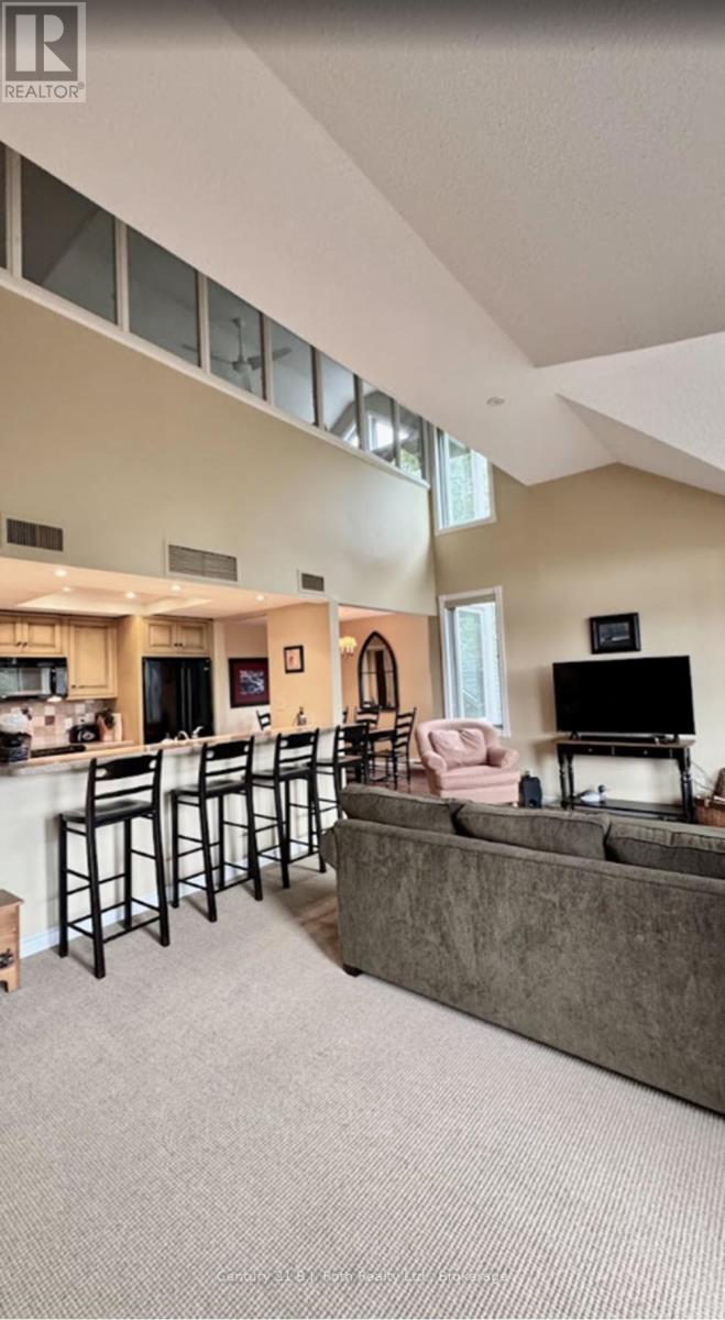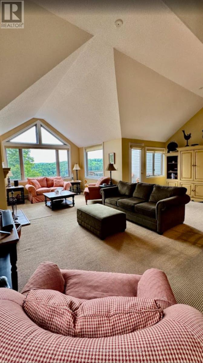 $590.96 MonthlyPRICED TO SELL! Located in the center of Muskoka surrounded by Lakes, rock, trees, hills, Muskoka pines and wild life. Walk into this condo & the first thing you will see is the fantastic view that changes with every season. The cozy Muskoka decor will make you feel like being at the cottage. This unit has always been used as a summer retreat for the past & present owners. The condo fees of $590.96/month make it affordable living & one of the lowest fees for a 2/2 condo in Grandview. Water access off the swim dock just a short walk away. Close to town with it's amenities but far enough out to feel like country living. The enclosed Loft can be made into an office/den or a large second bedroom. Two renovated bathrooms with heated flooring in the main bathroom. Kitchen has also been updated with modern appliances. Brand new AC unit(2025). Combination of hardwood floors, tile & carpet. Modern floorplan with high vaulted ceilings make this 1400 sq ft home feel large. The outside deck has been extended for more comfort while taking in the grand view with a glass of wine or dinner on the patio. Golfing is available close by as well as many hiking trails, downhill skiing, skating at Arrowhead Park, fishing, boating, camping at Algonquin Park & Limberlost Park. Grandview is an established community that is people & pet friendly. Quiet top floor, corner unit. No one over your head walking about. Time to go south for the winter, travel or go back to the city? Just lock it up & leave! A great down sizing home.(Approximate costs: Electricity $185/month Hot Water tank rental $28/month Taxes $3109.96 /year Bell Fibre $95/month Condo Fees $590.96/month ) (id:51158)