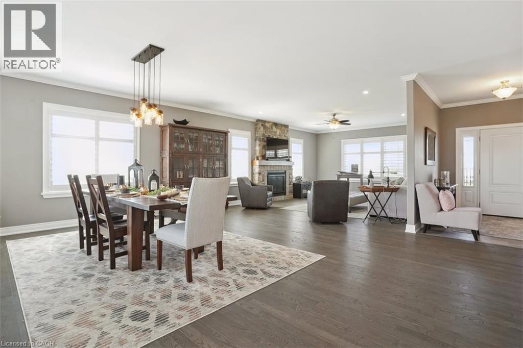 Your New Country Home is a Spectacular Open Concept Bungalow On Over 3 Professionally Landscaped Acres. Executive Chef Kitchen that Includes A 48 Dual Fuel Wolf Range w/matching Wolf Pro Range Hood. A 36 Sub-Zero Fridge, Integrated Kitchen Aid Dishwasher. The Solid Maple Kitchen Cabinetry Is Finished With A Cambria Quartz Counter Top. The Oversize Dining Room Space Has A Walk-Out To Sun Deck/Bbq Area. Open Concept To The Living Room Where The Center Piece Is A Stone Surround Wood Mantle Gas Fireplace. Large Windows Come Complete With 4 1/2' Wide Eclipse Shutters Throughout The Entire Home. Primary Ensuite Has Heated Tile Floors, Heated Towel Bar & A Large Walk-In Closet. Plus, A Walkout To Sun Deck. The Main Floor Has 3.25 Ash Hardwood Throughout. The Finished Basement Has Radiant In- Floor Heating Throughout. A Lrg 4th Bedroom (In-Law Space) & Large Office. The Exercise Room Has Quick Fit Interlocking Rubber Gym Tile And Has walkout to ground level. (id:51158)