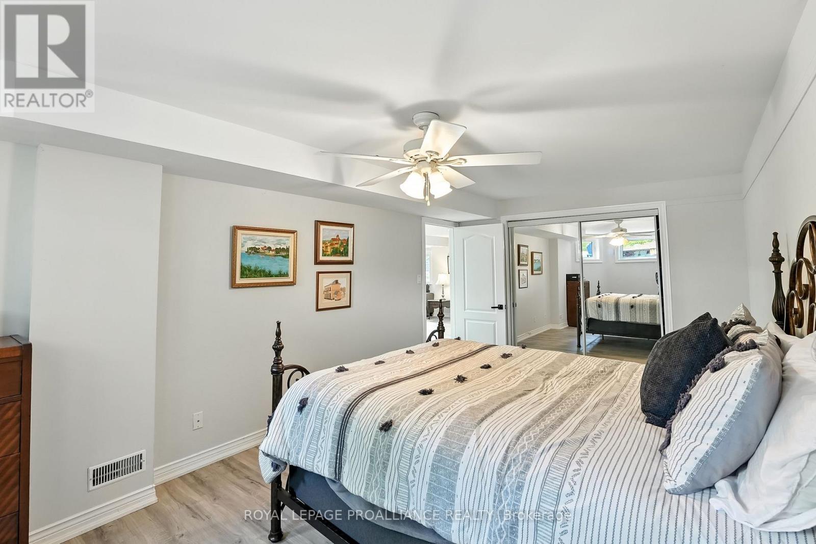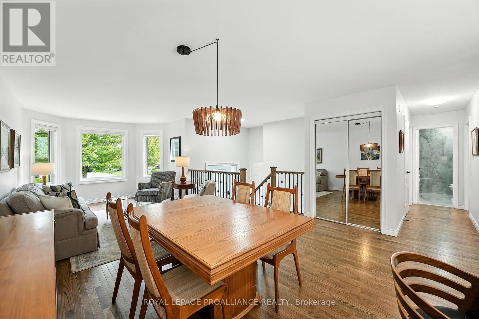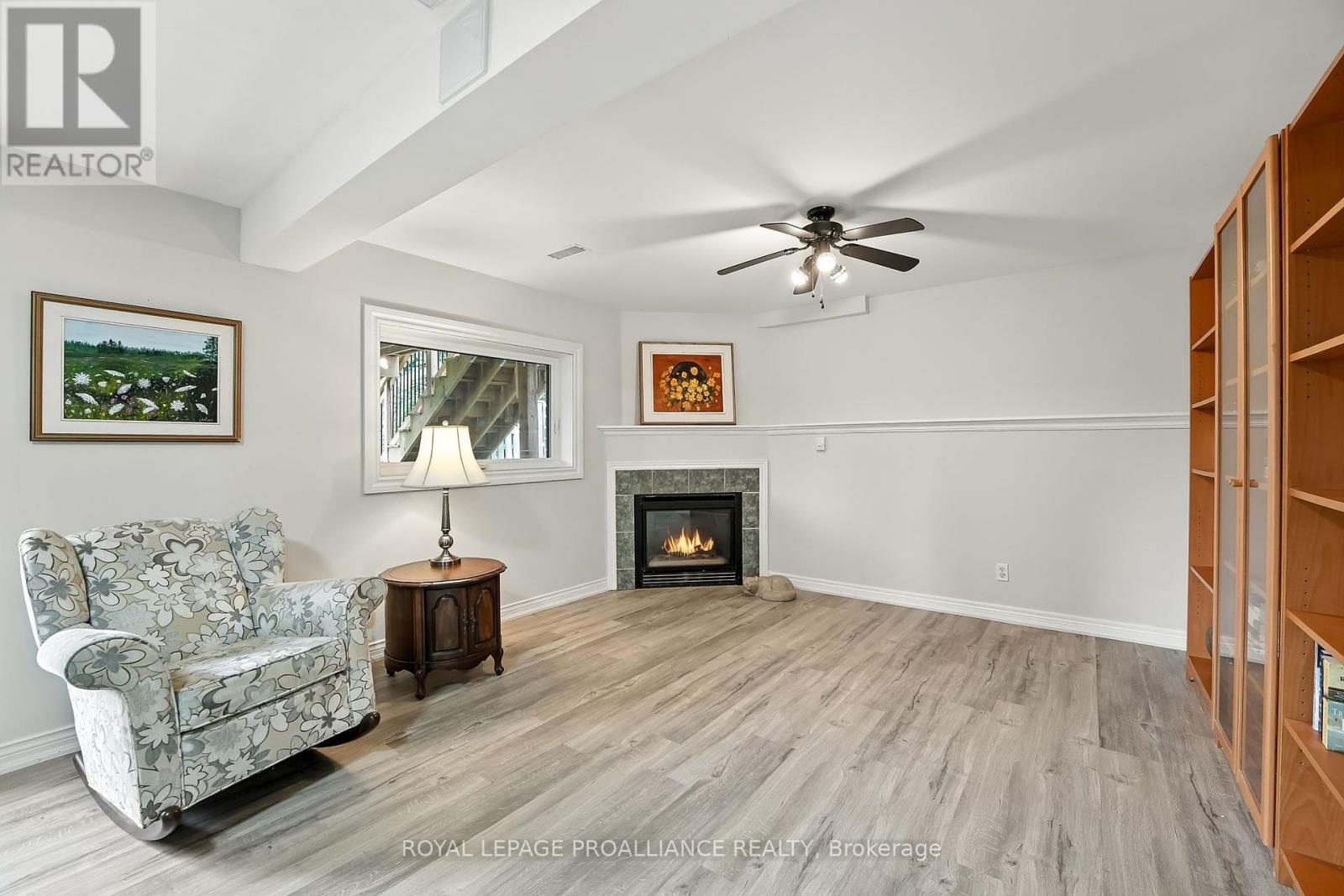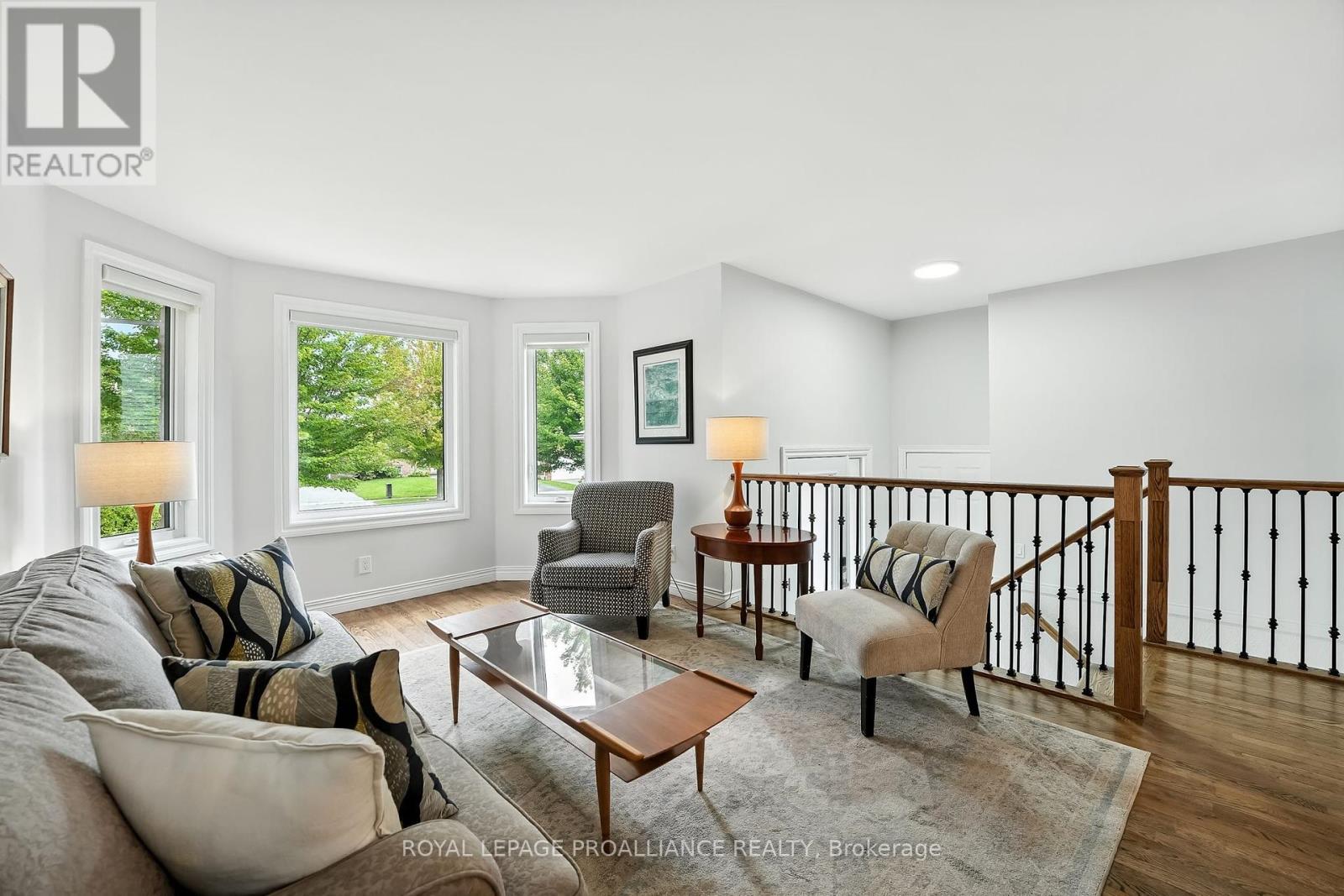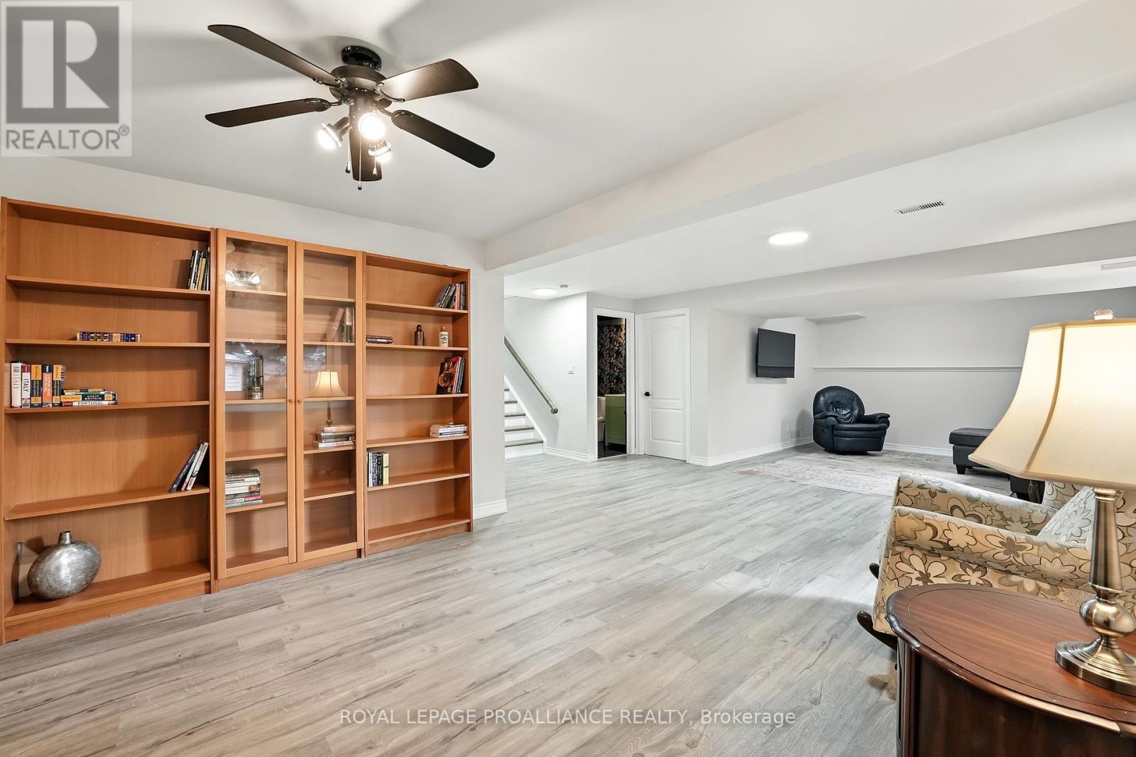 Designed with comfort, elegance, and functionality in mind, this property offers exceptional indoor and outdoor living. Ideally located with easy access to Hwy 401, the hospital, Walmart, Home Depot, and Terry Fox School, and just minutes from downtown. Scenic walking trails, parks along the creek, and the YMCA are all within walking distance. Inside, expansive custom windows allow for plenty of natural light throughout, while elegant hardwood flooring adds warmth. The gourmet kitchen features a peninsula island and abundant cabinetry, designed for entertaining and seamlessly connected to the open-concept dining and living areas. The fully finished basement includes a natural gas fireplace and a walkout to the backyard deck. The spacious deck off the kitchen functions as an extra summer room, perfect for relaxing or entertaining. The exterior offers an attached 1 -car garage with opener, driveway parking for four vehicles, and a lovely, green backyard ideal for enjoying the outdoors while still being minutes from town and Hwy 401. Recent upgrades make this home truly move-in ready. Highlights include a custom kitchen with quartz countertops and waterfall peninsula (2023), renovated bathrooms, refinished hardwood flooring, new stairs and railings, LVP flooring in the basement, new appliances, expanded front patio, new windows, doors, patio door, awning fabric, garage door, water softener, new decks, and a custom closet organizer in the primary suite. Additional improvements include ceramic tile at the front entrance, extra attic insulation. (id:51158)