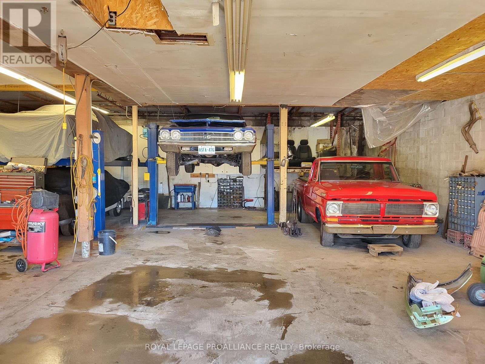 Large Commercial/Industrial Building, with approximately 3800 square feet, on a 1/2 + acre lot, lots of parking for cars, truck, trailers, etc. 550 volts available, 10 foot bay door, 2 car hoists, 8 foot privacy fence around the entire property, with a large gate for entry. Many possible uses such as Warehouse, Storage, Automotive, etc. Only 5 minutes to Belleville and the 401. (id:51158)