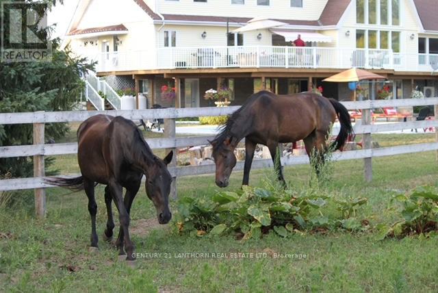 Welcome to 439 Oak Lake Road! A private country estate where luxury meets serenity. Set on 30 rolling acres in Stirling, this 5 bedroom, 3.5 bath home is accessed by a gated, tree-lined driveway that winds toward a striking 3,263 sq. ft. residence. Vaulted ceilings and massive windows fill the living room with natural light and showcase panoramic views. A grand stone fireplace connects all levels, anchoring the homes warm, inviting atmosphere. The kitchen is built for cooking and entertaining, with a 12-ft granite waterfall island, propane fireplace, and a spacious pantry framed by restored barn doors. The main floor primary suite offers true relaxation, complete with a spa-like ensuite featuring heated floors and a generous walk-in closet. Step outside to your personal resort: a saltwater pool, hot tub, and wide deck overlooking peaceful countryside views. This property is more than just a beautiful home; in addition to the attached heated garage this estate comes complete with a 2300 sq. ft. 5 car detached garage including loft space. Equestrians will appreciate the well-maintained barn with 5 stalls and 4 paddocks. Recreation is right at your doorstep - golf at Oak Hills 36 hole course, fish local lakes, hike scenic trails, or ride year-round. In winter, enjoy skiing at Batawa, snowmobiling, or catching a show at the Stirling Theatre. All just 20 minutes from Belleville and Trenton. This property is the perfect blend of sophistication and rural living. (id:51158)