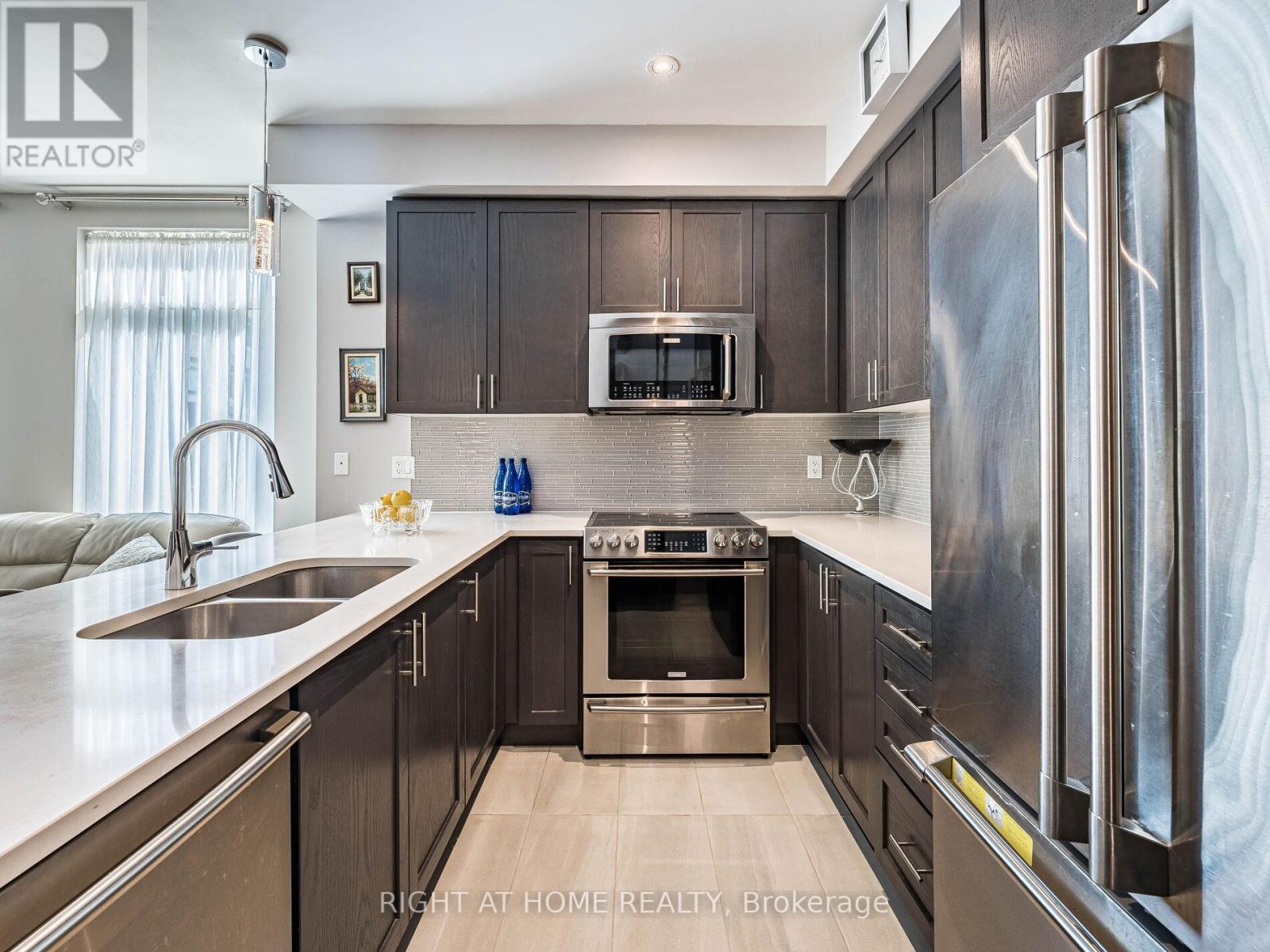 $502.85 MonthlyStunning Ultra End Corner Unit at Dwell City Towns by Menkes! Only 1 of 8 available in the complex! This is the townhome you've been waiting for, a corner unit boasting an abundance of windows that fill the space with natural light. Step inside to an inviting open-concept living area with soaring 9-foot ceilings, perfect for modern living. The kitchen is a chefs delight, featuring elegant granite countertops, stainless steel appliances, and a spacious peninsula. The second level offers two generously sized bedrooms, , and stylish 4-piece ensuite bathroom. Ascend to the luxurious third level, where you'll discover an expansive primary suite complete with double walk-in closets and a spa-like ensuite featuring a relaxing soaker tub and separate shower. Enjoy your morning coffee or unwind in the evenings on your private balcony. The fourth level boasts a private rooftop oasis, perfect for hosting friends and family or simply soaking up the sun! This incredible unit also includes two underground parking spots, making it truly one of a kind! Seize this rare chance to own a truly exceptional home in Dwell City Towns! Bonus less than 10 mins to Pearson Airport and Less than 5 mins to Sherway Gardens! No car? Transit Heaven and Mins to Grocery Stores! Upgraded Window Treatments, Gas Line on Rooftop, 2 Premium underground parking spots. (id:51158)