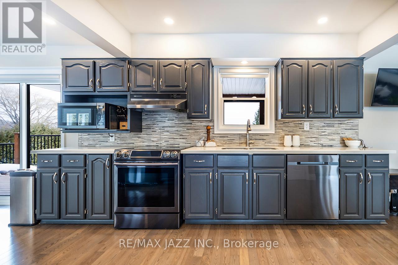 Spectacular lake house with 100 feet of direct waterfront with the highly desired Aino Beach address surrounded by multi-million dollar waterfront properties! Incredible 3+1 bedroom & 4 bath home with fully finished walk-out basement. Beautiful open concept floor plan with formal living/dining & family rooms with hardwood flooring, oversized 2 car garage with indoor access, family sized kitchen with quartz countertops that overlook the stunning waterfront, huge covered patio, custom stone fireplace, primary bedroom with full ensuite bath and walk-in closet. Incredible 100 x 250 foot lot with hot tub, gazebo, pond, garden shed & private dock for your boat, main floor laundry, incredibly bright and open concept finished basement with additional bathroom, bedroom/den area rec room are perfect for entertaining! This home shines top to bottom. Endless upgrades improvements, Magnificent water views from all angles, direct access to the Trent Severn way for boating. Year round road access on quiet no-exit street. New roof 2020, new windows 2020, new California shutters, new hot tub 2020, professionally painted, new water filtration system with uv light 2020, new driveway and interlock borders & walkway 2021, all new appliances 2020, renovated lower bathroom 2021, new outdoor water feature and water system 2020, refinished cedar deck 2020, new Napoleon furnace, air-conditioning and fireplace 2020, Bell highspeed internet/tv and so much more. Full height bonus loft area over the garage could be a large additional area providing added square footage. Approximately 1 hour to Toronto & 20 minutes to historic downtown Port Perry. Waterfront homes like this are rarely found. This is a 10+ home. (id:51158)