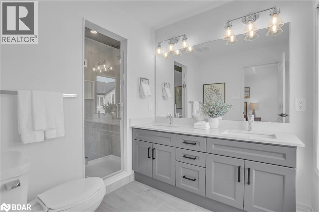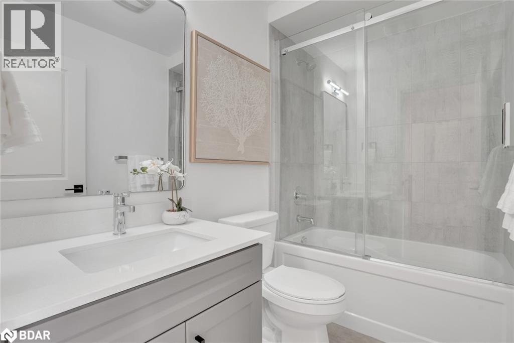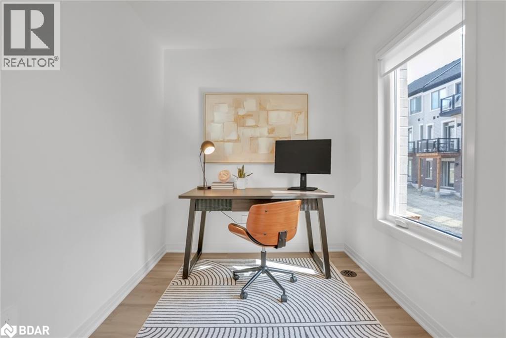 DESIGNER FINISHES, PERSONALIZED STYLE, & BUILT FOR COMFORT! Welcome to the Townes at Deer Springs by Honeyfield Communities. This brand-new interior unit brings bold design and effortless function together in a layout made for modern living. With 3 bedrooms, 2 full bathrooms, plus a convenient powder room, every inch of this home is thoughtfully crafted. Featuring a selection of upgraded builder finishes, this home showcases modern trim, sleek railings, elegant oak-finish stairs, and smooth ceilings. The main floor impresses with 9-foot ceilings and premium laminate flooring that continues to the upper level. The kitchen features tall upper cabinets, upgraded two-toned cabinetry, backsplash, valance lighting, quartz countertops, a large island, pot lights, and stainless steel appliances, including a 6-piece appliance package. The primary bedroom offers a walk-in closet and a modern ensuite with a frameless glass shower and upgraded Caesarstone quartz-topped vanity. Two additional bedrooms include double closets, with one offering access to a private balcony, and the main bathroom features an upgraded vanity and frameless glass sliding shower door. The lower-level office features a French door entry and walkout to a deck, with the basement offering a blank canvas. A smart laundry system adds convenience with a white front-load washer and dryer, upper cabinets, and a hanging rod. Enjoy two balconies with glass railings, a fenced backyard, a keyless front door entry, an oversized single-car garage, and extra driveway parking. Low fees cover maintenance of front and side yards, parkette and main entrances, roof repairs due to leaks, shingle replacement and more. Enjoy the best of community living with nearby parks, schools, dining options, a golf course, a community/fitness centre, and daily essentials minutes away. Images shown are not of the property being listed but are of the model home and are intended as a representation of what the interior can look like. (id:51158)