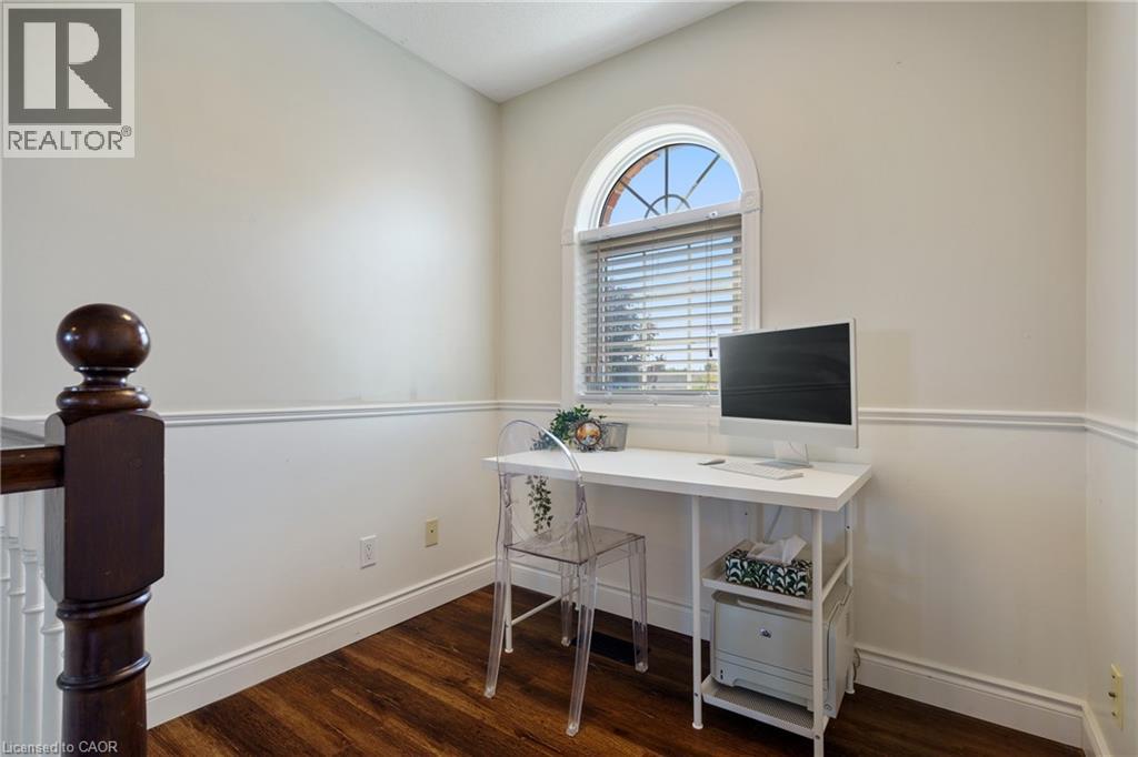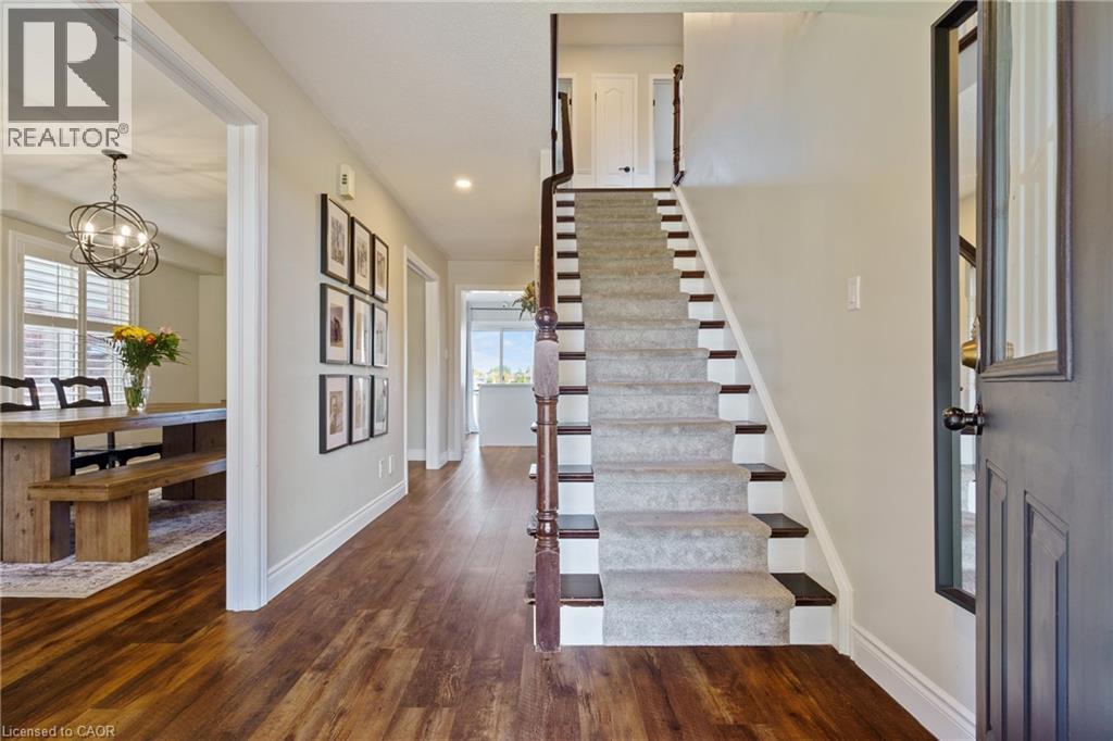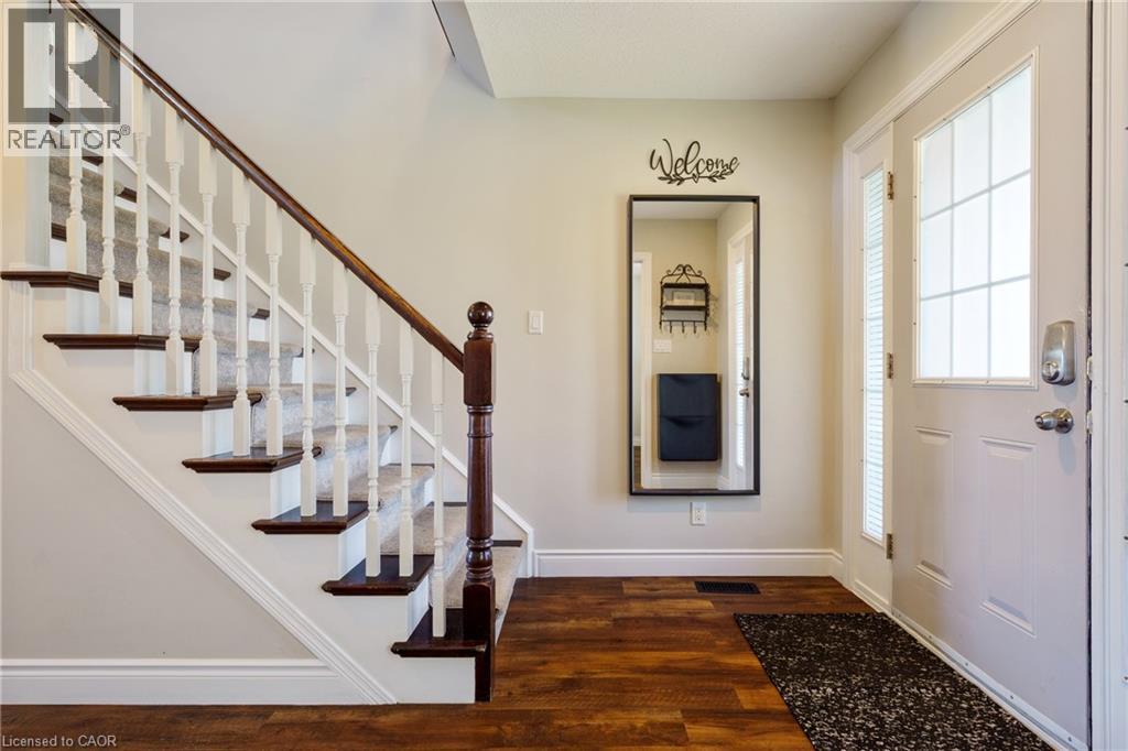 Welcome to 44 Grassyplain Drive, a charming red-brick home with great curb appeal and beautiful, award-winning gardens. Situated in a family-friendly neighborhood, this home is surrounded by well-maintained, detached properties. As you enter, you’re greeted by a bright foyer that leads to a sunny dining room and a spacious, open-concept kitchen and living room. The kitchen was updated in 2023 with quartz countertops, a matching backsplash, stainless steel appliances, and a central island with seating. The main floor is carpet-free, making it easy to clean, and has a practical layout for both everyday living and entertaining. Upstairs, the large primary bedroom features a walk-in closet and a private 4-piece ensuite. There are also three additional bedrooms, each with plenty of closet space and large windows that let in lots of natural light. A 4-piece bathroom and an office/flex space complete the second level. The finished basement includes a cozy rec room, which could easily be converted into another bedroom if needed. Outside, you can relax on the patio and enjoy the quiet view with no rear neighbors. This home is just minutes away from schools, parks, and the Ancaster Meadowlands Shopping Centre. Well-maintained and move-in ready, it has everything a growing family needs. Book a showing today before it’s gone! (id:51158)