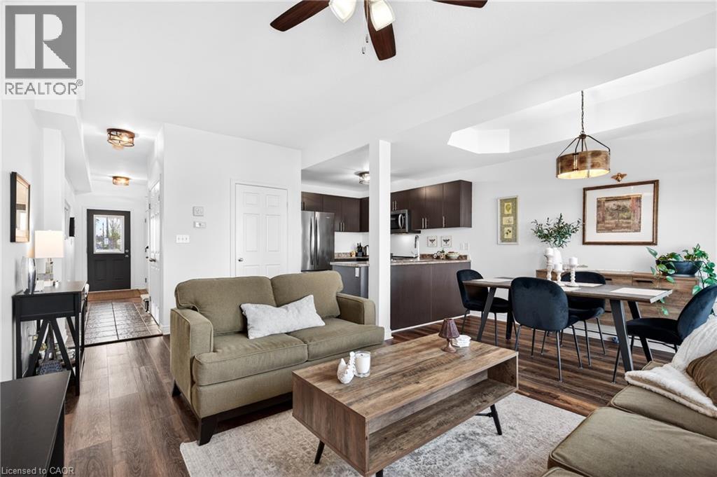 Welcome home to this beautifully updated two-storey freehold townhome, perfectly set in a family-friendly neighbourhood surrounded by upscale homes. With gorgeous curb appeal and a private, backing onto scenic open green space, this property offers the ideal blend of comfort, style, and location. Step inside to a freshly painted interior (2025) featuring coffered ceilings in the dining room and a thoughtful layout designed for everyday living and entertaining. The kitchen shines with all new appliances (2024), while new carpeting throughout (2024) adds warmth and a fresh, move-in-ready feel. Upstairs, the spacious primary bedroom boasts a large walk-in closet plus an additional closet, while the second bedroom also features its own walk-in closet. The finished basement provides valuable extra living space for a rec room, home office, or gym. Outside, enjoy your own private retreat with a two-tiered deck, stone patio, and garden, ideal for summer entertaining or quiet evenings outdoors. Added conveniences include interior garage access, backyard access directly from the garage, and a double driveway that is rare and highly sought after. This is the one you’ve been waiting for- move-in ready, beautifully updated, and perfectly located. Book your private showing of this Freehold town today! (id:51158)