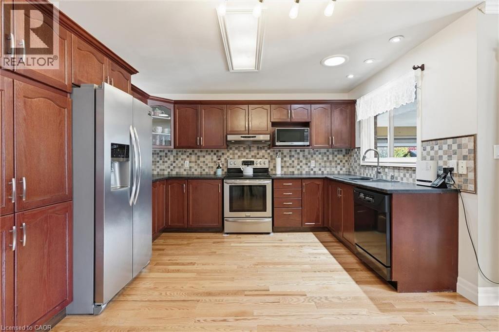 Welcome to 44 Rockhaven Lane nestled in the heart of Waterdown! This rare bungalow showcases approximately 1,463 sq. ft. of well-designed living space above ground, with direct access to the double garage featuring a new garage door. Designed for comfort and convenience, the main floor boasts a spacious primary suite with ensuite and walk-in closet, a versatile second bedroom ideal for guests or a home office, a full bathroom, main floor laundry, and a stunning vaulted ceiling in the living room. The bright, open-concept kitchen features a walk-out to a covered deck and fully fenced backyard-perfect for relaxing or entertaining. A main floor family room with a cozy gas fireplace adds warmth and comfort to the home. The lower level extends the living space with two additional bedrooms, a full bathroom, a cold storage room, and an oversized workshop. There's also a generous recreation area-perfect for entertaining or enjoying movie nights on your 70 TV. Perfectly situated within walking distance to schools, parks, and shopping, this home also offers easy access to the GO station and major highways for convenient commuting. (id:51158)