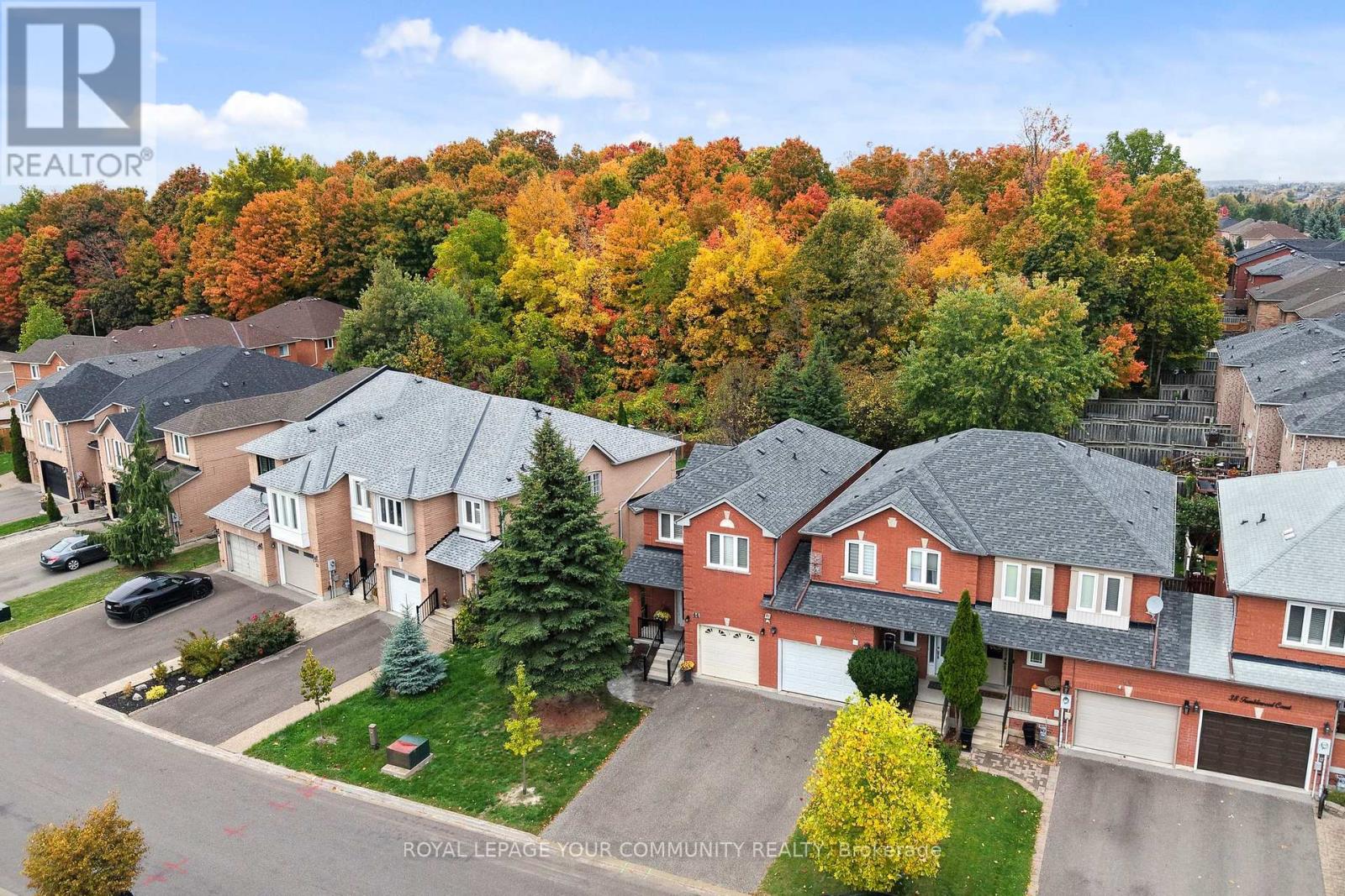 Beautifully maintained 1,480 sq. ft. end-unit townhome situated on a ravine lot backing onto conservation land - no rear neighbours! Located on a quiet, low-traffic cul-de-sac. This home offers a great, free-flowing layout featuring a cozy living room with a fireplace and a spacious dining area. Includes three generous bedrooms, with the primary bedroom boasting a huge walk-in closet. Updated windows throughout. With its extra-wide 33-foot frontage, this home doesn't feel like a townhouse. Like a detached, only shares the garage wall. Incredible location - walk to the prestigious Blue Willow Public School, and enjoy endless shopping and dining options at Fortino's Smart Centres, plus convenient access to public transit. Just a two-minute drive to Highways 400, 7, and 407, parks, community centre, and much more! (id:51158)