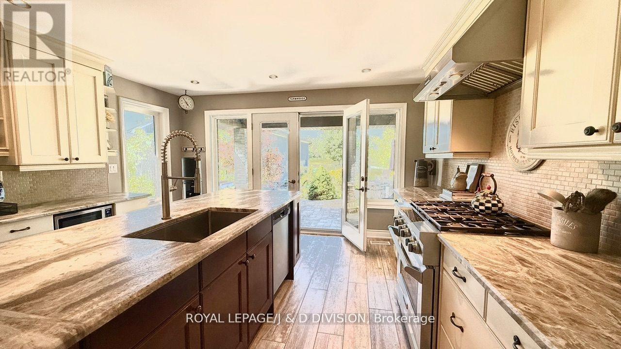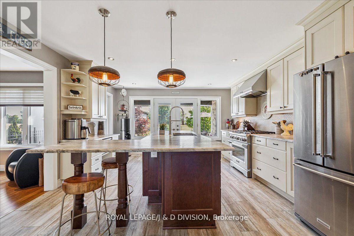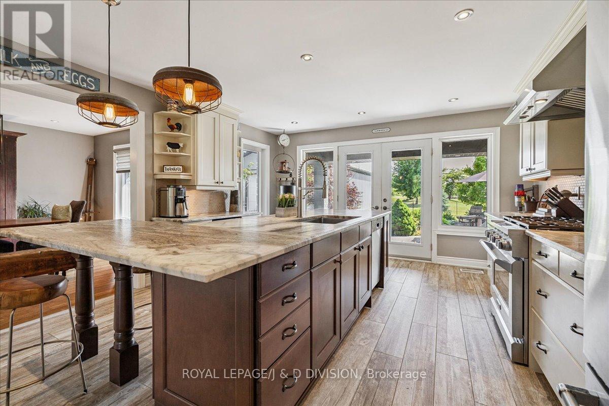Welcome to Your Dream Country Escape Just Minutes from the City. Nestled on a peaceful country lot with breathtaking views of Mount Nemo and the Niagara Escarpment, this beautifully updated bungalow offers the perfect blend of rural tranquility and urban convenience. Located just minutes from all the amenities of Milton and Oakville, this property delivers an exceptional lifestyle opportunity for families, professionals, and hobbyists alike. Step inside to discover a spacious, open-concept main floor filled with natural light, rich hardwood flooring, pot lights, and elegant finishes throughout. The gourmet kitchen is the heart of the home perfect for entertaining and flows seamlessly into the living and dining areas, all overlooking a professionally landscaped backyard oasis. The expansive primary suite is a private retreat featuring a luxurious spa-inspired ensuite and double French doors that open onto a serene terrace and the lush, private backyard. A second generous bedroom and stylish 4-piece main bathroom complete the main level. Downstairs, the finished lower level boasts a cozy family/rec room with a fireplace, two additional large bedrooms, and a custom-designed laundry room ideal for growing families or hosting guests. The standout feature of this property is the impressive 46 x 32 heated garage/shop. Whether you're a car enthusiast, entrepreneur, or hobbyist, this space offers endless potential with its soaring ceilings, car lift, commercial-grade steel racking, and double-wide driveway. There's even extra space alongside the garage for additional storage or parking for larger equipment and trailers. Ideal location on the edge of Oakville/Milton. (id:51158)