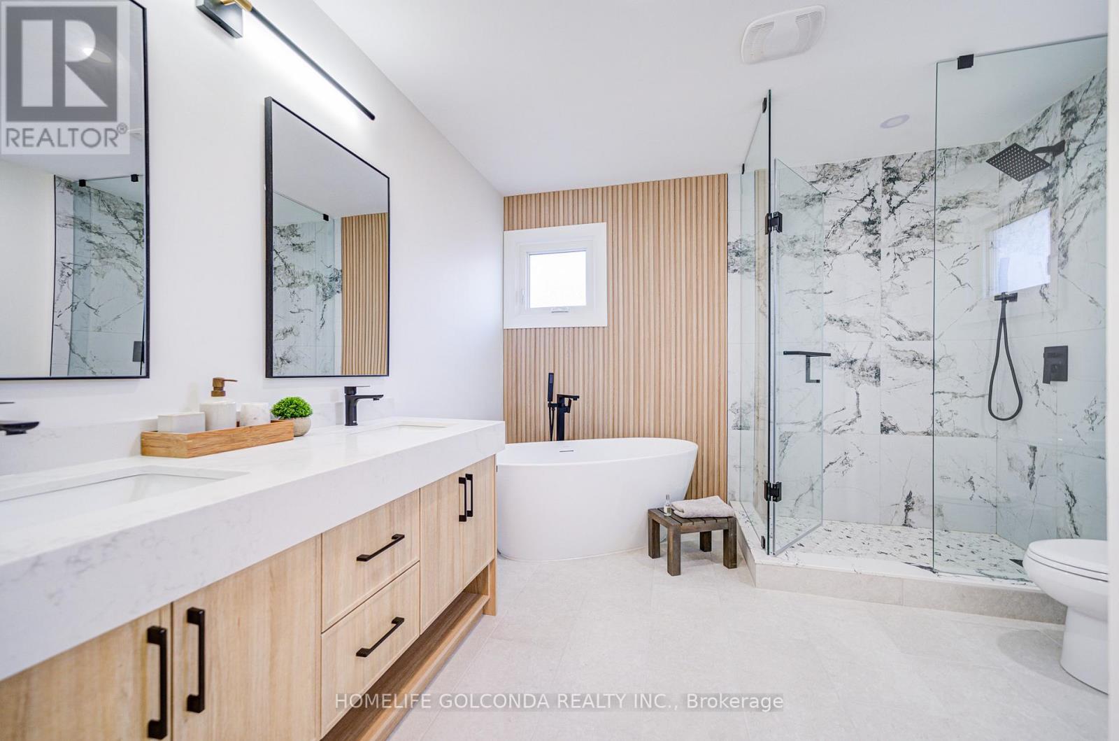 Welcome to This Stunning Designer Re-Model Home. Premium 50' Frontage Large Lot Located in the Heart of Mississauga. $$$$ Spent on Reno. Rare 9'' Smooth Ceiling in the Area. Luxury Hardwood Floor Thru the House. Modern Open Concept Kitchen w/ Quartz Waterfall Kitchen Island. B/I SS Kitchen Appls. 36'' High End Cooktop w/ Custom B/I Rangehood. Luxury Stone Backsplash. Fireplace w/ Quartz Surround to Ceiling. Re-designed All Washrooms w/ Freestanding Tub. Customized Laundry w/ Quartz Load Top. All Appliances Brand New. Newer Roof, Newer Window. High End Custom French Entry Door. Close to Hwy 403, Schools, Golden Square Center, Supermarket. (id:51158)