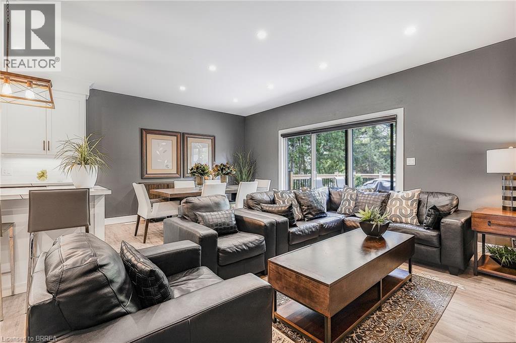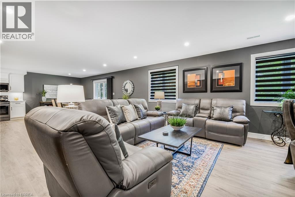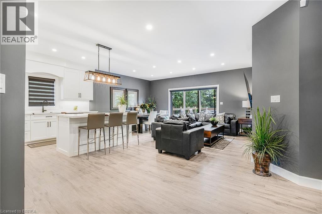 Welcome to 442 James Street, located in the picturesque town of Delhi. This exceptional bungalow effortlessly combines contemporary design with refined modern finishes, making it perfect for multi-generational living or a complete in-law suite setup. From the moment you arrive, the superior craftsmanship is clear—starting with the inviting double sidelight entry door and continuing into the spacious foyer that opens into a bright, open-concept living space. The expansive main area features a chef-inspired kitchen complete with soft-close cabinetry, under-mount lighting for ambiance, a generous pantry, eye-catching quartz countertops, a large island, and cutting-edge Smart appliances. Just off the kitchen, the dinging and living areas flow seamlessly and includes sliding doors that open onto a raised deck, offering peaceful views of the private backyard. The main floor also offers three generously sized bedrooms, including a luxurious primary suite featuring a walk-in closet and an elegant ensuite bathroom with a beautifully tiled glass-door standalone shower. A second 4-piece bathroom is conveniently located for guests and family members, along with a practical laundry room that provides direct access to the garage. Head downstairs to the fully finished lower level, where the same attention to quality and detail continues. This level includes two more bedrooms, a stylish 4-piece bathroom, a full kitchen, and a spacious dining area and family room that opens to a cozy covered porch overlooking the backyard. Step outside and enjoy your peaceful outdoor retreat, surrounded by mature trees that add natural beauty and privacy. This thoughtfully designed home offers the perfect combination of modern comfort, functional living, and timeless elegance. At 442 James Street, you’ll find a true haven—ideal for both entertaining and everyday relaxation in your dream home! (id:51158)