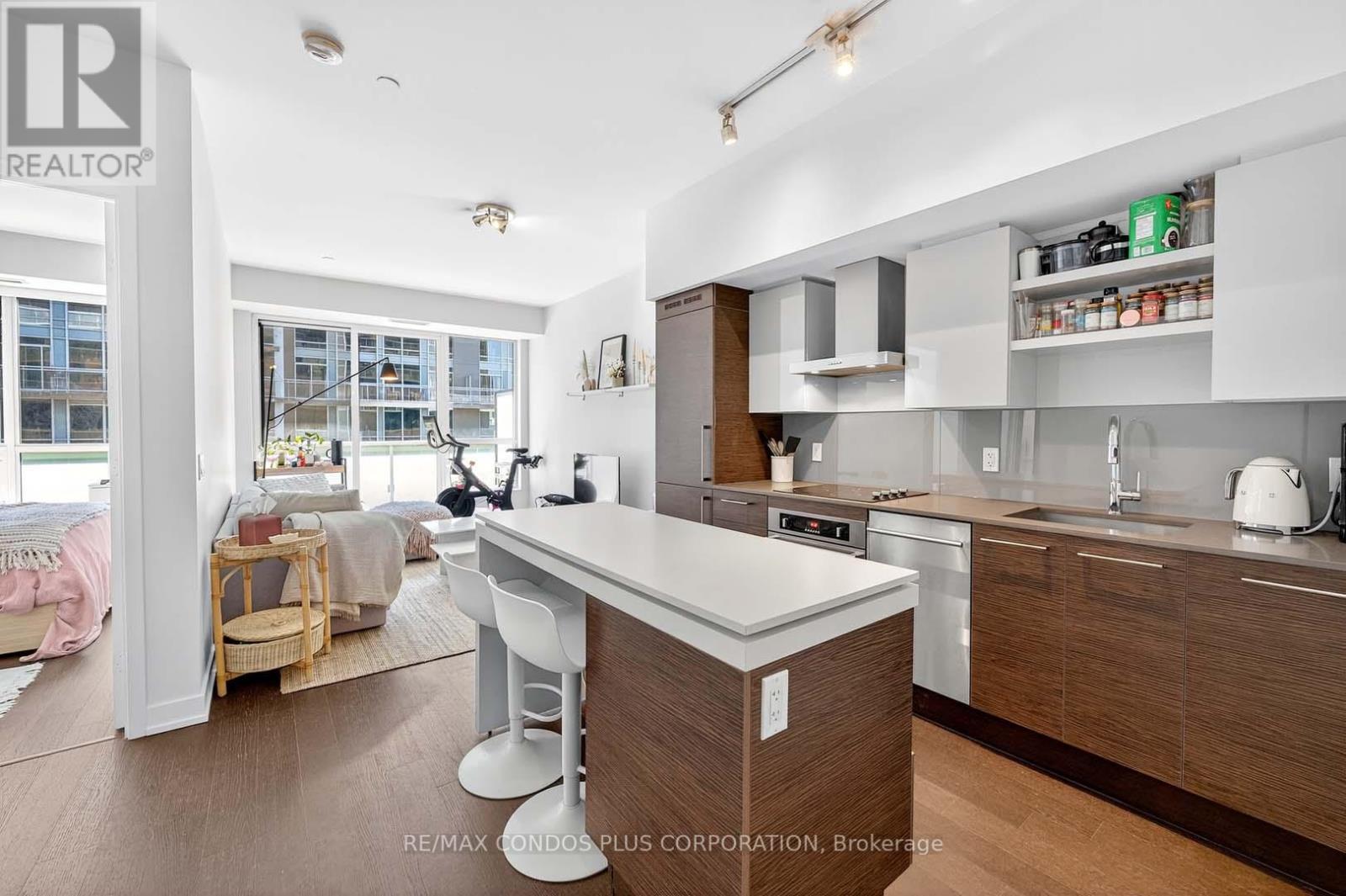 Urban Convenience. Modern Comfort & Exceptional Value! Welcome to Suite 444 at DNA 3. This one-bedroom + den loft delivers everything you've been searching for, starting with soaring 9-ft smooth ceilings and a sun-soaked south exposure that fills the space with natural light. The efficient 630 SF layout + 105 SF full-width Balcony, is designed with real life in mind. No wasted space, just smart, versatile living. From the sleek, modern kitchen, featuring Stainless Steel & Integrated Appliances, Quartz Counters, and a large center island, perfect for cooking, casual dining, or entertaining friends. Enjoy a King-Sized Primary Bedroom Retreat with Floor-to-Ceiling Windows and a large Walk-In Closet for all of your urban styles. How about the 8' by 8'6" Den, which can adapt perfectly to your lifestyle: think second bedroom, home office, or even a compact home gym or studio. Still looking for more..... take advantage of the large storage locker, conveniently located on the same level as your condo, adding everyday ease to your life. Beyond your door, the building offers a full suite of resort-style amenities. A state-of-the-art gym and fitness center, yoga room, Stunning rooftop terrace with BBQs, fireplaces, lounge and dining areas, a stylish party room with two kitchens, a secure parcel delivery room with locked storage, guest suites, theater room, 24-hour concierge, and on-site property management for total peace of mind. Step outside and you are at the heart of it all; Massey Harris, Stanley, and Trinity Bellwoods Parks. The Ossington strip. Queen West. Liberty Village. Shops, cafés, restaurants, and nightlife all within reach. Streetcar at your door. No Frills and Tim Hortons right downstairs, Starbucks across the street, and a Short Walk to the Exhibition GO Station and Harbourfront. Unbeatable location & Exceptional value. This is elevating, urban living and it's best! See Video Tour for more. (id:51158)