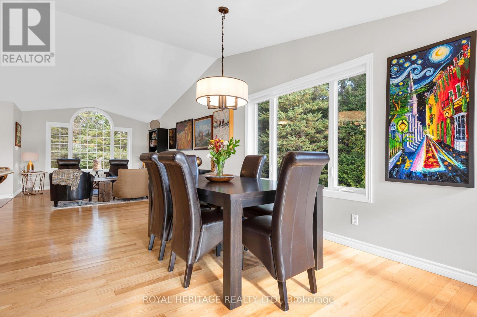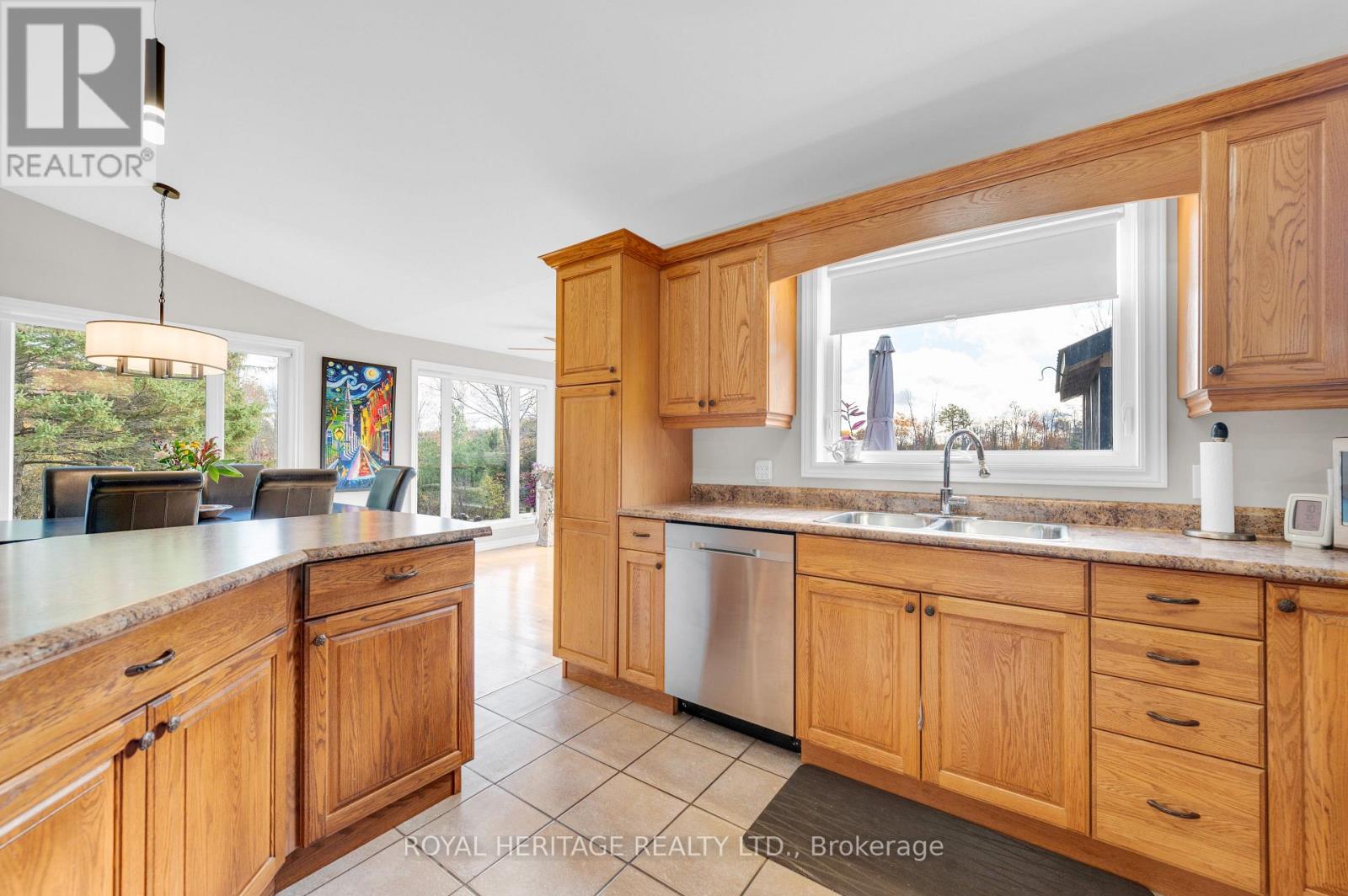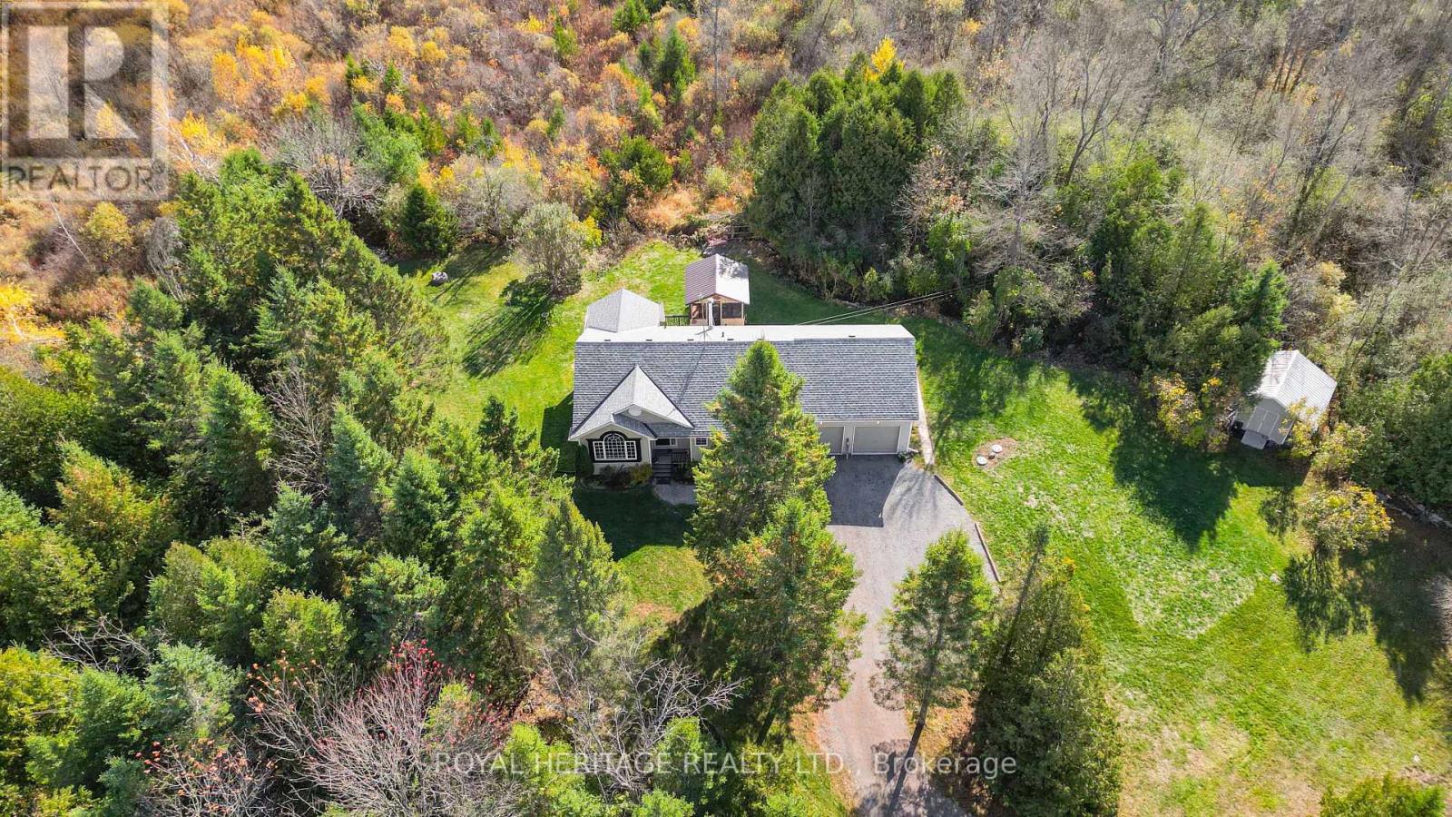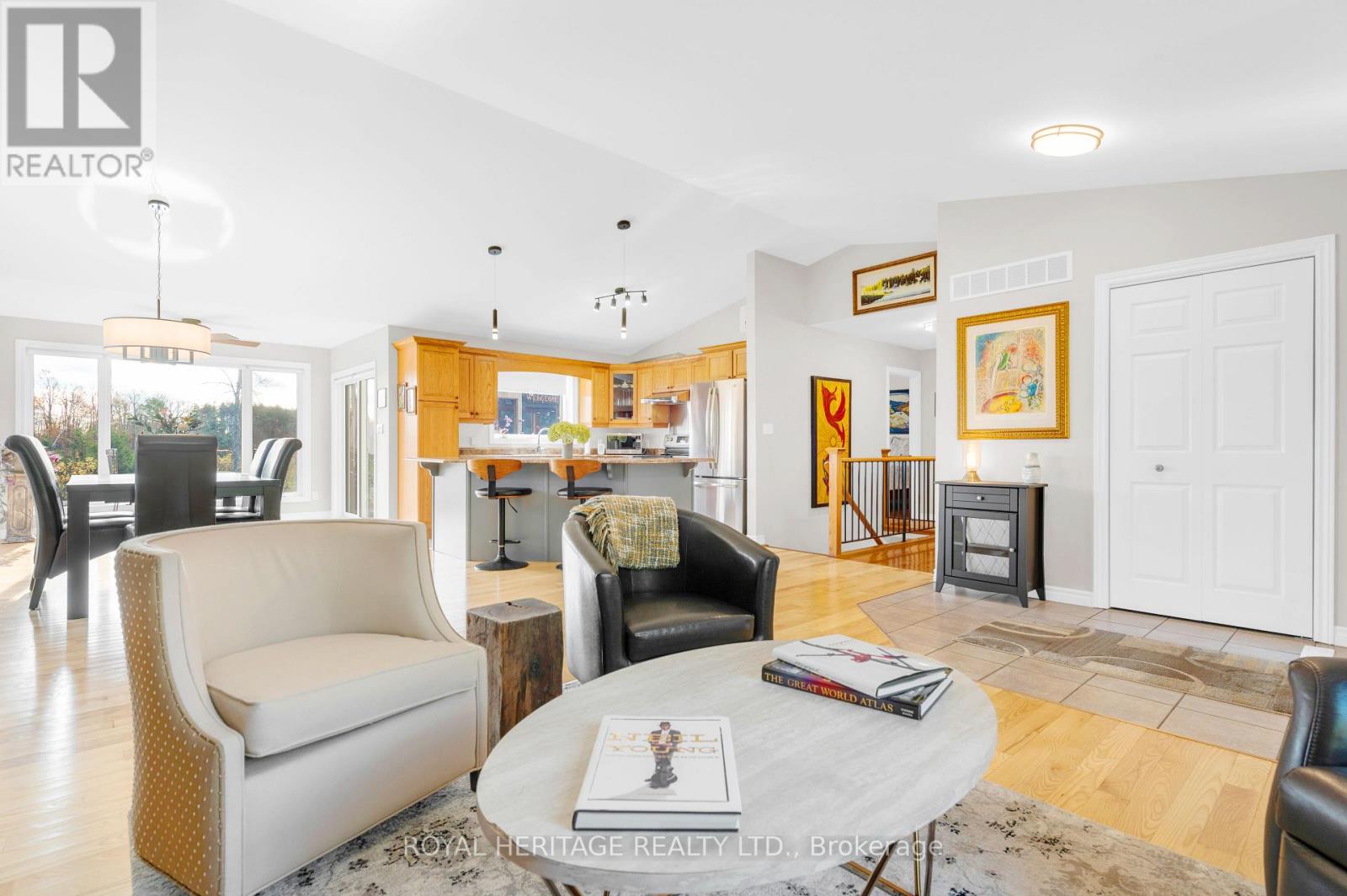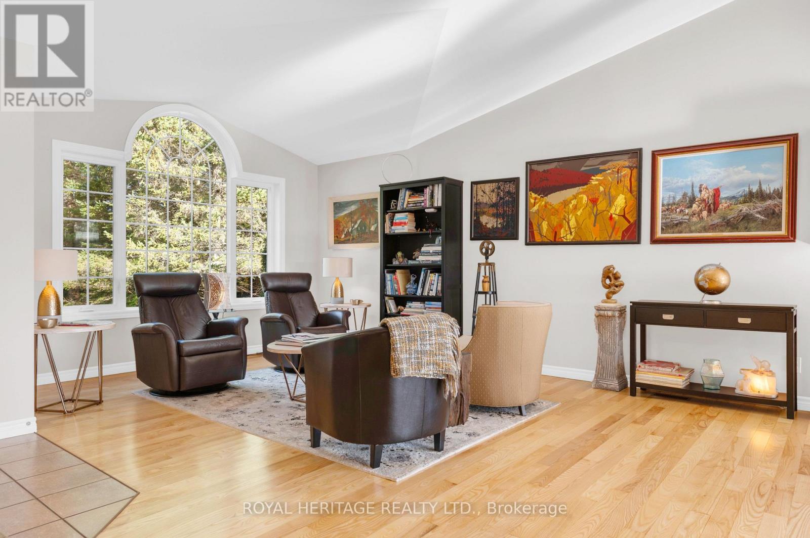 Nestled among mature trees and rolling hills, this custom-built bungalow offers the perfect blend of comfort, privacy, and natural beauty on over 5.5 scenic acres. Step inside to a bright, vaulted great room featuring gleaming hardwood floors, a spacious dining area ideal for family gatherings, and a large entertainer's island overlooking the inviting sunroom lounge. Enjoy your morning coffee or evening stargazing from the deck and screened gazebo-a serene escape surrounded by nature. The main floor features a spacious primary bedroom with double closets, a beautifully appointed shared main bath, and a generous second bedroom. Convenient main floor laundry and mudroom provide direct access to the oversized, insulated garage-perfect for hobbyists or extra storage. The finished lower level offers incredible flexibility with in-law or guest suite potential. The L-shaped family room includes a sunny sitting area and a walkout to the yard, plus a third bedroom with ensuite access to a full 3-piece bathroom. A large storage room and utility space complete this level. Outside, enjoy your own private retreat with mixed woodlands, a meandering creek, and endless opportunities to explore. The area offers beautiful trails for walking, ATVing, or snowmobiling, as well as nearby lakes and rivers perfect for boating, canoeing, and kayaking. (id:51158)