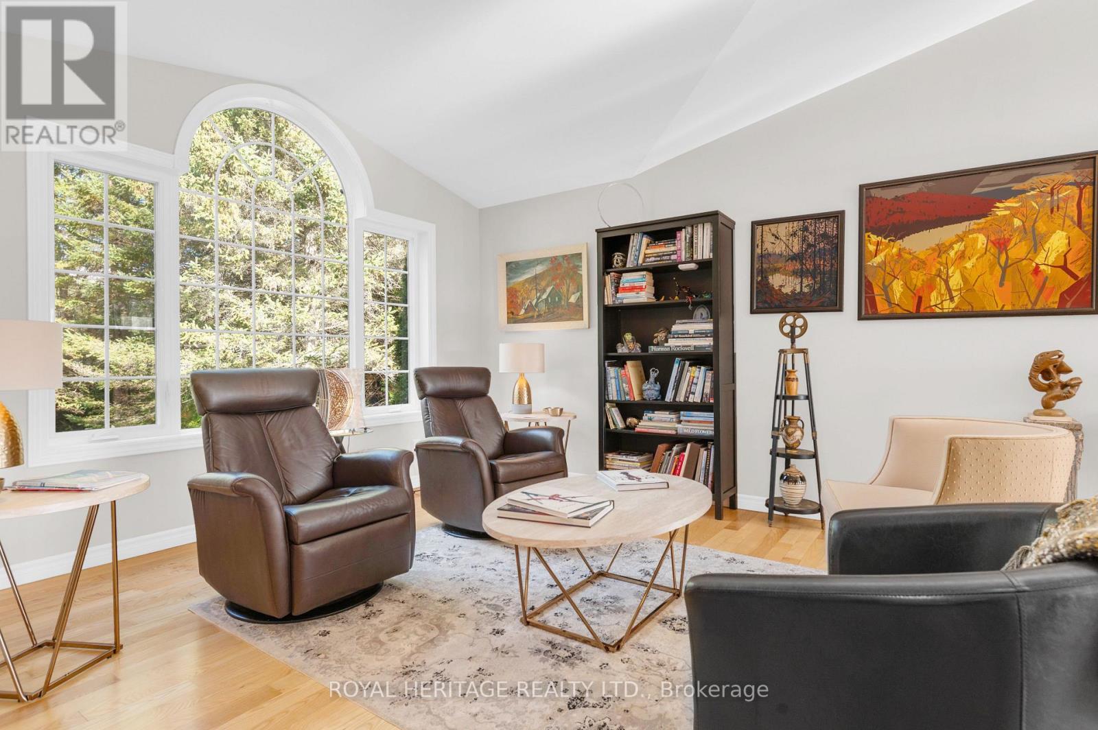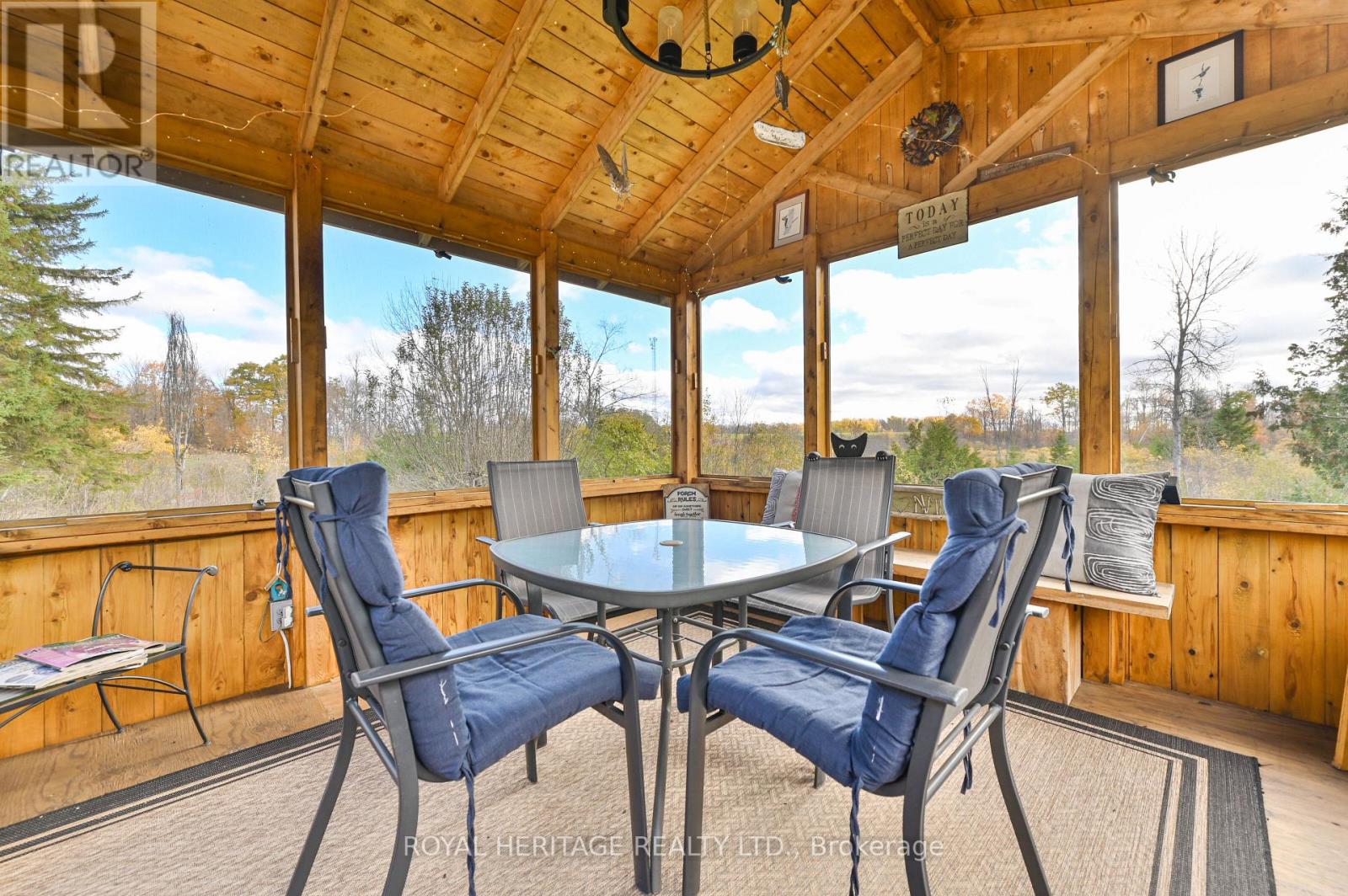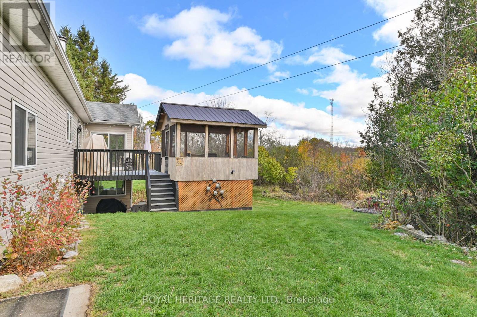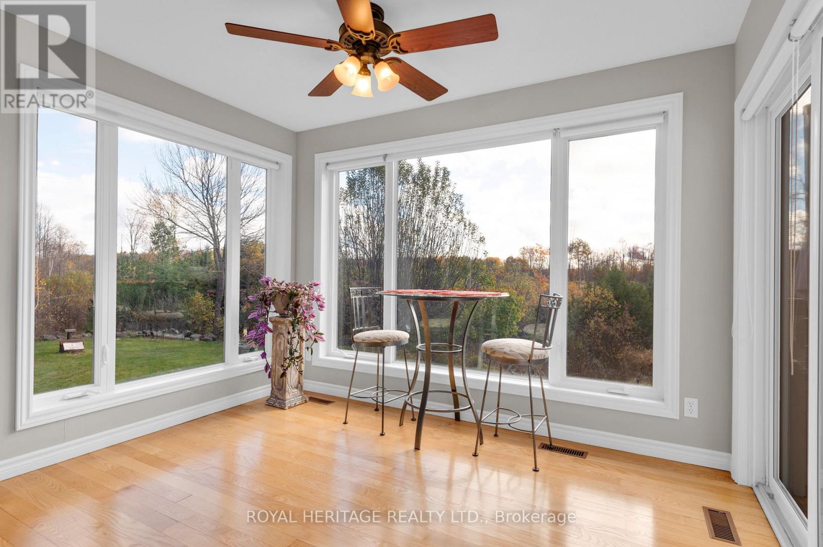 Nestled among mature trees and rolling hills, this custom-built bungalow offers the perfect blend of comfort, privacy, and natural beauty on over 5.5 scenic acres. Step inside to a bright, vaulted great room featuring gleaming hardwood floors, a spacious dining area ideal for family gatherings, and a large entertainer's island overlooking the inviting sunroom lounge. Enjoy your morning coffee or evening stargazing from the deck and screened gazebo-a serene escape surrounded by nature. The main floor features a spacious primary bedroom with double closets, a beautifully appointed shared main bath, and a generous second bedroom. Convenient main floor laundry and mudroom provide direct access to the oversized, insulated garage-perfect for hobbyists or extra storage. The finished lower level offers incredible flexibility with in-law or guest suite potential. The L-shaped family room includes a sunny sitting area and a walkout to the yard, plus a third bedroom with ensuite access to a full 3-piece bathroom. A large storage room and utility space complete this level. Outside, enjoy your own private retreat with mixed woodlands, a meandering creek, and endless opportunities to explore. The area offers beautiful trails for walking, ATVing, or snowmobiling, as well as nearby lakes and rivers perfect for boating, canoeing, and kayaking. (id:51158)