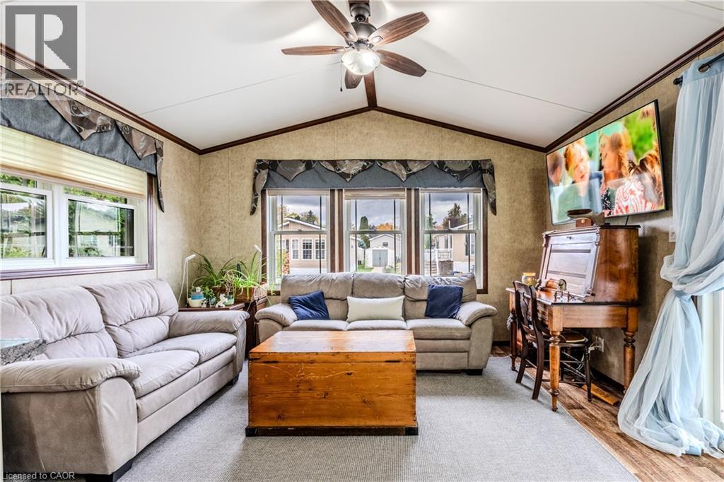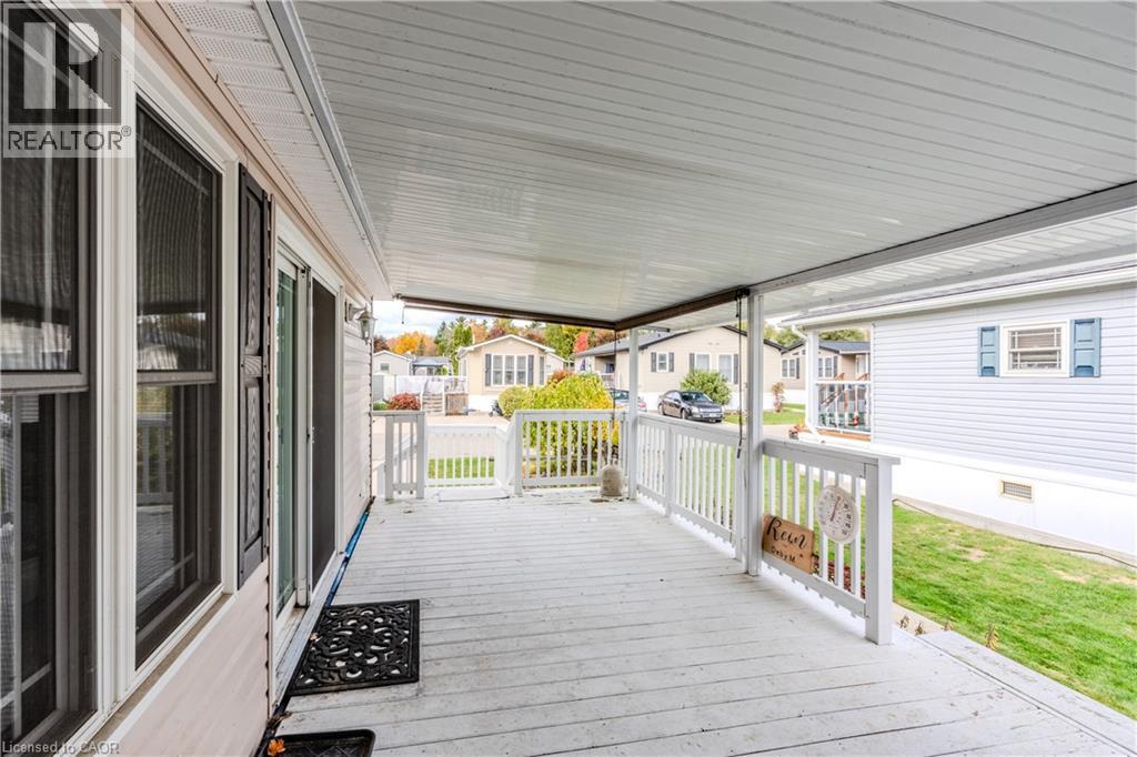 Sharp home, move in condition, in Burlington’s highly desired Lost Forest Park with secure gated entry. Located just minutes from Memorial Park in the Village of Waterdown.  1 bed, 1 bath, Home features a spacious family room with an abundance of windows. Large eat-in kitchen with quality cabinetry, flooring, appliances, and plenty of room for dining. Off family room and kitchen is a walkout to a huge 36 X 10 covered deck. This is an End Unit, besides visitors parking, great when you have guests!! The monthly fee 838.58 includes land lease, maintenance of the park and systems and property tax. (id:51158)