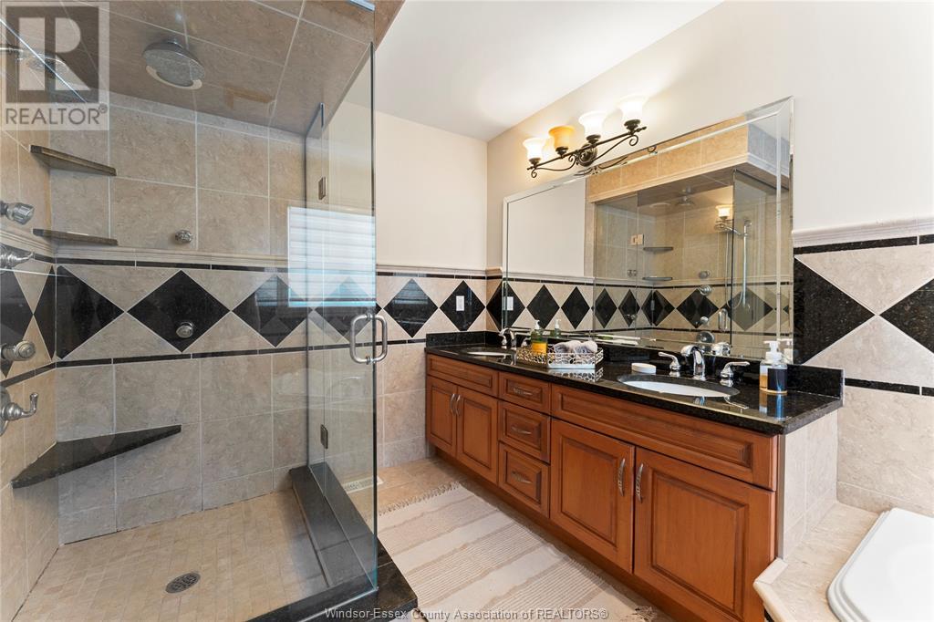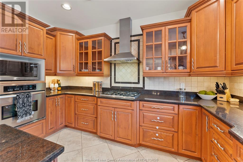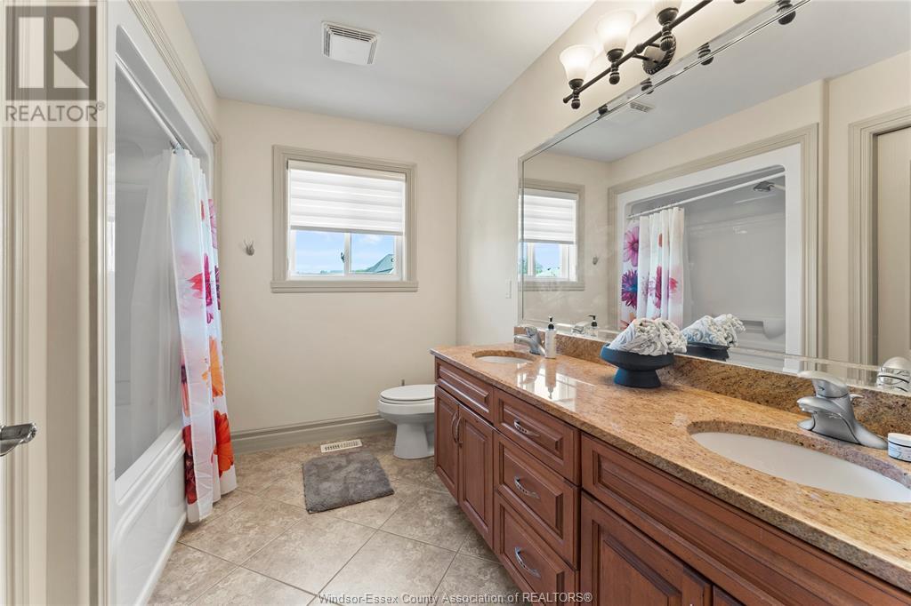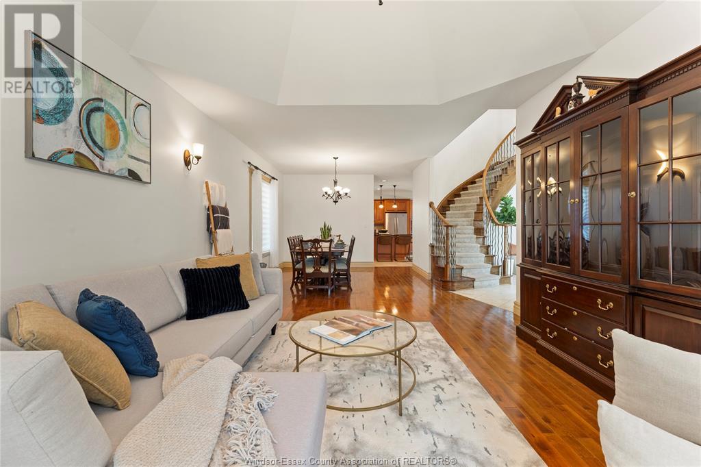 This immaculate 2-storey home features 4 bedrooms and 2.5 baths with approx. 3,600 sq ft, situated steps from Riverside Drive in a desirable East Windsor location! Walk into the grand foyer with high ceilings, limestone tiling and circular staircase w/iron railings. Spacious living and dining rms w/ hrwd floors and front office. Large kitchen w/plenty of cabinetry, stone tops and stainless-steel appls. Spacious family rm with decorative ceilings and a cozy gas fireplace completes the main level. Upstairs, you'll find four generous sized bdrms, including a luxurious primary suite with a seating area & double walk-in closets. Second floor laundry. Two separate stairwells lead to the unfinished basement, ready for your furnishings. Double car garage, stamped concrete drive and backyard patio w/custom storage shed. Located steps from the water, Ganatchio Trail, and the Windsor Yacht Club, with shopping, restaurants & amenities just minutes away. (id:51158)