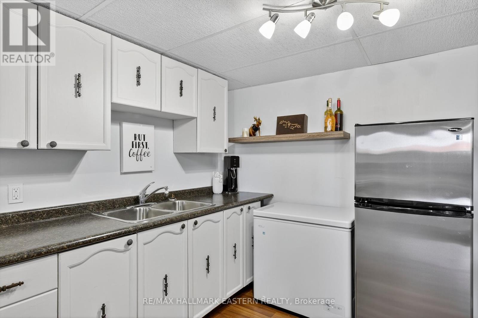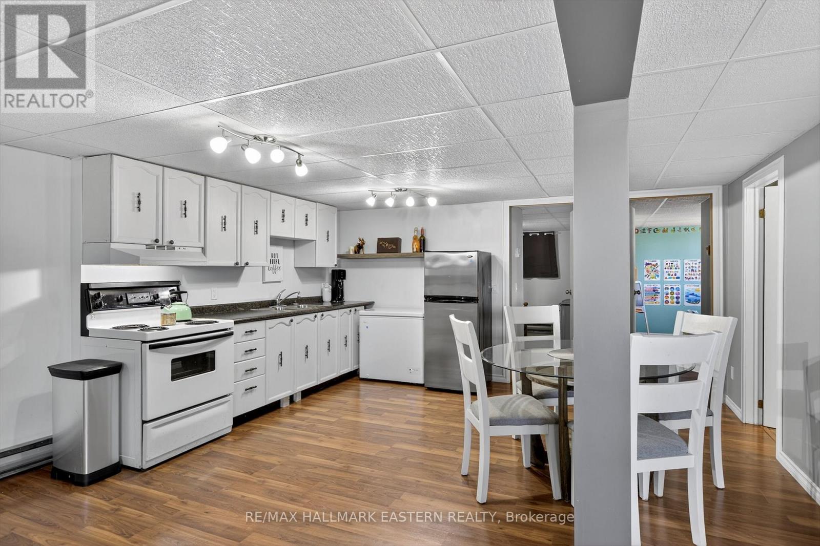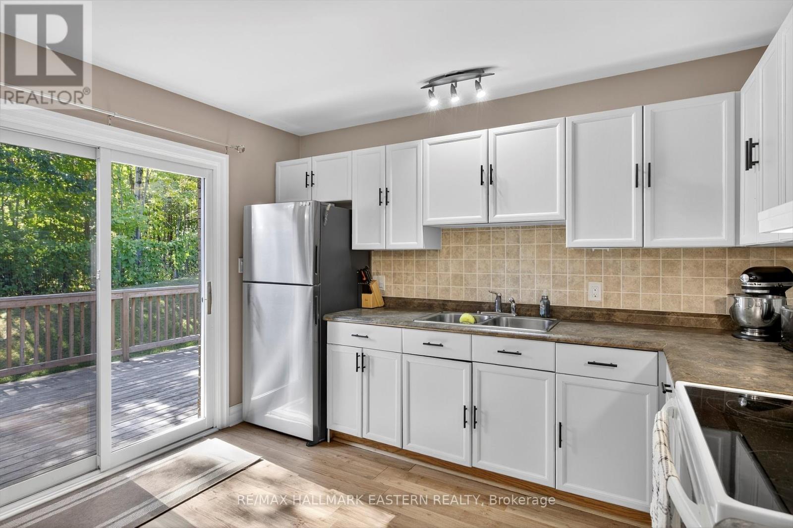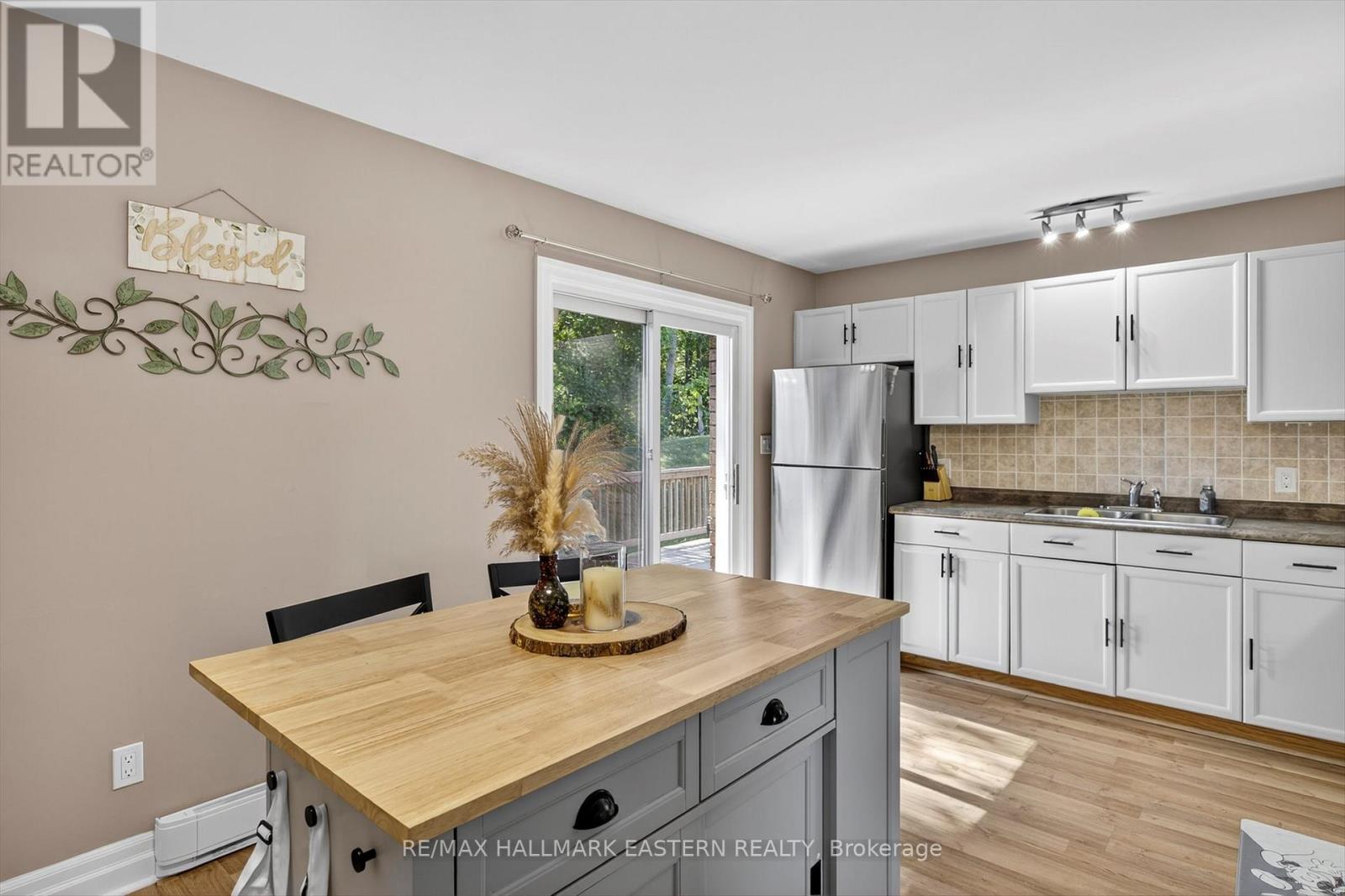 Set on the edge of the Village of Norwood, this all-brick split-level bungalow rests on a gently sloping, fully-fenced lot backing onto trees offering privacy and a country feel with in-town convenience. The main floor features 2 bedrooms, a full bath, bright living space, and a kitchen that walks out to a spacious deck overlooking the landscaped yard. The fully finished lower level adds 2 more bedrooms, an open-concept kitchen, dining and recreation area perfect for multi-generational living or income potential. With a recently updated metal roof, this versatile, low-maintenance home is ideal for first-time buyers, downsizers, or investors seeking both space and flexibility. (id:51158)