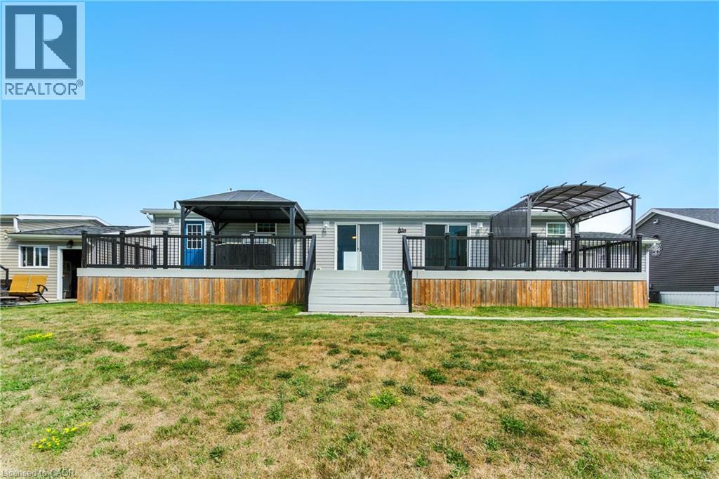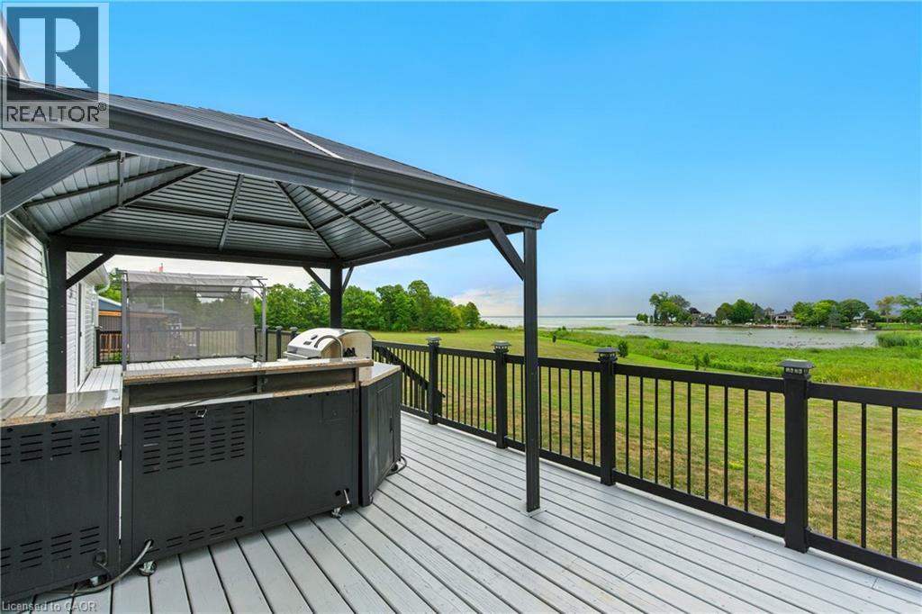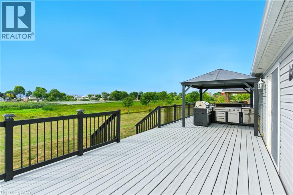 This beautifully landscaped bungalow boasts stunning curb appeal and direct waterfront views of Lake Erie. Offering 3 bedrooms, 2 bathrooms, and 1,650 sq. ft. of living space, this hidden gem community has so much to offer. As you step inside, you're greeted by a bright open concept living and dining area, perfect for entertaining. The modern kitchen features quartz countertops, built-in appliances, a convenient pot filler above the stove, and abundant cabinetry. The primary suite includes a spacious walk-in ensuite for your comfort and privacy. Outdoors, enjoy a backyard oasis complete with a large deck, two gazebos, and a built-in barbecue with plumbing hook-up for ultimate ease. you'll have access to incredible amenities including an inground pool, community events, and endless outdoor activities, along with Selkirk Provincial Park being right next door. This home truly blends modern convenience, outdoor living, and natural beauty. (id:51158)