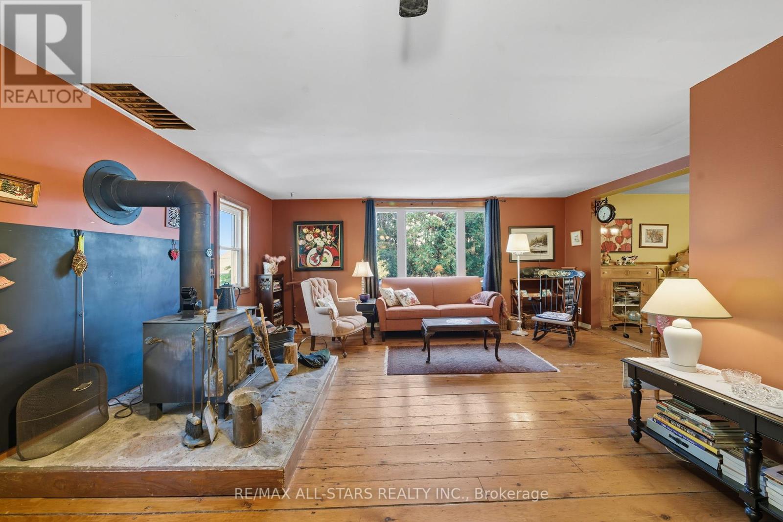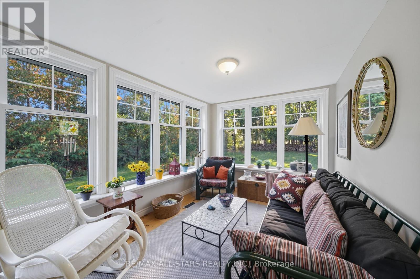 Rustic Charm meets country living. Welcome to 453 Peniel Rd. Discover the magic this 3 bedroom, 2 bathroom 1 1/2 storey haven has to offer. Nestled on 1.3 acres among mature trees and perennial gardens this fully fenced property offers the privacy and peacefulness that's so desired. Capture the beauty of this well loved home the minute you step into the bright and airy sun filled sunroom with wall to wall windows flooded with natural light. Once inside you will appreciate the open concept floor plan with large principle rooms that encircles the open staircase to the upper level. Plenty of room for all your family gatherings. Living room with wood burning wood stove, family room with walkout to patio overlooking the yard, main floor primary bedroom, a 3 piece bath, and laundry provides all the essential living on one level. Retreat upstairs to 2 additional bedrooms, office space, sitting room and 4 piece bath that's uniquely designed for versatility and your creative needs. The outdoor living is pretty special and calls out to the naturalist who appreciates and loves the outdoors. Embrace the possibilities this century barn has to offer. Need Storage? Workshop? or space to raise small animals.? Opportunities are endless. Whether you're looking for a hobby farm lifestyle or simply a quiet escape, this property delivers. Located close to Lindsay and a 1 1/2 Hr commute to the city. (id:51158)