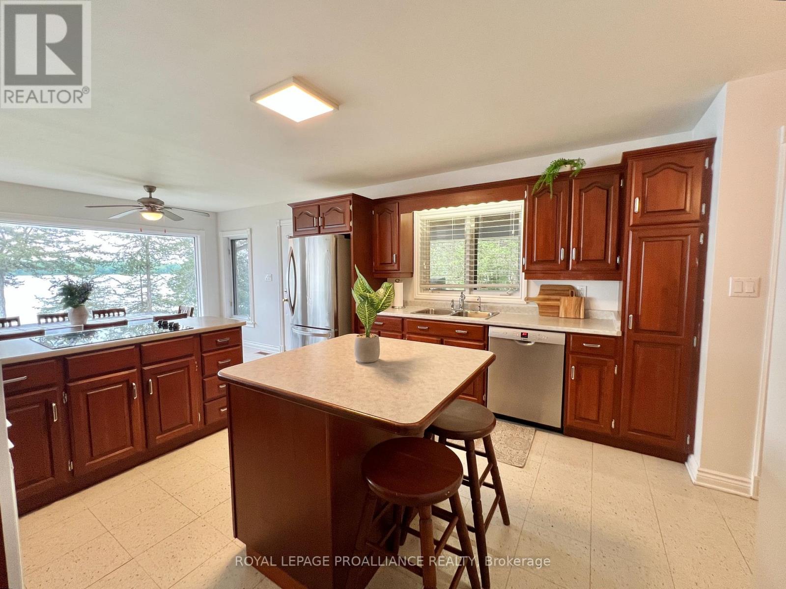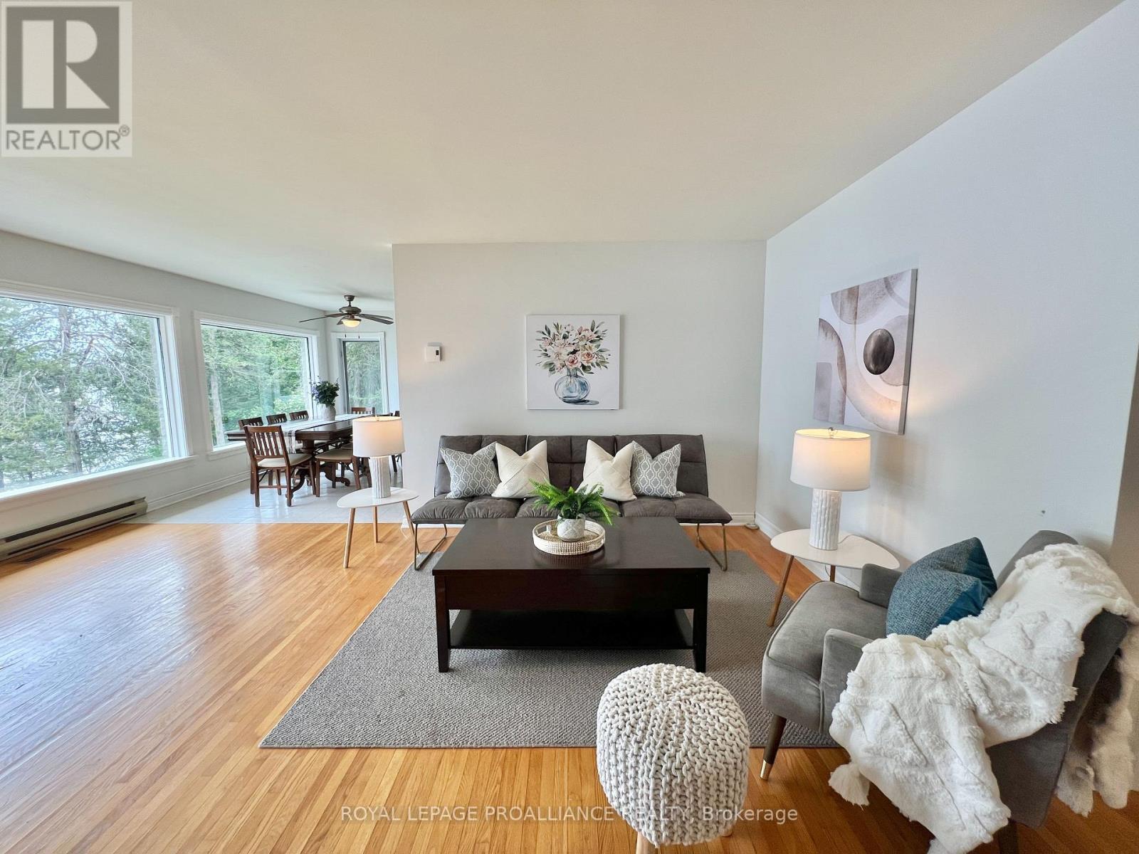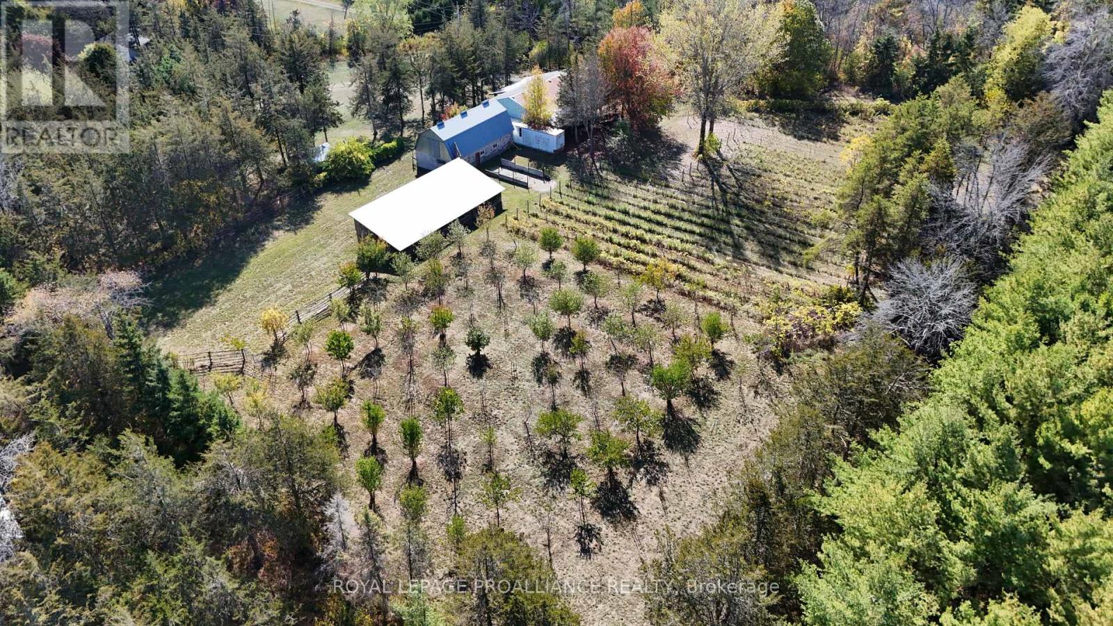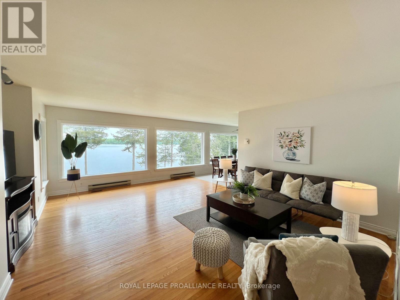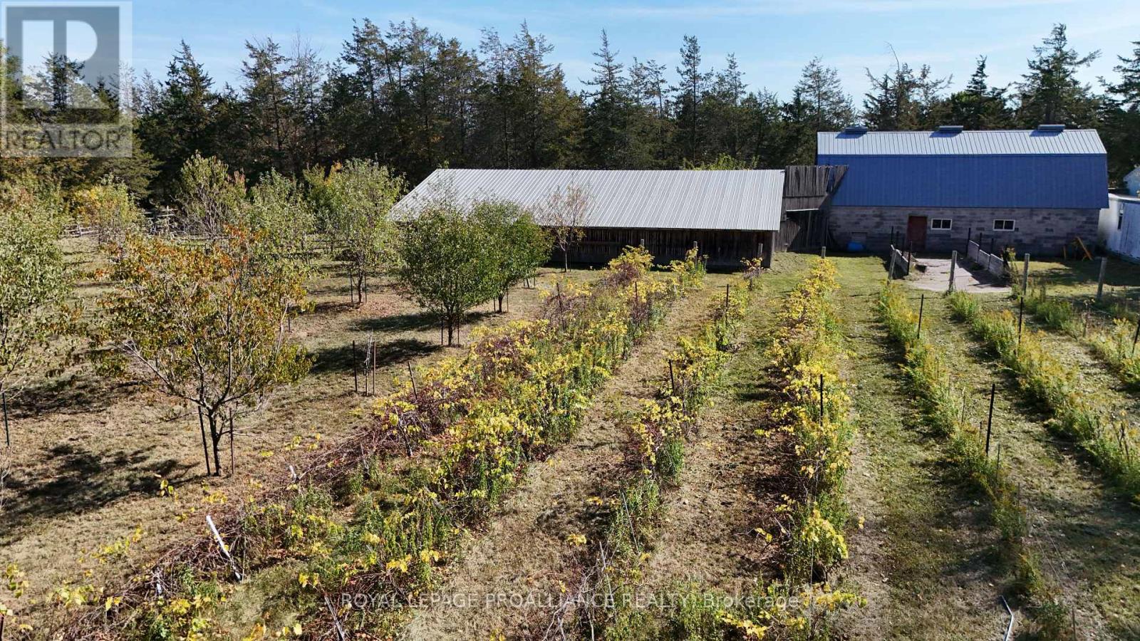Tucked away at the end of a quiet laneway, far from road noise and the rush of everyday life, lies a rare and remarkable waterfront retreat on the shores of Hay Bay. Spanning 15.6 acres with over 750 feet of waterfront, this property offers an unparalleled sense of privacy and freedom. Hay Bay is known for its world-class fishing, serves as a sought-after mooring spot for sailors near Ram Island, and provides an ideal launching point for exploring both the Bay of Quinte and Lake Ontario. From the moment you arrive, it feels like stepping into your own world - where mornings begin with golden sunrises over the water and days unfold surrounded by nature and wildlife. Just 15 minutes from Napanee, 20 minutes to the 401, and Prince Edward County a short boat ride or drive away. At the heart of the property sits a timeless 2,000 sq.ft. all-stone bungalow, thoughtfully positioned to capture sweeping water views from both levels. The main floor features three spacious bedrooms and two bathrooms, while the lower level adds two more bedrooms, a third bathroom, and a roughed-in kitchenette - perfect for your extended family or guests. It is more than just a home - it's a lifestyle. Wander the trails that weave in and out of the 6+ acre white pine forest, tend to your orchard filled with apples, pears, peaches, cherries, and plums, or harvest Chardonnay and Vidal grapes from your vineyard, planted with vines sourced from the renowned Niagara region - bringing a taste of wine country right to your doorstep. Fenced paddock and a collection of outbuildings including a two car detached insulated garage, a 56'x30' shop with concrete floor and 12' ceilings, a 42'x22' barn with stalls and hay loft, plus several drive sheds making it ideal for a home-based business, hobby farming, homesteading and living off the land. Whether you're casting a line, setting sail, or simply enjoying the quiet rhythm of waterfront living, life here moves at your own pace. (id:51158)