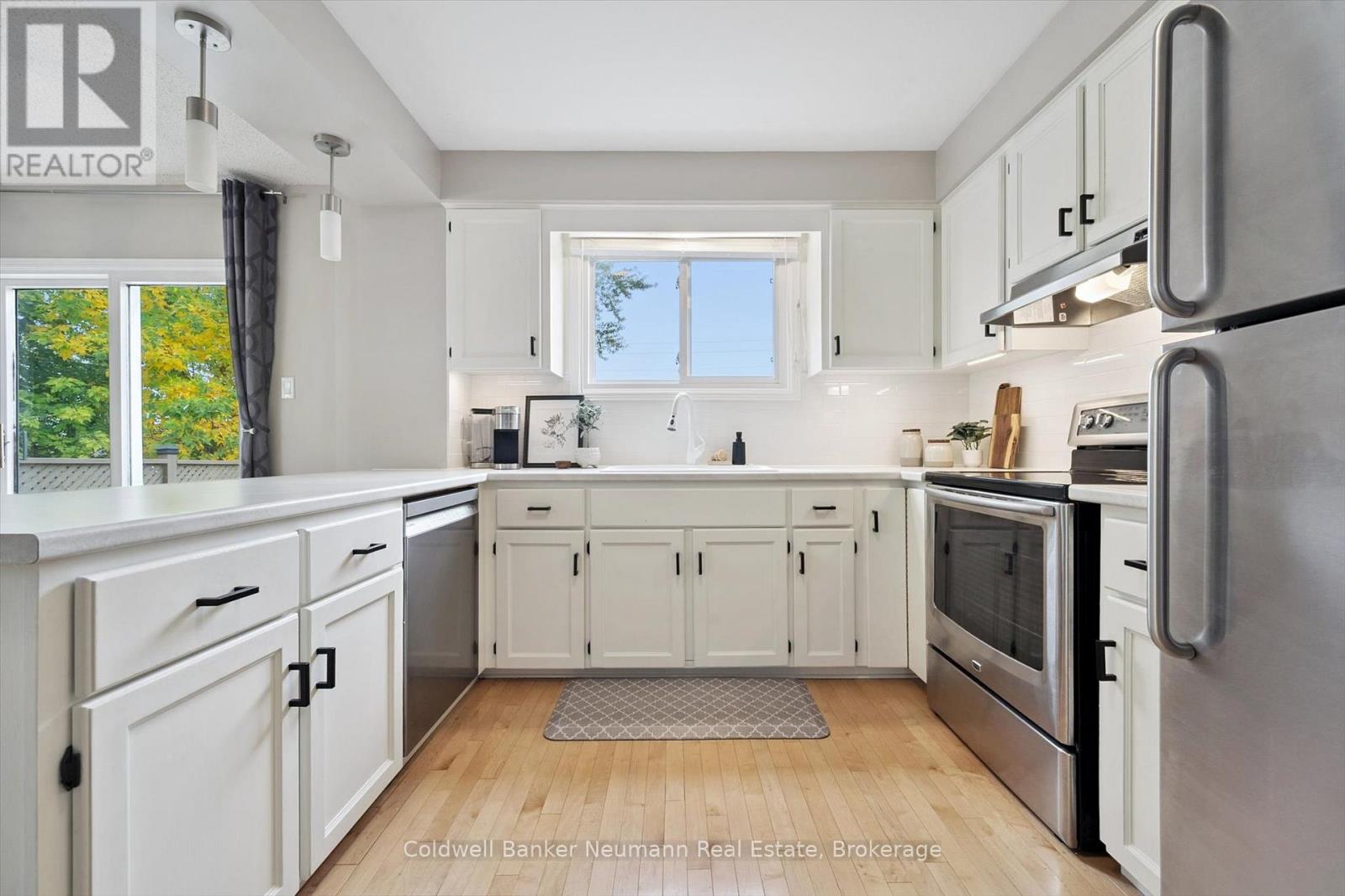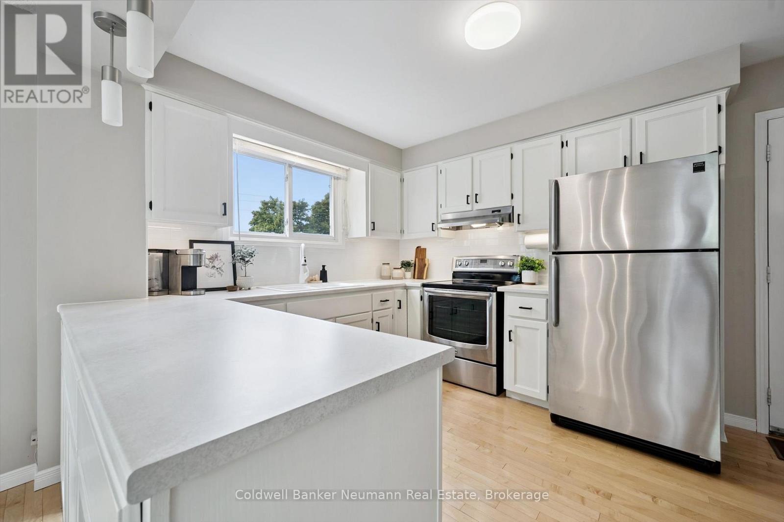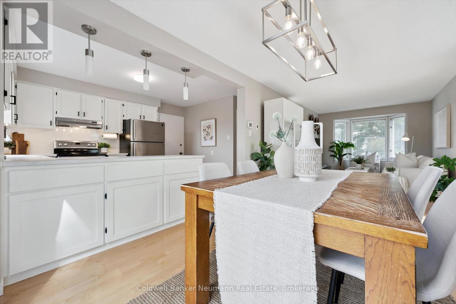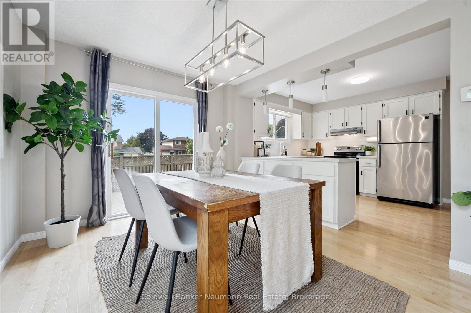 Welcome to 46 Dunhill Crescent, a warm and inviting family home in one of Guelphs most convenient west-end locations. Thoughtfully maintained and recently updated, this property offers a bright and functional layout with plenty of space indoors and out.The main floor features an open concept kitchen, dining, and living area, perfect for everyday living and entertaining. The kitchen has been refreshed with refinished cabinets, new hardware, a stylish backsplash, and all appliances included. Large windows fill the space with natural light, and you'll love catching the evening sunsets from the kitchen window. Upstairs, you will find three comfortable bedrooms and a beautifully updated four-piece bathroom. The finished basement adds valuable living space with a newly renovated three-piece bathroom, fresh carpeting, a cozy rec room, and a convenient laundry area with stacking washer and dryer. Recent updates include: most windows (10 years or less), newer light fixtures throughout, brand-new furnace and AC (2025), roof shingles (2009), and an owned water softener. Outside, enjoy a large fenced yard with a big deck for gatherings, plenty of parking (garage plus driveway space for 4+ vehicles), and a shed with a new shingles. The fully fenced lot can be extended to create even more space in the backyard. Beyond the home itself, 46 Dunhill Crescent is part of a close-knit and welcoming community where neighbours look out for one another. Schools, parks, and trails are steps away, while Costco, Zehrs, restaurants, and bakeries are just minutes from your door. With easy access to Hwy 6 and the 401, commuting to Kitchener, Cambridge, and Waterloo is simple.This is a well-maintained, move-in ready property in a fantastic location, ready to welcome its next owners. (id:51158)