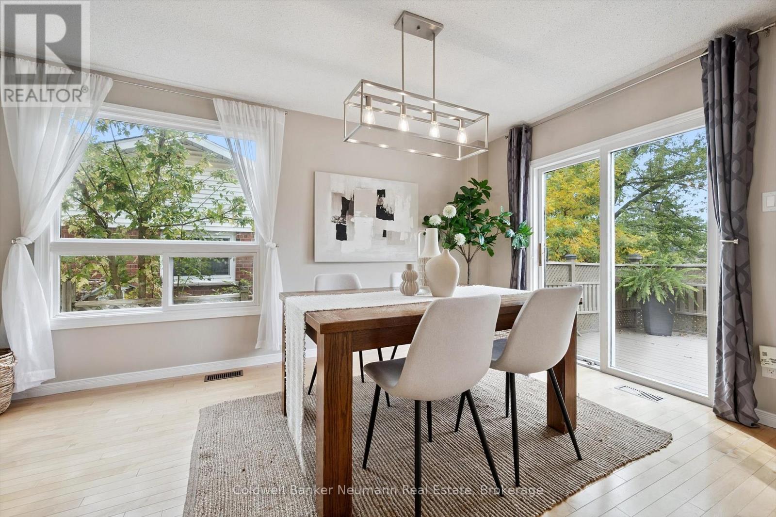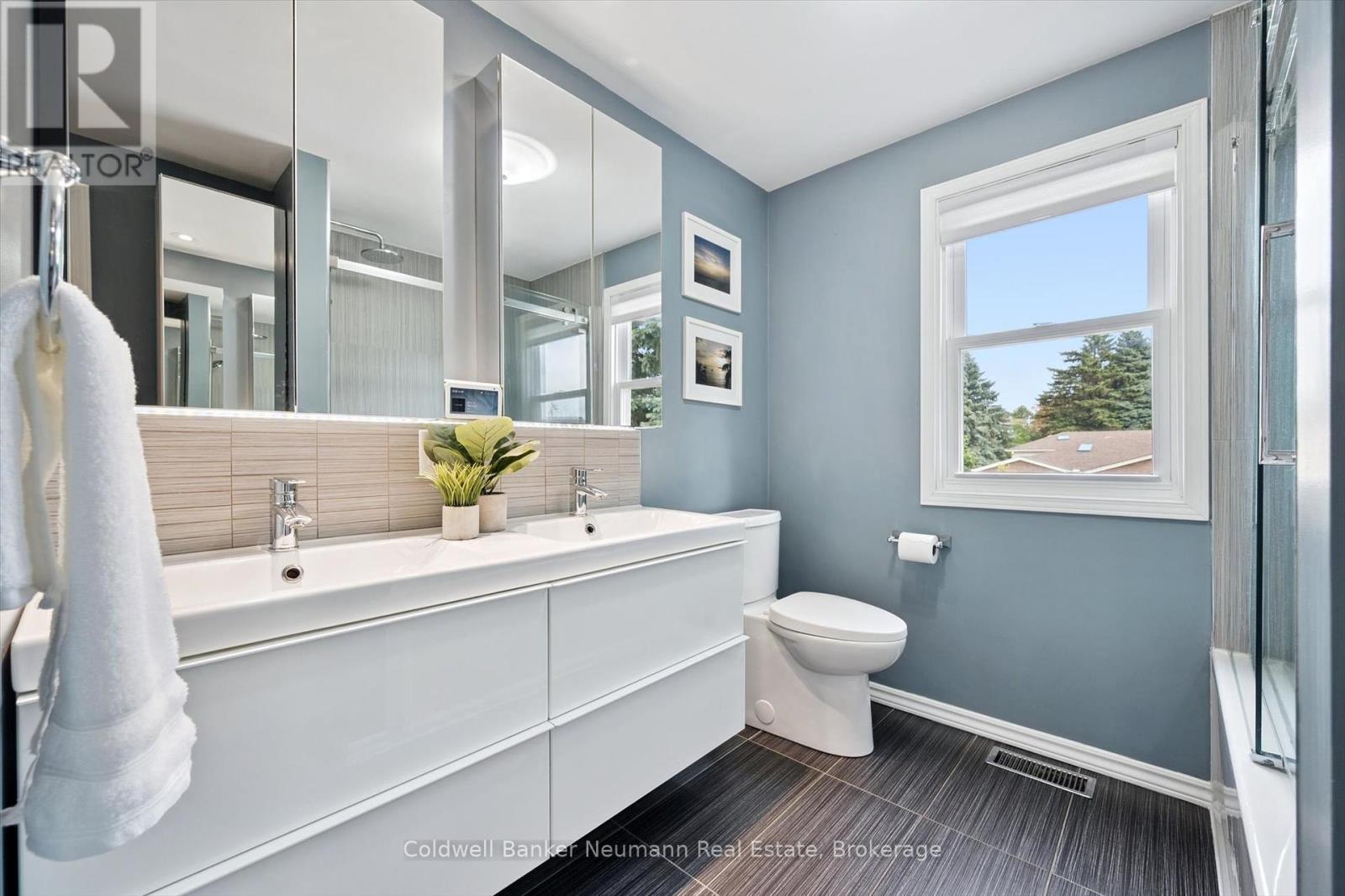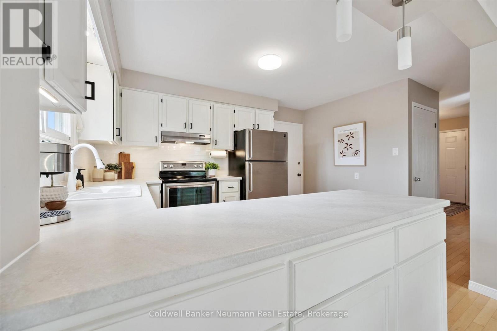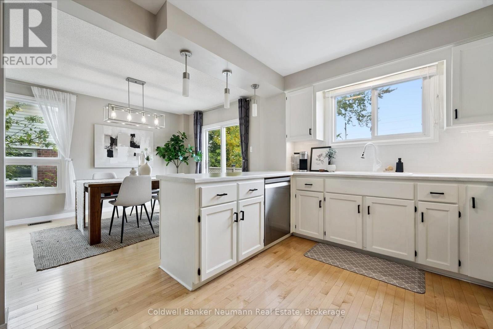 Welcome to 46 Dunhill Crescent, a warm and inviting family home in one of Guelphs most convenient west-end locations. Thoughtfully maintained and recently updated, this property offers a bright and functional layout with plenty of space indoors and out.The main floor features an open concept kitchen, dining, and living area, perfect for everyday living and entertaining. The kitchen has been refreshed with refinished cabinets, new hardware, a stylish backsplash, and all appliances included. Large windows fill the space with natural light, and you'll love catching the evening sunsets from the kitchen window. Upstairs, you will find three comfortable bedrooms and a beautifully updated four-piece bathroom. The finished basement adds valuable living space with a newly renovated three-piece bathroom, fresh carpeting, a cozy rec room, and a convenient laundry area with stacking washer and dryer. Recent updates include: most windows (10 years or less), newer light fixtures throughout, brand-new furnace and AC (2025), roof shingles (2009), and an owned water softener. Outside, enjoy a large fenced yard with a big deck for gatherings, plenty of parking (garage plus driveway space for 4+ vehicles), and a shed with a new shingles. The fully fenced lot can be extended to create even more space in the backyard. Beyond the home itself, 46 Dunhill Crescent is part of a close-knit and welcoming community where neighbours look out for one another. Schools, parks, and trails are steps away, while Costco, Zehrs, restaurants, and bakeries are just minutes from your door. With easy access to Hwy 6 and the 401, commuting to Kitchener, Cambridge, and Waterloo is simple.This is a well-maintained, move-in ready property in a fantastic location, ready to welcome its next owners. (id:51158)