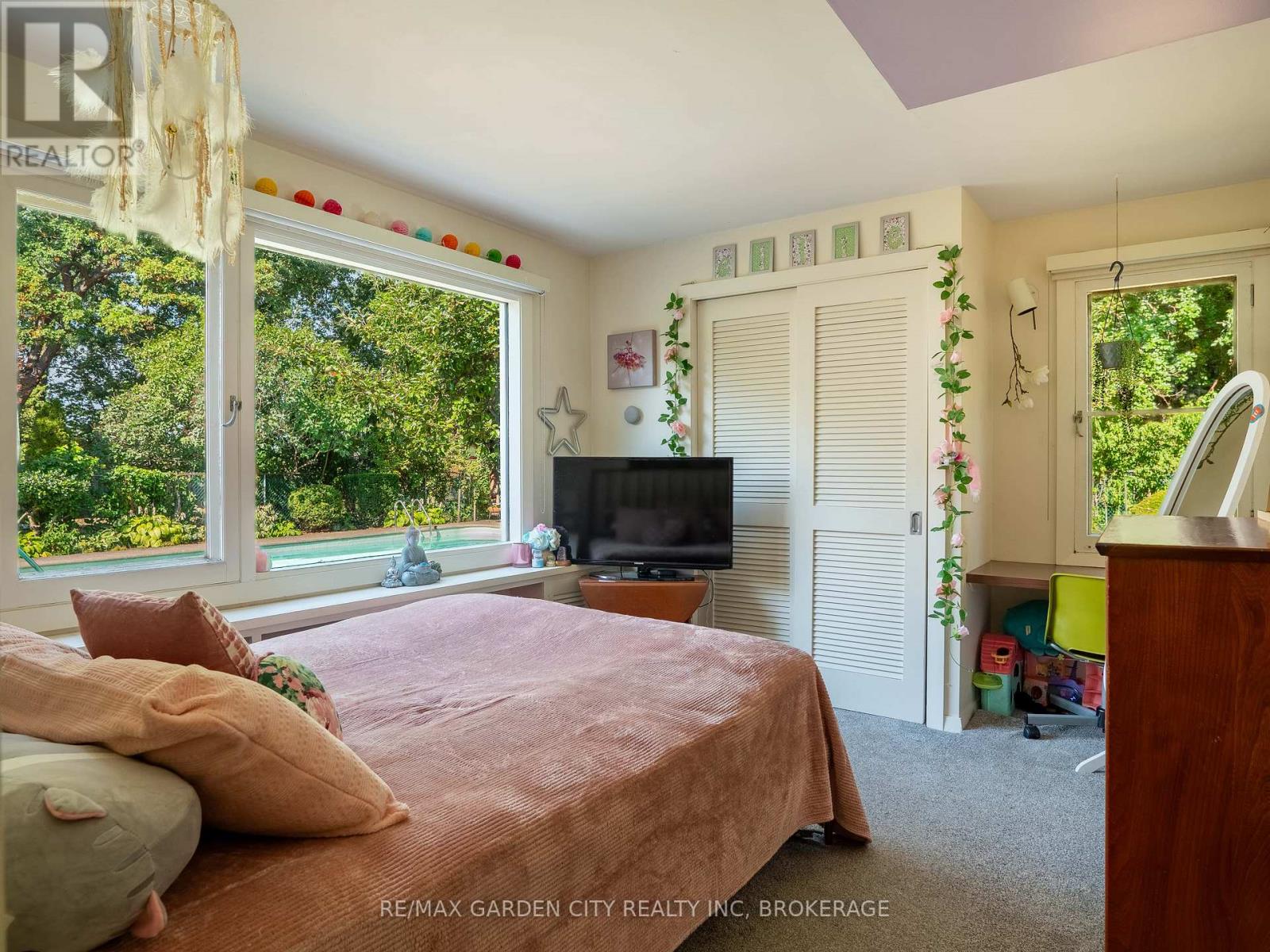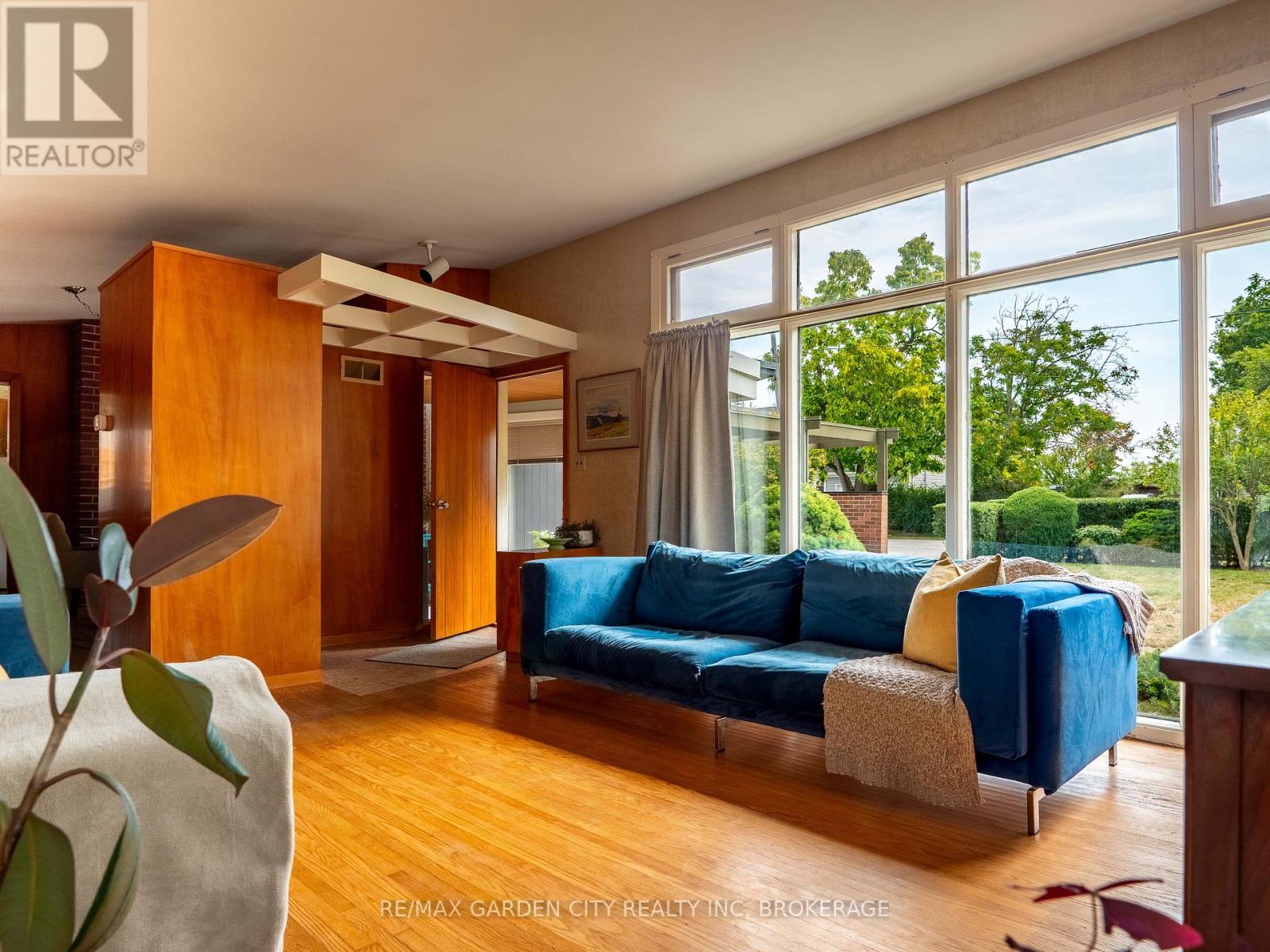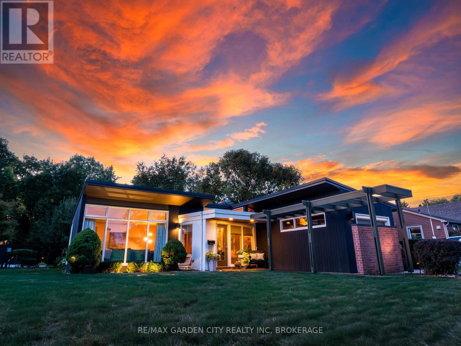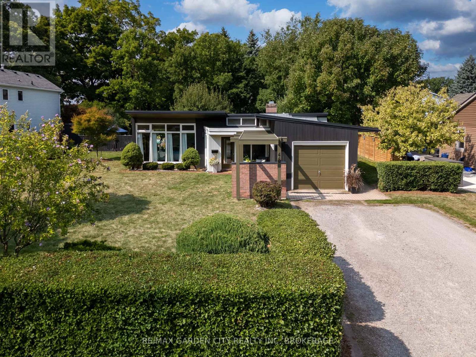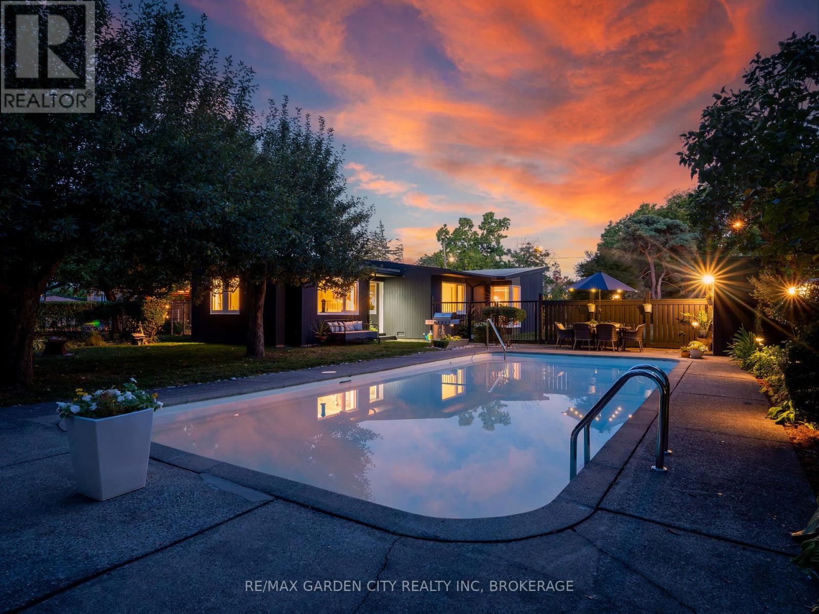 Oversized Lot on Martindale Pond Preserved Mid-Century Modern Retreat / Potential Development Opportunity. (LOT SIZE 90 x 164.90) Step into timeless style with this unique mid-century modern residence that blends retro charm with todays lifestyle. Situated on an oversized double lot, it offers both convenience and serenity minutes from the city and highways, yet tucked away in a private, tree-lined setting. Inside, authentic mid-century features shine: brick and wood accent walls, built-in cabinetry and bookshelves, floor-to-ceiling and picture windows, sloped ceilings and rooflines, Red Cedar siding, and original hardwood floors. The Frank Lloyd Wright inspired design emphasizes clean lines, natural light, and flowing spaces ideal for entertaining or relaxing at home. Outdoors, enjoy a sparkling pool, perennial gardens, and Martindale Pond just steps away. The neighbourhood also offers community access to the pond with kayaks, canoes, a deck, and sitting area for all to enjoy. This rare property provides the best of both worlds-easy city access with the feel of a private retreat. Recent upgrades include: bathroom renovation (2025), new air-conditioning with warranty (2025), full exterior paint (2023), entire pool decking lifted/reset (2019), pool concrete resurfaced and repainted (2021), and new 15-amp panel in pool shed (2025). (id:51158)