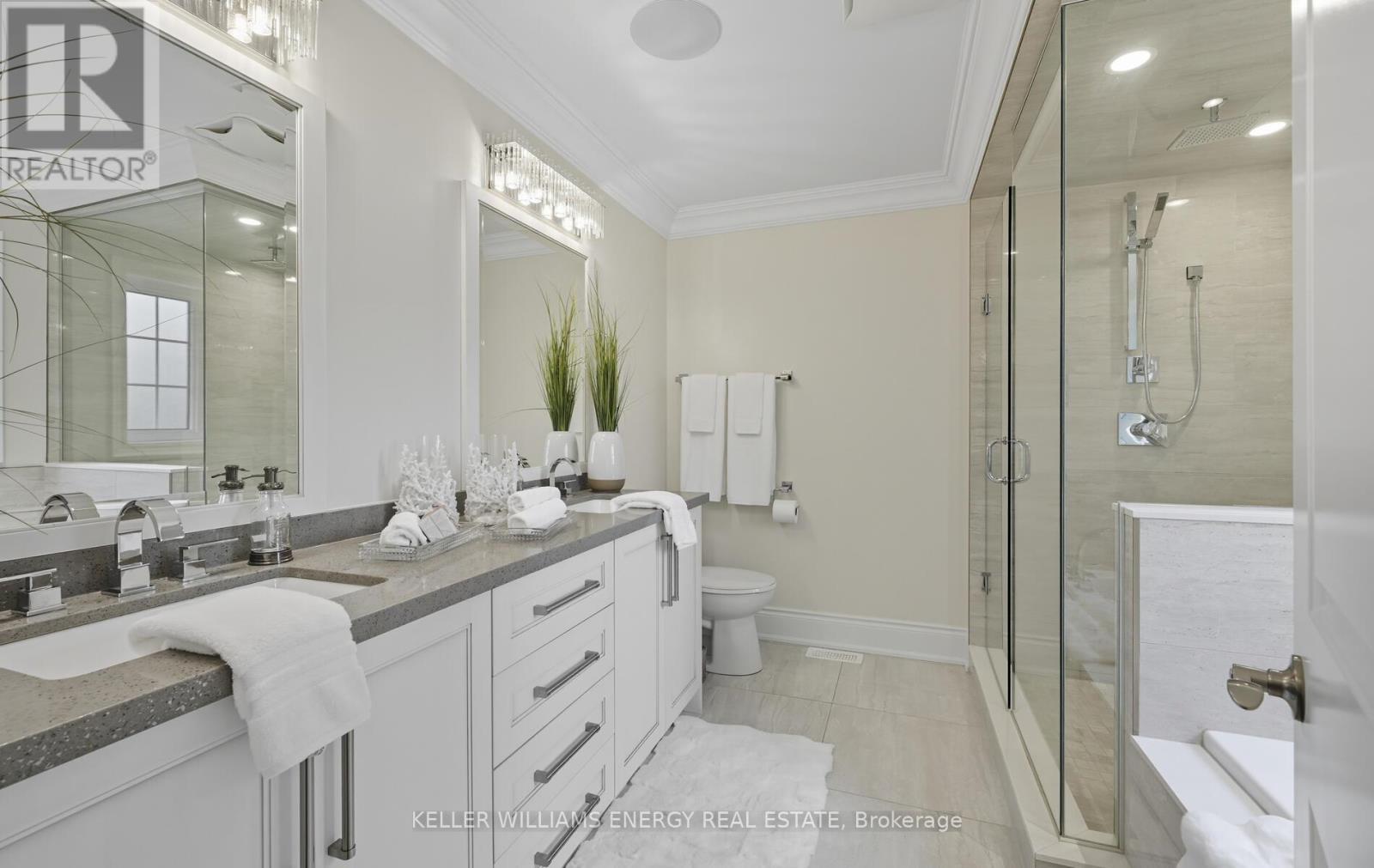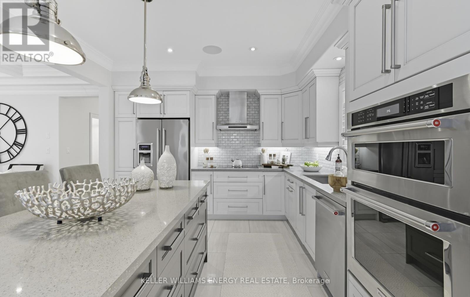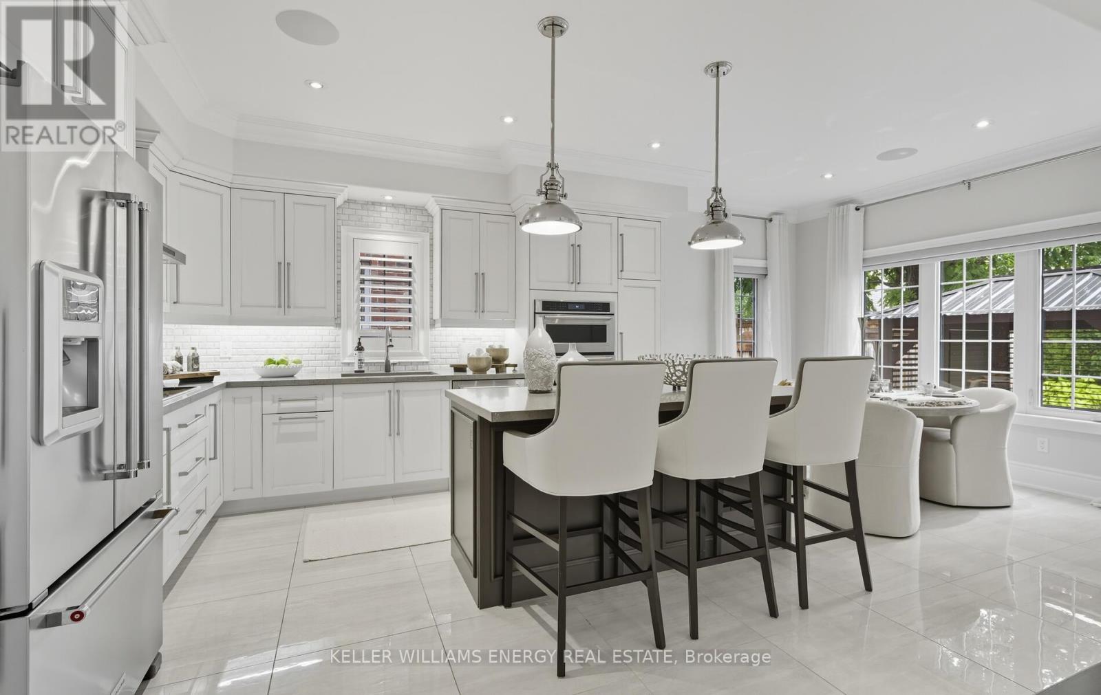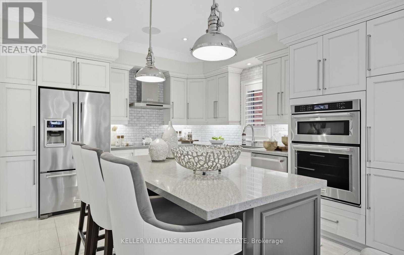 Welcome to 46 Nathan Avenue, an executive showpiece in the heart of Brooklin where timeless design meets everyday luxury. This 2-storey home commands attention with its stone, stucco and brick faade, stately front portico, and elegant exterior lighting. Professionally landscaped front and side yards lead to a fully fenced backyard oasis featuring a Rain Bird irrigation system (5 zones), interlock walkways, and dual gated entrances. Gather with family and friends around the gas fire table, enjoy evenings under the gazebo this outdoor space is made for entertaining. Inside, the grand entrance is framed by custom moldings and trim that set the tone for the refined finishes throughout. The dream kitchen boasts soft-close cabinetry, an oversized island with breakfast bar, pendant lighting, pot drawers, upgraded backsplash, and built-in oven and microwave. French doors extend the living space and natural light. The main floor flows seamlessly with smooth ceilings, 9-foot height, upgraded hardwood and ceramic tile, plus waffle ceilings in the family room, dining room, and office. A custom bookcase in the family room, pot lighting throughout, and a wet bar with cabinetry and wine fridge elevate both style and function. Upstairs, the primary retreat offers pot lighting, a spa-inspired ensuite with upgraded rain shower, double under-mount sinks, and a generous walk-in closet. Three additional bedrooms are equally spacious and versatile. Each is finished with blackout blinds, upgraded lighting, privacy shades, and plush broadloom with upgraded under-pad. A convenient second-floor laundry room completes the level. This home is designed for modern living, offering eleven built-In speakers, central vacuum, garage access, and a 3-ton A/C unit. Lifestyle details from the under-mount sinks throughout to custom crown moldings, upgraded fixtures, and window coverings showcase true pride of ownership. (id:51158)