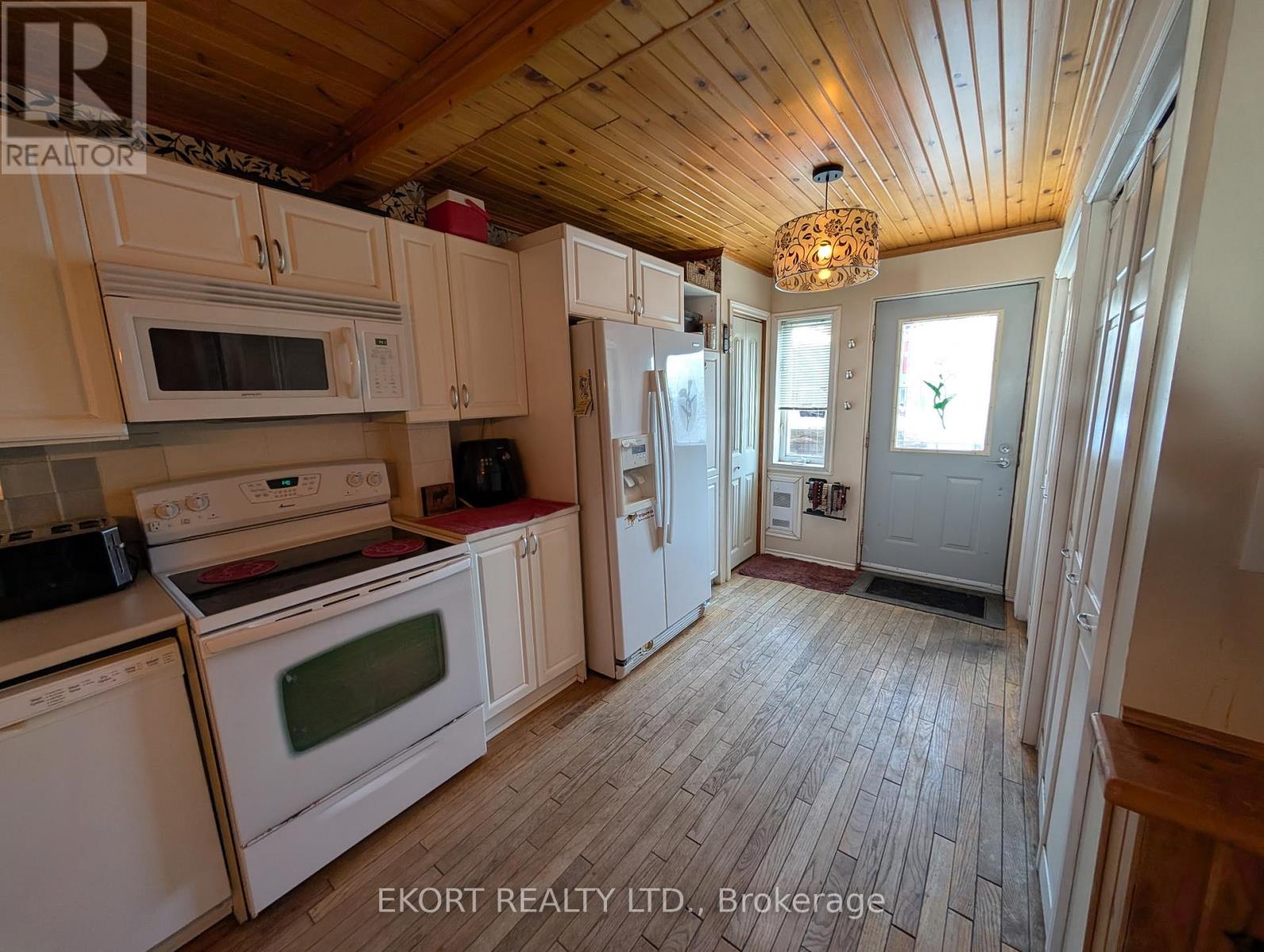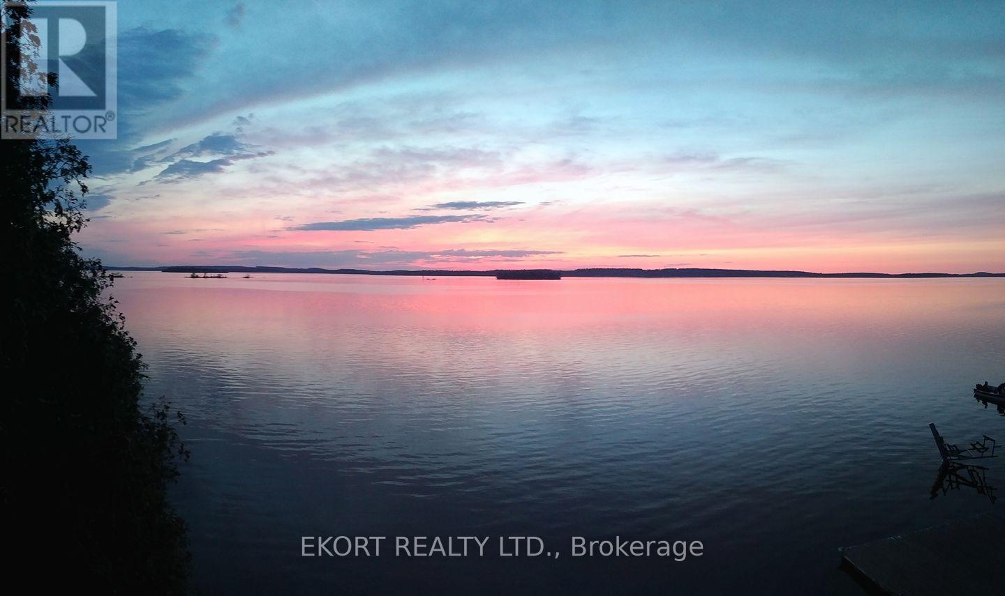 This home is for you if you're searching for a permanent residence or a four-season retreat with year round waterfront living on Rice Lake! Intoxicating panoramic views and glorious sunsets, enjoy all the activities of lakeside - boating, fishing, swimming & skating with trails close by... the perfect setting for intimate gatherings or lively get-togethers. The entire upper floor presents the primary bedroom offering serene lake views and private access to the first of three decks, the ideal spot to enjoy quiet mornings and stunning sunrises, completed with a large full bath and walk-in closet/storage area. A cozy fireplace in the dining room adds warmth to the living space on the main floor which includes a guest or secondary bedroom, 3 piece bath, kitchen, living room and den/office space that exits to the main deck and stairs. Follow these down to the bunkie (complete with it's own wood stove, it's own deck and epic water views). You can continue from there down to the water with your own private dock and seating space. This home is located at the quiet end of a private road with parking for 3. (id:51158)