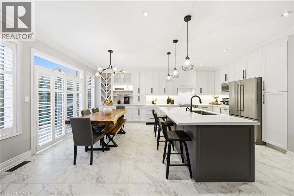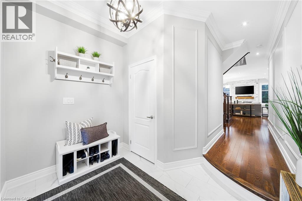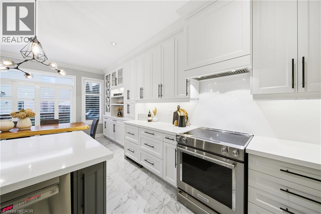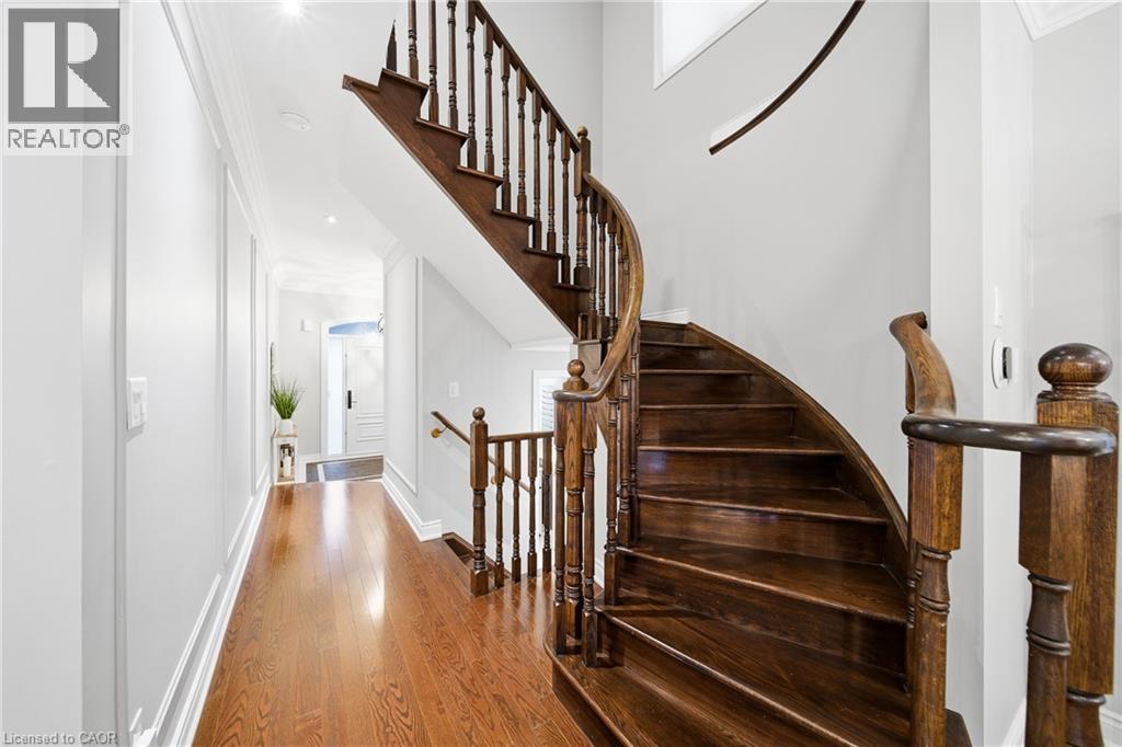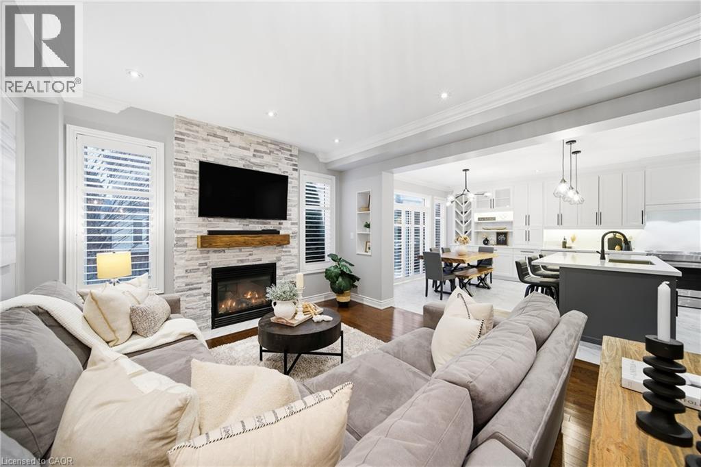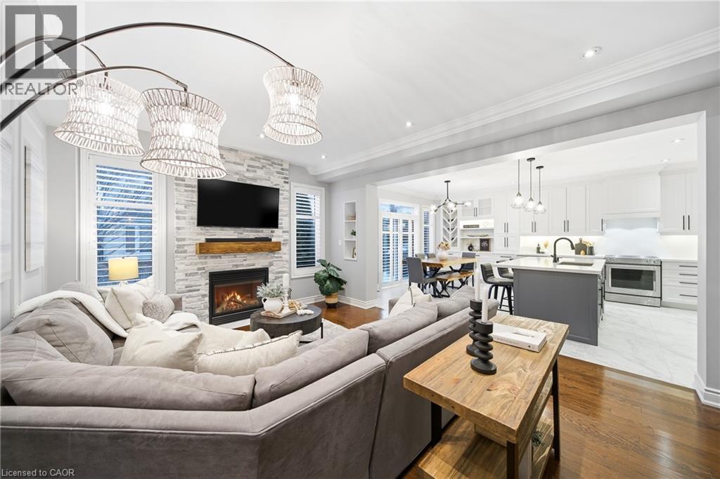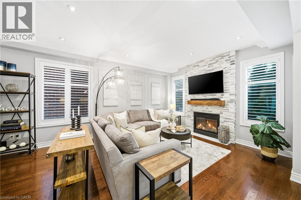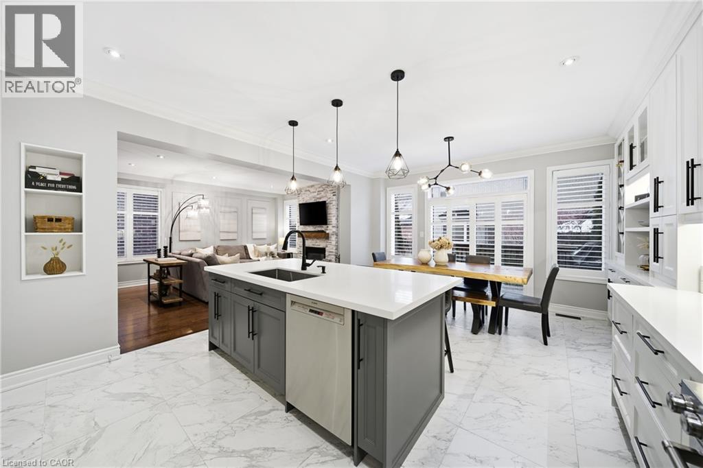 Move-in ready, beautifully styled 4+1 bed 3.5 bath home nestled on a quiet street in family-friendly Alton community. Exceptional curb appeal greets you with a stone exterior, refreshed landscaping, upgraded front door & garage doors (2025), and double garage. Inside, the home has been thoughtfully renovated and impeccably maintained. Main level showcases hardwood flooring, 9’ ceilings, potlights, upgraded light fixtures, shutters, elegant panel moulding, wainscoting, crown moulding and trim throughout. The inviting family room is anchored by a gas fireplace with a custom mantle and striking stone accent wall, offering a warm, stylish space to relax. The heart of the home is the custom-crafted, renovated eat-in kitchen, featuring built-in shelving, a large quartz island, SS appliances, gorgeous lighting and thoughtful storage—perfect for everyday living and entertaining. Newly renovated powder room and updated tile flooring in the front entry complete the main level. Upstairs, you’ll find 4 generously sized bedrooms, including a serene primary retreat with a walk-in closet and a beautifully renovated 5-pc ensuite (2025) featuring soaker tub & glass shower. Bedroom-level laundry adds everyday convenience. Professionally finished lower level extends your living space with a 5th bedroom complete with egress window, an updated full bathroom, ample storage and a dedicated theatre area with 9.2 surround sound wiring—ideal for movie nights, guests, or a teen retreat. Step outside to enjoy a deck off the kitchen for barbecuing and a private backyard with stone patio, interlock, and low-voltage landscape lighting front and back. A three-zone irrigation system keeps the grounds lush and low maintenance. Additional peace-of-mind upgrades include a roof with upgraded insulation (2022), furnace and A/C (2021), and hot water heater (2024). Close to top-rated schools, parks, shopping, GO Transit and easy access to hwys 407 & QEW, this exceptional home truly checks all the boxes. (id:51158)