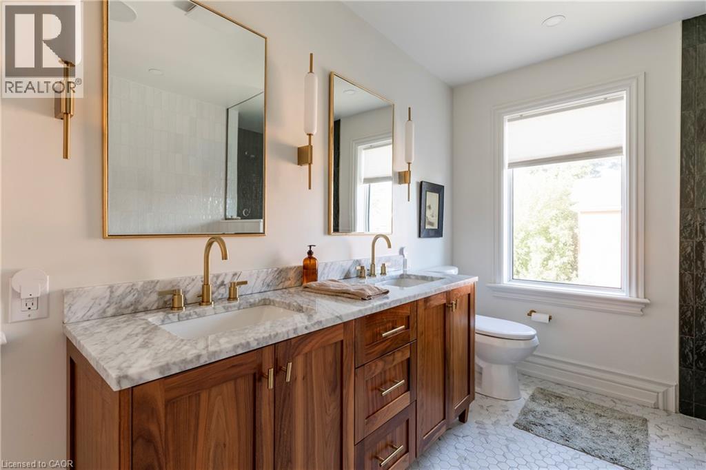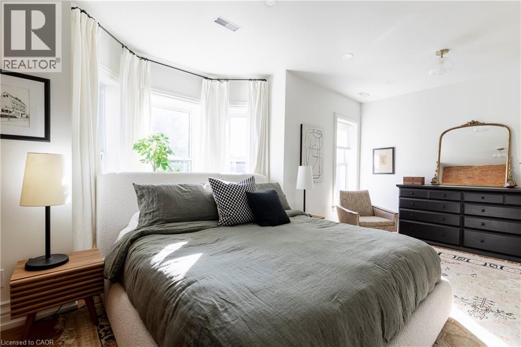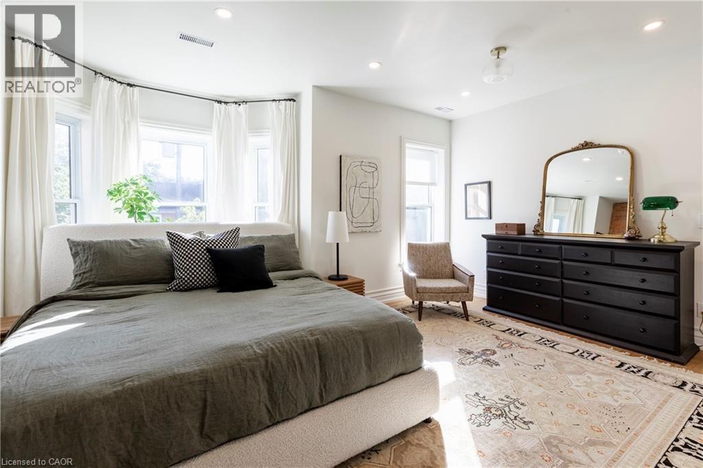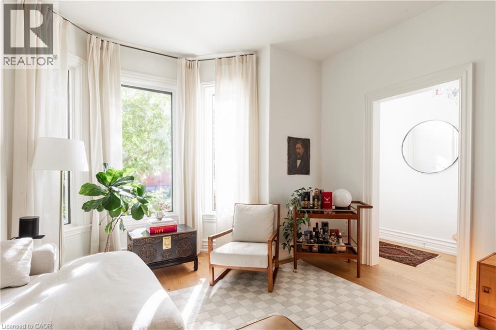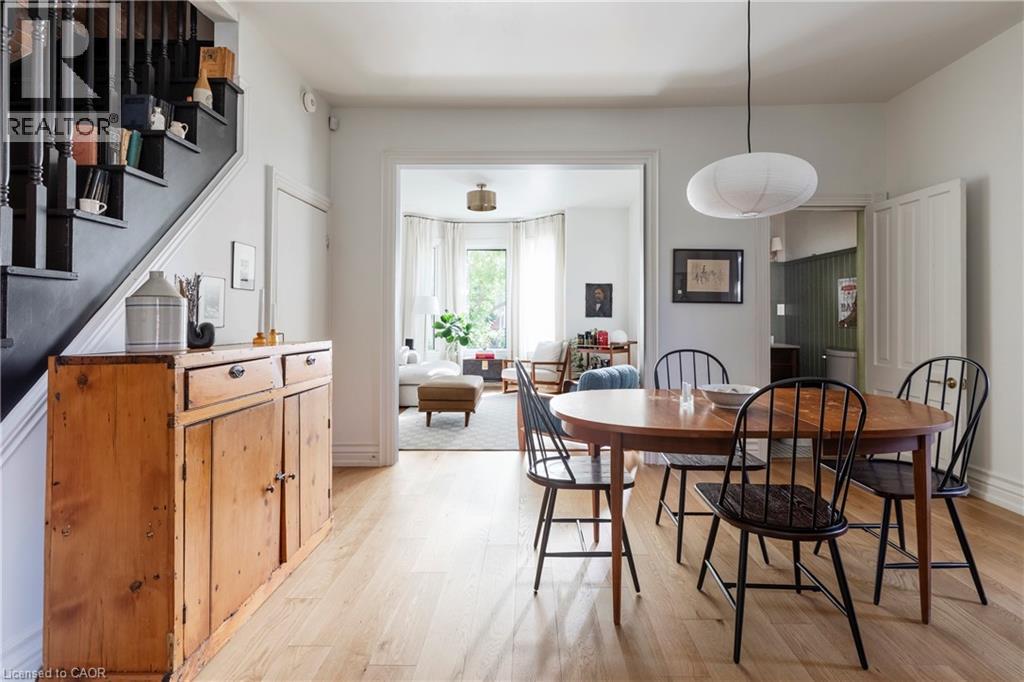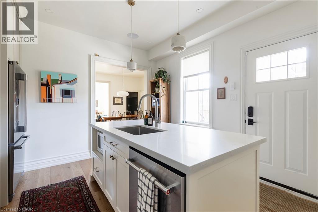 A royal find on King William. This 3 bedrm, 2 bath brick semi retains its century-old character while delivering the chic updates and functionality today’s buyer craves. Step inside to a traditional layout with soaring ceilings, a bay window that floods the living room & formal dining room with natural light, and impeccable design touches throughout. The chic, trendy-yet-classic finishes make every space feel fresh and inviting. A rare and handy feature is the main floor powder room. There is the convenience of a main floor bedroom that could also double as the home office or hobby room. The eat-in kitchen is truly one to die for! The kitchen is beautifully designed for both everyday living or entertainment- friends or family can hang out around the large island, have a cocktail or snacks, and everyone can enjoy the built-in speaker system. Upstairs, retreat to a spacious primary bedroom, with the convenience of a upper level laundry room so there’s no need to carry laundry downstairs. Indulge in the stunning 5-piece bathroom, featuring double sinks, a huge shower, ample storage, built- in speaker system and heated floors—spa-like finishes you’ll fall in love with. Outside, this corner lot is just as impressive, featuring a Trillium Award–winning garden, a cozy and private side yard oasis, with 2-tier deck, plus rare 3-car parking. With style, substance, and undeniable curb appeal, this home is the total package. RSA. (id:51158)