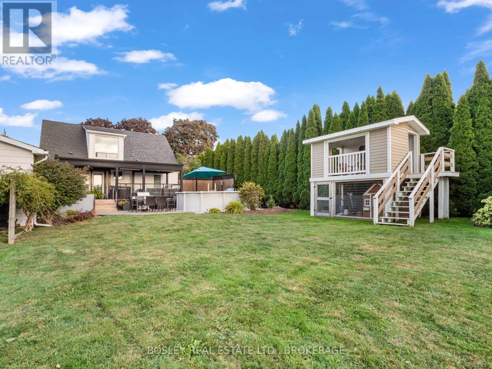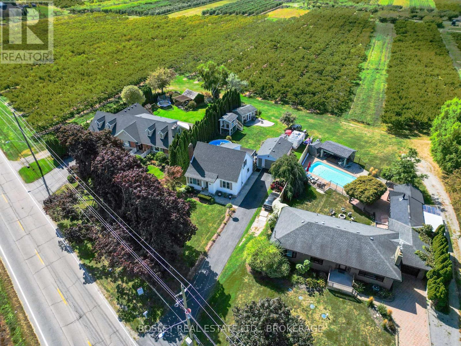 The best of both worlds rings true here! A dream location, a stunning setting, quiet mornings and peaceful nights. With a St.Catharines address, but pure NOTL vibes, this charming home is the setting for your next chapter. Step back in time with this storybook 1949-built home, full of character and warmth, set on a generous lot with a tranquil backyard, and located just over the canal. Offering 1,279 sq. ft. of inviting living space, this well-appointed and renovated home is ready for you. Inside, you'll find a comfortable layout filled with light and timeless charm. The main floor offers a bright and welcoming living space, perfect for family gatherings or curling up with a good book. There is a main floor primary and updated 4 piece bathroom, and streamlined kitchen with custom cabinetry granite counter-tops, separate dining and living areas and views through to your serene backyard. Upstairs, the half-story provides the perfect spot for two good sized bedrooms with great closet space...and of course another vantage point to enjoy views over the orchard. The fully finished basement has a gas fireplace, brand new flooring, laundry area, office space and plenty of storage and pantry space. But it's the outdoors that will truly capture your heart. The spacious backyard on its 76ftx166ft lot is a great find whether you dream of summer barbecues, kids running and playing, or quiet evenings under the stars, this private green space is where memories will be made. A covered porch with plenty of room to entertain overlooks the pool, hot tub, chicken coop/playhouse, and oversized shed with stamped concrete patio area. There is also a 1.5 garage with 100amp for all your toys, storage, or workshop goals. All of this is tucked into the edge of St.Catharines, but bordering NOTL known for its scenic beauty, award-winning wineries, and charming Old Town. Here, life moves at just the right pace, with everything you need only minutes away. Come for a look, and stay for life. (id:51158)