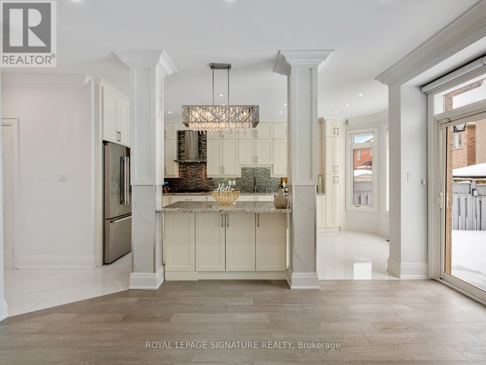 Absolutely Stunning, Fully Renovated Dream Home in the Heart of Vellore Village!Located in a sought-after, family-friendly neighbourhood, this beautifully updated home offers exceptional curb appeal with along, widened interlocked driveway (parking for 3 cars) and no sidewalk.Featuring approximately 3,300 sq ft of finished living space, this home boasts a fantastic open-concept layout designed for both everyday living and entertaining. The main floor features 9-ft smooth ceilings, porcelain tile and hardwood flooring throughout,crown mouldings, pot lights, wrought-iron pickets, and a cozy gas fireplace.The gourmet kitchen is an entertainer's dream, complete with built-in appliances, gas stove, granite countertops, custom glass backsplash, centre island with breakfast bar, valance lighting, pantry, built-in wine rack, and walkout to a private interlocked patio.Retreat to the luxurious primary suite, featuring a walk-in closet and a spa-inspired 5-piece ensuite with a double vanity, a floating soaker tub, and a walk-in rainfall shower. All bathrooms have been tastefully updated.The professionally finished basement features a spacious recreation room, a 5th bedroom, and a 3-piece bath - ideal for an in-law suite or extended-family living.Enjoy a private, fenced backyard with an interlocking patio resurfaced/refaced, ready for BBQ season. Walk to parks and amenities, close to major highways for easy commuting, and top-ranking schools.A true showstopper - don't miss this exceptional opportunity! (id:51158)