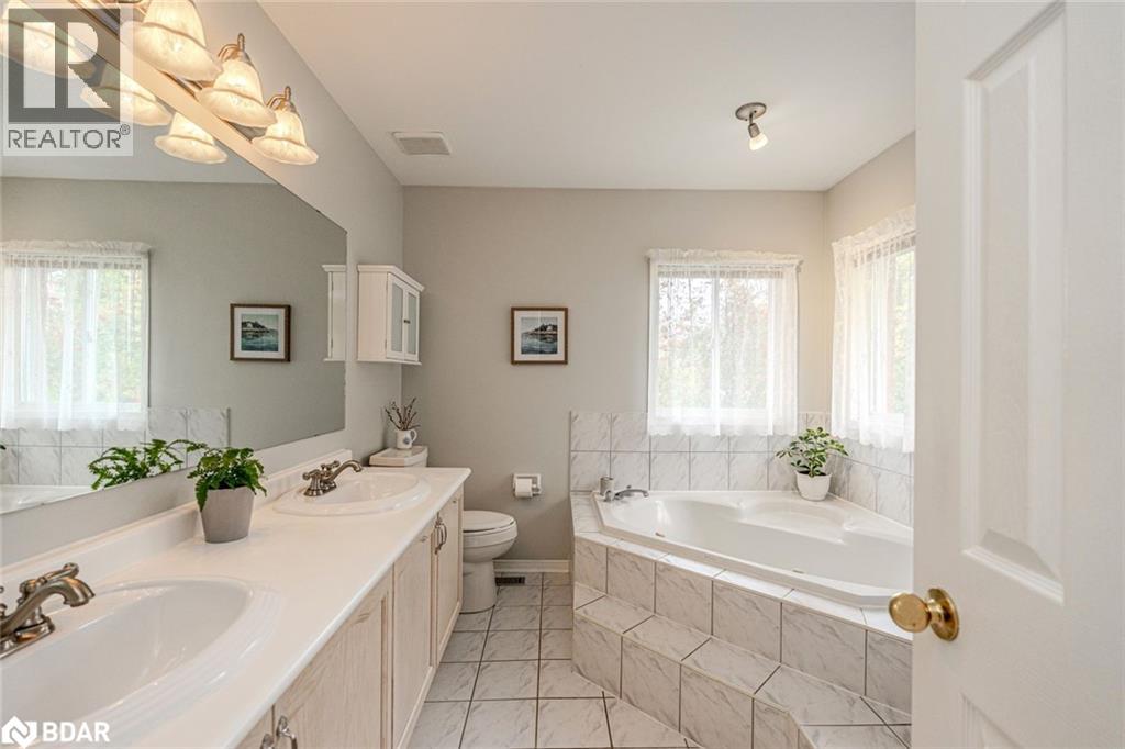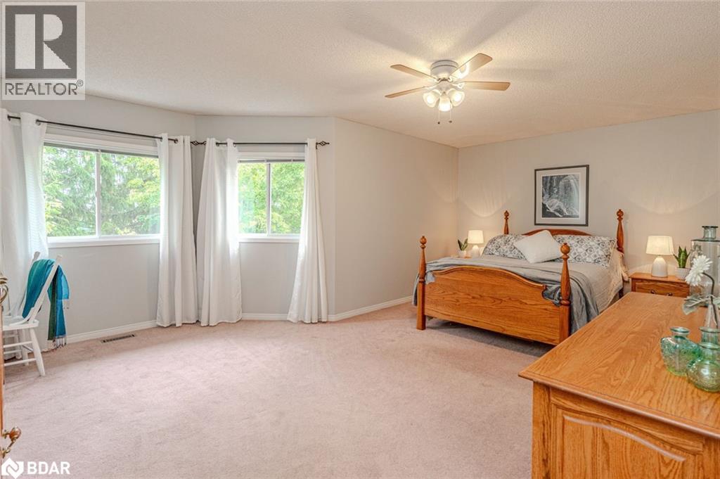IMPECCABLY KEPT ALL-BRICK 2-STOREY SHOWCASING NEARLY 3,100 SQ FT & MATURE GREENERY BEHIND! 47 Finlay Road in Barrie’s sought-after West Bayfield neighbourhood is an all-brick 2-storey home offering nearly 3,100 finished square feet of thoughtfully designed living space. The fully fenced backyard backs onto greenspace beside West Bayfield Elementary, creating a rare sense of privacy with mature trees, lush gardens, and a deck ready for everything from morning coffee to weekend get-togethers. Upgraded hardwood and luxe engineered vinyl floors extend throughout the main level, where the kitchen impresses with stainless steel appliances, ample cabinetry, and a breakfast area featuring a pass-through window to the family room and a walkout to the yard. The family room is anchored by a wood-burning fireplace with a stone surround and rustic mantle, paired with a bright bay window, plus a nearby combined living and dining room. Upstairs, the expansive primary suite is a true retreat, featuring a sitting area, a walk-in closet, and a 5-piece ensuite complete with a corner Jacuzzi tub, dual vanity, and stand-up shower. The finished basement offers incredible versatility, presenting above-grade windows, a large rec room suitable for a pool table, a gas fireplace, a wet bar, and excellent potential for an in-law suite. Practical touches include a basement workshop, a well-maintained garage workspace with epoxy floors, and a main floor laundry room with inside entry from the garage, complete with a laundry sink. Whether it’s unwinding by the cozy fireplaces, hosting game nights in the basement, or relaxing on the deck surrounded by mature greenery, life here is all about comfort without compromise! (id:51158)