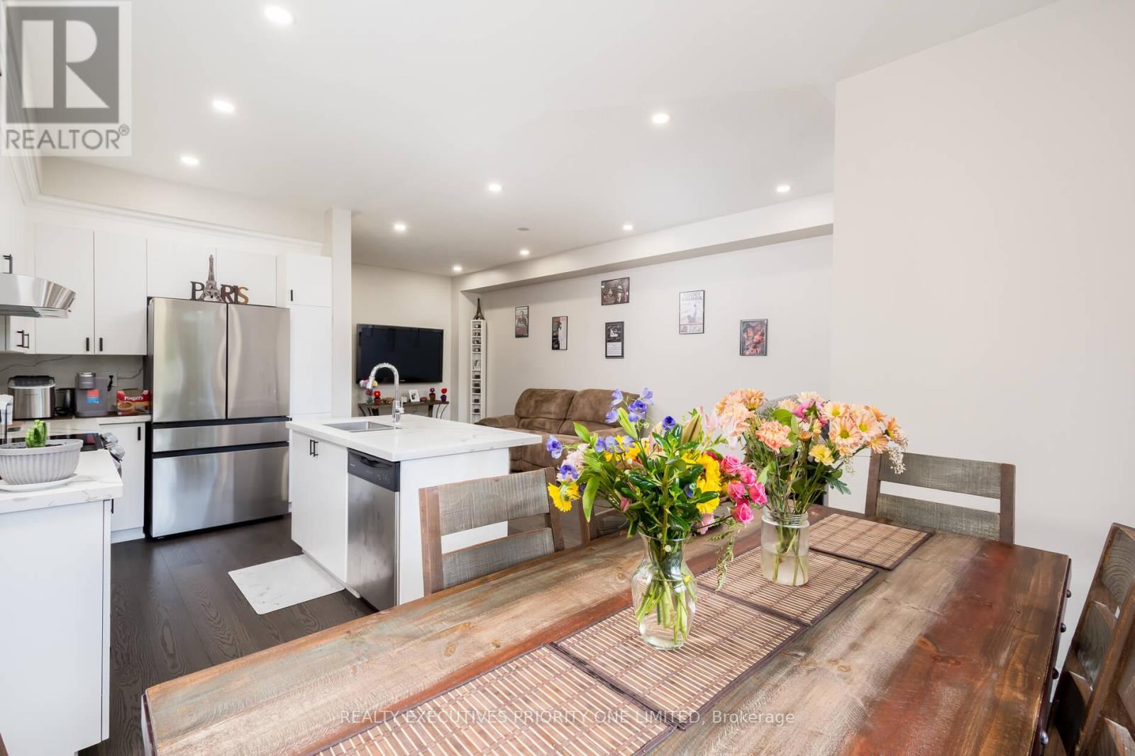 Welcome to 47 Greenwood Drive, Angus An Executive Town home Like No Other! Move-in ready and upgraded with thousands spent ($$$), this immaculate freehold semi-town home is attached only on one side by the house and garage, offering both exceptional design and functionality. Boasting 1,569 sq. ft. of thoughtfully designed living space, this home showcases pride of ownership throughout. Highlights include hardwood flooring, pot lights, wrought-iron staircase, inside garage access, and a bright open-concept layout with 9-ft ceilings on the main floor. The modern eat-in kitchen is a showstopper, featuring quartz counter tops, quartz backsplash, and a walkout to the deck perfect for family living and entertaining. Freshly painted, this home is truly move-in ready. Upstairs, you'll find three spacious bedrooms, including a primary retreat with a walk-in closet and 4-piece en suite. A second 4-piece bathroom and the convenience of an upper-level laundry room complete the functional design. Ideally located, this home is just minutes from Highway 400, Barrie, and C.F.B. Borden, close to schools, parks, and all amenities. (id:51158)