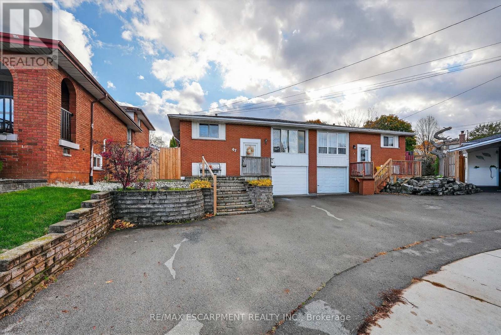 QUIET COURT ON HAMILTON MOUNTAIN...Set on a quiet court on the Hamilton Mountain, 47 Rowena Court delivers the ideal blend of function, family-friendly layout, and confidence in long-term upkeep. This semi-detached, all brick, RAISED RANCH has been thoughtfully updated over the years, making it an easy choice for buyers who want move-in comfort without the worry of several big expenses ahead. The main level features an inviting OPEN CONCEPT layout where the living room flows into the dining area, creating a bright and relaxed space. The kitchen offers exceptional practicality w/large island, pantry storage, gas stove, fridge, dishwasher, garburator, and a convenient wall opening that keeps the cook connected to the living space. An updated 3-pc bath (2013) plus three bedrooms complete this floor, including one w/sliding doors and built-in Murphy bed, providing flexible use as a guest room, home office, or bedroom with direct access to the XL covered back deck. The finished basement extends the living space with a cozy rec room featuring a gas fireplace, 3-pc bath, laundry area, and plenty of storage. The attached garage offers inside entry and is currently partially converted for extra storage but can be easily returned to full use. Outside, the fully fenced backyard is designed for enjoyment and low-maintenance living - featuring a 16' x 22' covered deck w/gas BBQ hookup, shed, raised garden, and extra storage space by the deck. The double asphalt driveway accommodates three vehicles comfortably. Notable UPDATES include new panel breakers (2024), new furnace & A/C (2024), rental HWT (2023), dividing fence (2023), roof (2015), kitchen & both baths (2013), plus updated windows & doors. With quick access to the LINC, QEW, public transit, schools, shopping, dining, parks, and healthcare, this is a home that has been cared for, improved with intention, and sits in a location that checks every box. CLICK ON MULTIMEDIA for virtual tour, drone photos, floor plans & more. (id:51158)
