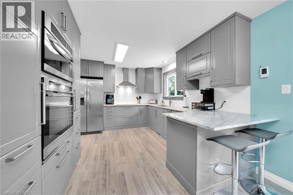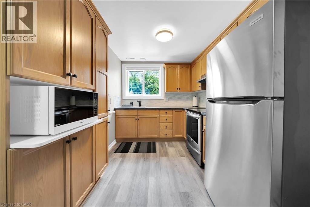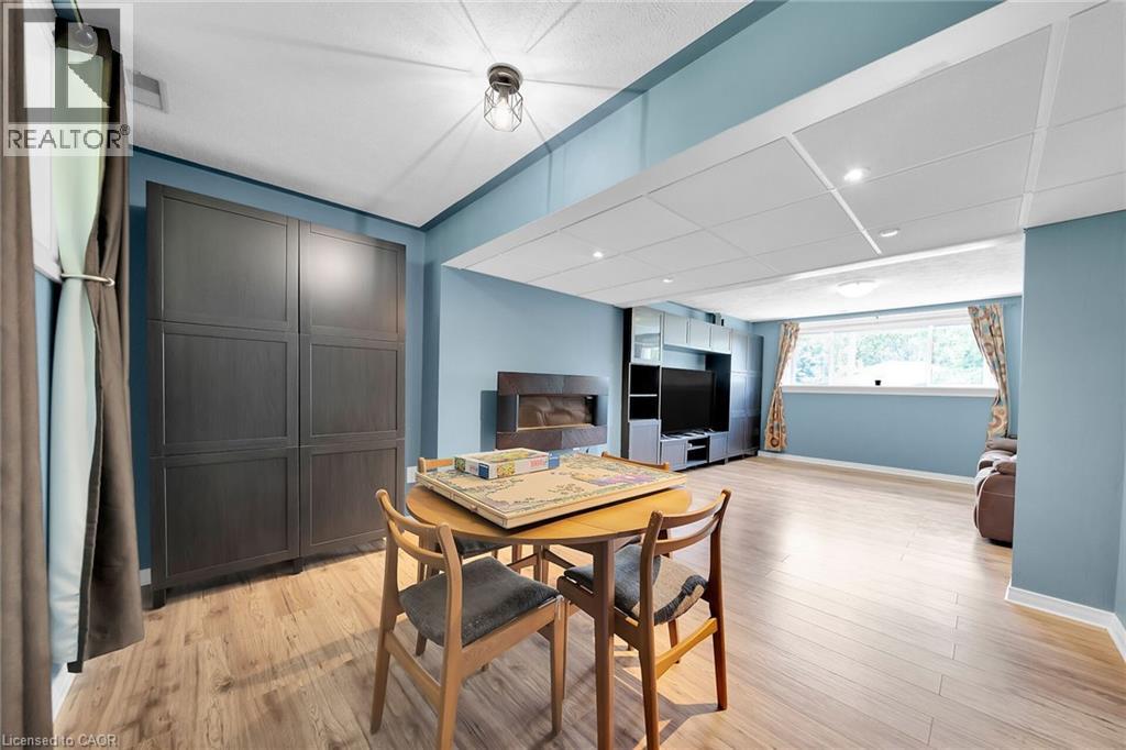 SEPARATE IN LAW. A super family home in the charming town of Cayuga. There have been many improvements in this lovely 2 family home on a quiet street over the last few years. The elevated bungalow is designed with large windows on both levels providing lots of natural light. The large deck (2022) has composite flooring and is accessible from the kitchen/ dining rooms. The gorgeous kitchen was replaced (2020) with all of the bells and whistles you dream about. Enjoy privacy overlooking your 74 ft x 137 ft lot must be seen to be appreciated with mature trees and storage shed for gardening supplies. The upper level boasts 3 bedrooms and 2 full baths. The lower level has a generous rec room that will fit the whole family. Furnace, a/c and water heater (2018) The in-law suite in the basement (2021) has a separate entrance, living room with cozy fireplace, kitchen, bathrm and bedroom. It is charming and bright. The garage is 1.5 car and 26.6ft deep allowing for a great workshop area. RSA. (id:51158)