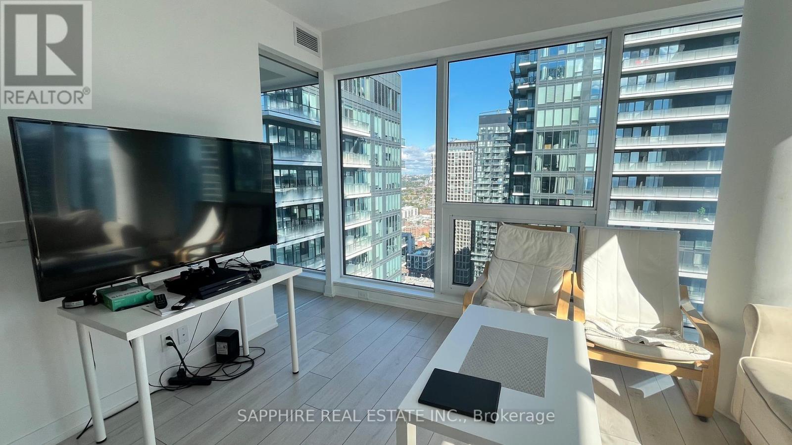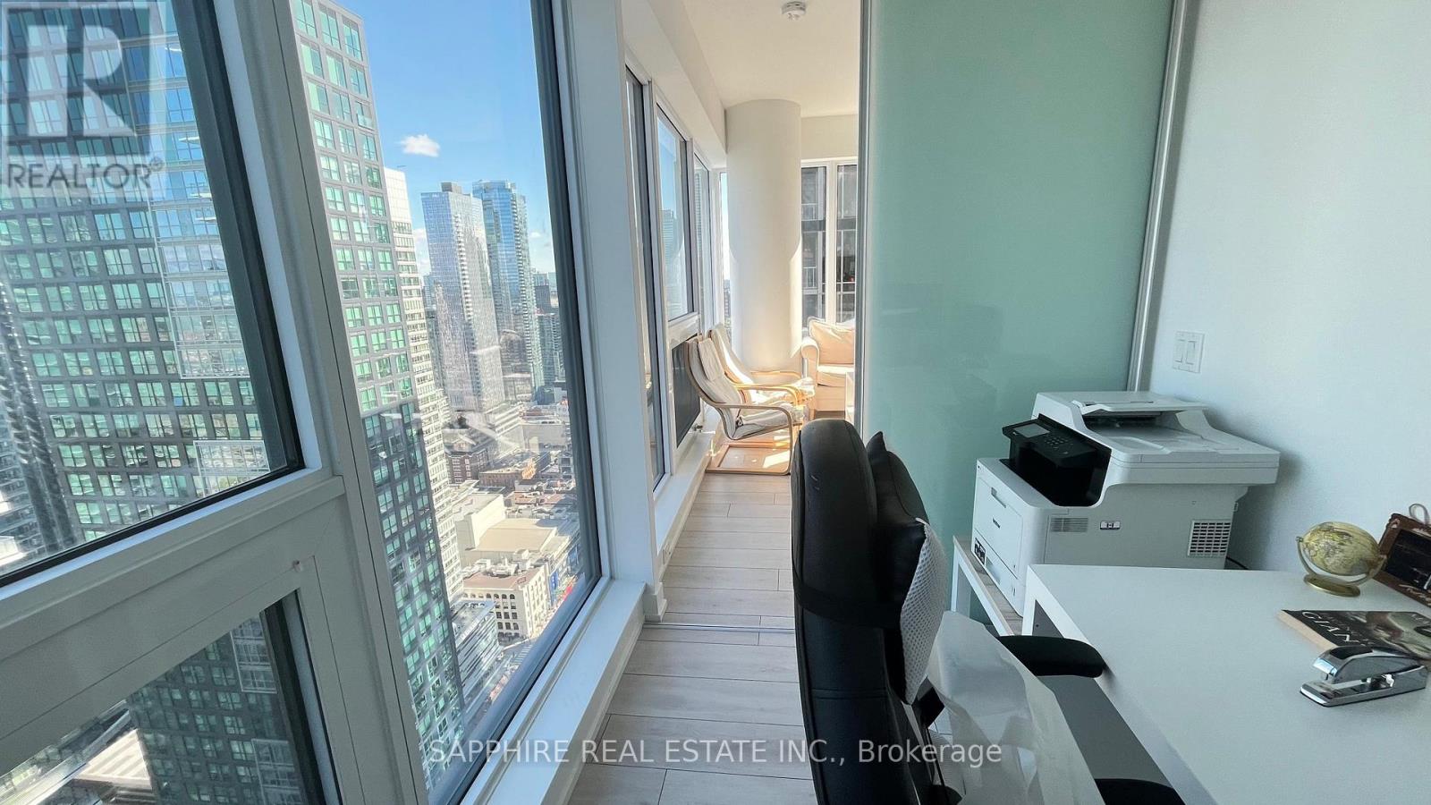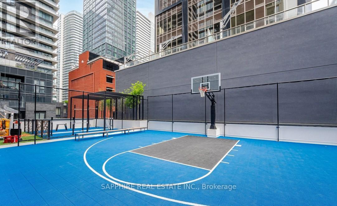 Experience elevated urban living in Toronto's vibrant Entertainment District.This beautifully designed 1+den, 2-bath corner unit residence features floor-to-ceiling windows that flood the suite with natural light. Spanning approximately 657 sq. ft., the open-concept layout is thoughtfully designed for modern city lifestyles. Enjoy excellent views of the CN Tower, Rogers Centre, and Lake Ontario from the balcony, bathing the space in natural light.The sleek kitchen boasts built-in appliances and premium finishes, seamlessly blending into the living and dining areas. A fully enclosed den offers the versatility of a private home office or guest bedroom while two full bathrooms add comfort and functionality.Residents enjoy access to exceptional amenities, including a 24-hour concierge, rooftop BBQ terrace, state-of-the-art fitness centre, basketball court, and stylish entertainment lounge. With a Walk Score of 99, you're just steps from King Street transit, Union Station, the PATH system, and Toronto's finest restaurants, shops, and nightlife. Neighbouring green spaces like Simcoe Park, Clarence Square, and St. Patricks Square offer a peaceful urban escape, while the nearby Financial District, Chinatown, Queen West, and the waterfront ensure you're always at the centre of it all. This is the ultimate blend of luxury, lifestyle, and location in one of downtown Toronto's most prestigious new developments..1 locker included + High-Speed Internet. (id:51158)