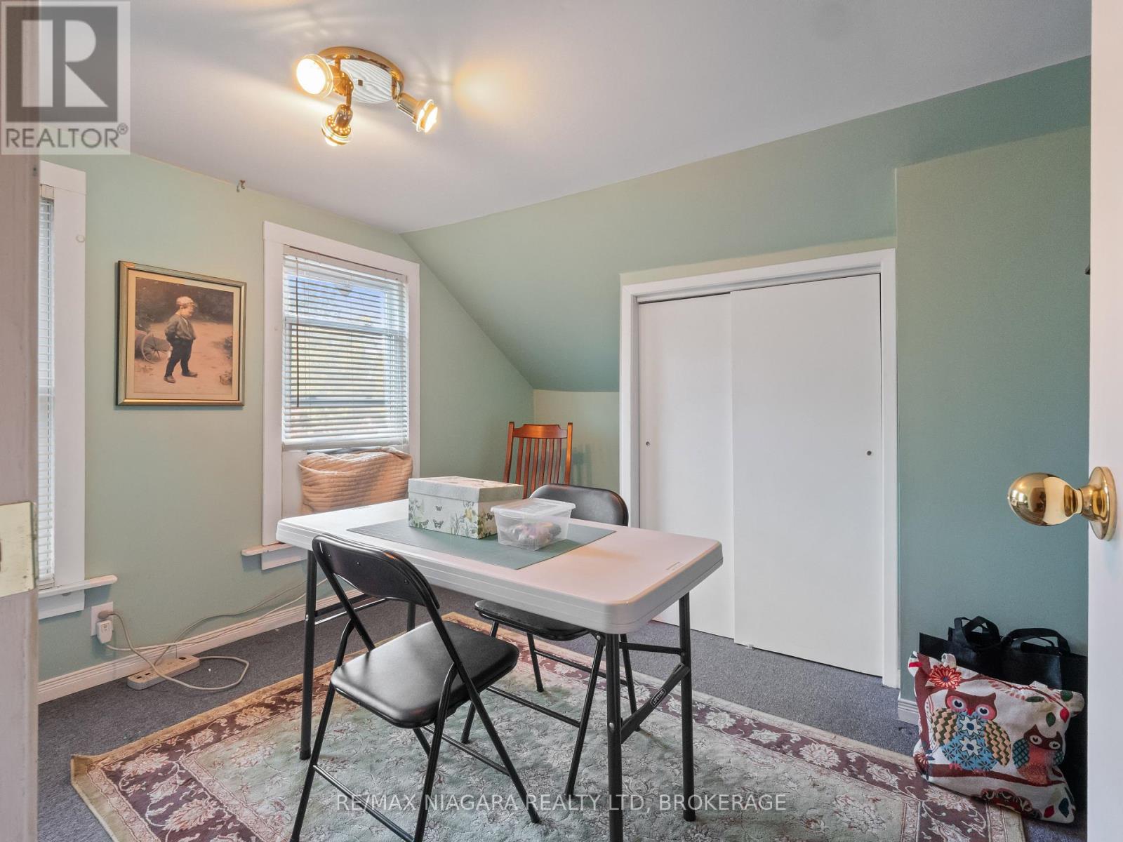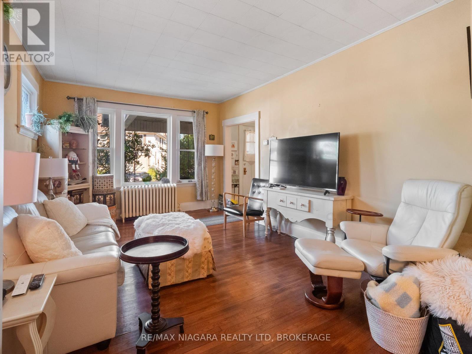 This 1.5 story home is centrally located within minutes walk to Niagara River Parkway, Restaurants, Clifton Hill, The Casino, Hotels, and quick highway access . The main level includes a living room, dining room, kitchen with dinette area and walkout to the yard, a bedroom or den and 4 piece bath. The second level offers 3 bedrooms with mostly hardwood floors. Features a large covered front porch you to enjoy entertaining or your morning coffee. This home is perfect for first time homebuyers or an investment property. (id:51158)