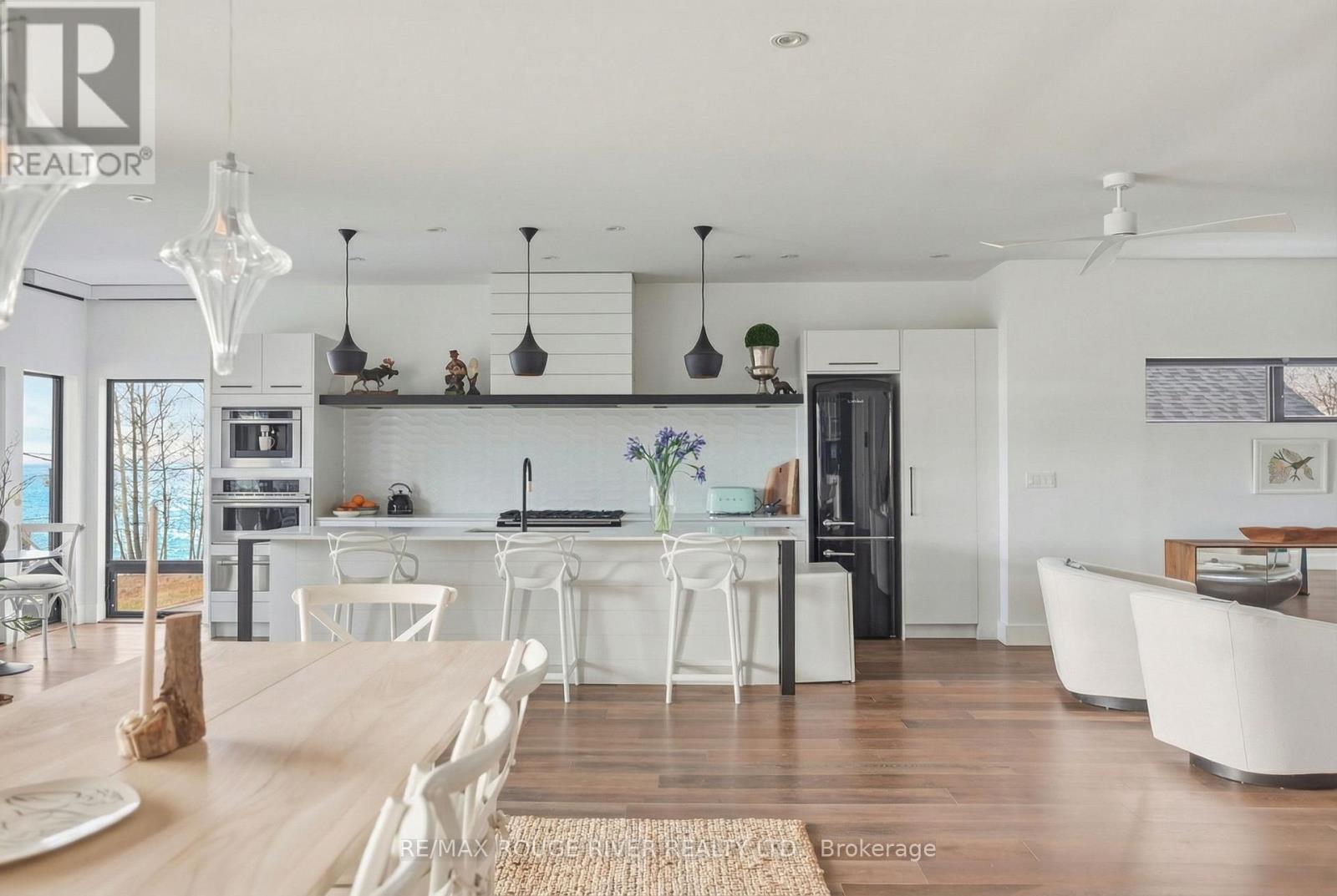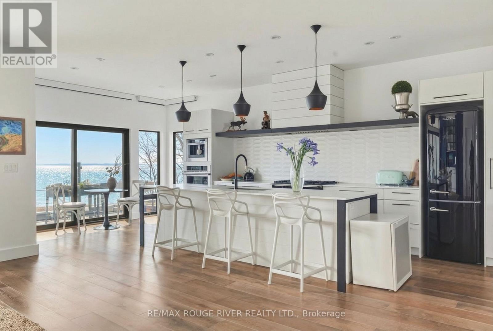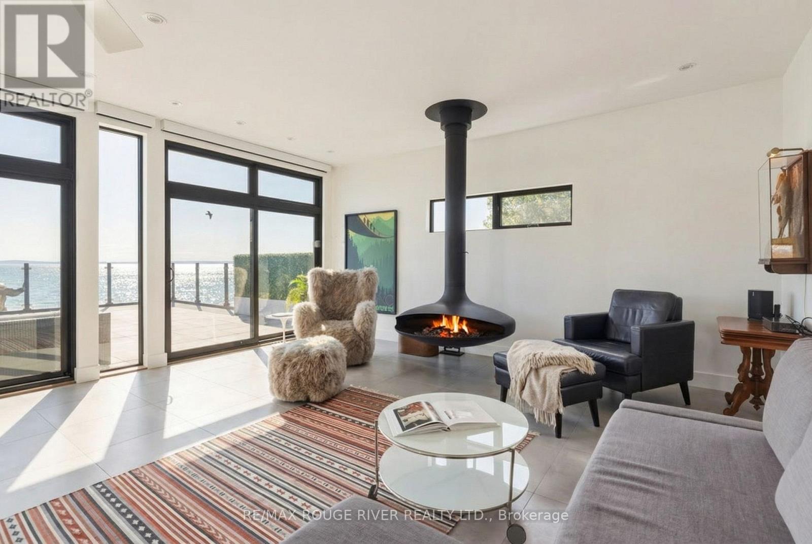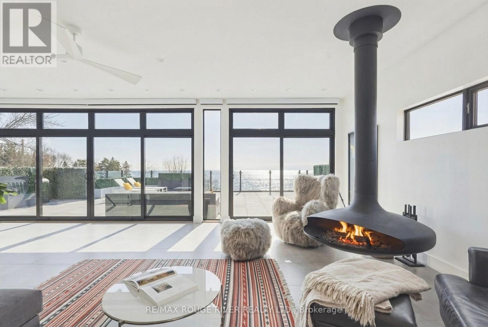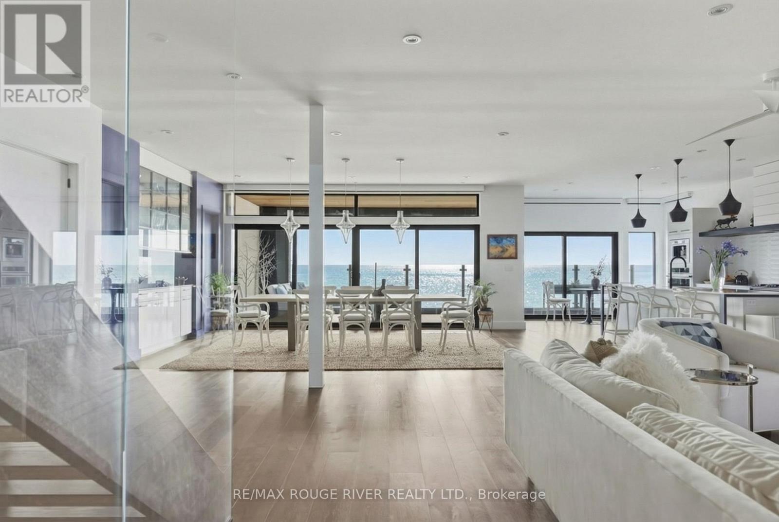 With uninterrupted turquoise views of Lake Ontario, this exceptional residence is set within one of Cobourg's most coveted waterfront enclaves. Inside, quality, scale, and versatility are evident throughout, executed by a renowned Toronto design-build firm.The self-contained main floor features a 2-bedroom, 2-bathroom suite with a private entrance, modern kitchen, statement fireplace, formal dining area & front patio - ideal for multigenerational living or rental income. The lower level extends the home's flexibility, offering a bright, well-designed space with kitchen, high ceilings, & large window wells allowing for abundant natural light. Perfect for guests, hobbies, or even more additional income potential. The attached garage & multiple walkouts to the outdoors & private backyard, a personal retreat, professionally landscaped with hardscaping, lush greenery, lighting, a hot tub & gazebo. The lift is panelled and services all four levels. Upstairs, the second and third floors are dedicated to capturing breathtaking south-facing lake views. The open-concept living & dining areas flow onto multiple terraces, while the chef's kitchen showcases bespoke finishes, premium cabinetry, & high-end appliances. Two bedrooms, each with their own ensuite, along with a stylish family room, complete this level.The third floor offers a stunning blend of relaxation and entertainment space. A lounge with a wood burning, Scandinavian-inspired suspended fireplace opens to an expansive rooftop patio with panoramic water views. The primary suite is a luxurious retreat featuring a freestanding tub, double vanity, and glass shower, along with a sauna, and wet bar for your ultimate comfort. Located in the charming and increasingly popular town of Cobourg- known for its proximity to the city, heritage downtown, and vibrant dining and shopping, this home represents a rare opportunity to own a truly remarkable waterfront estate that blends timeless craftsmanship with modern living. (id:51158)