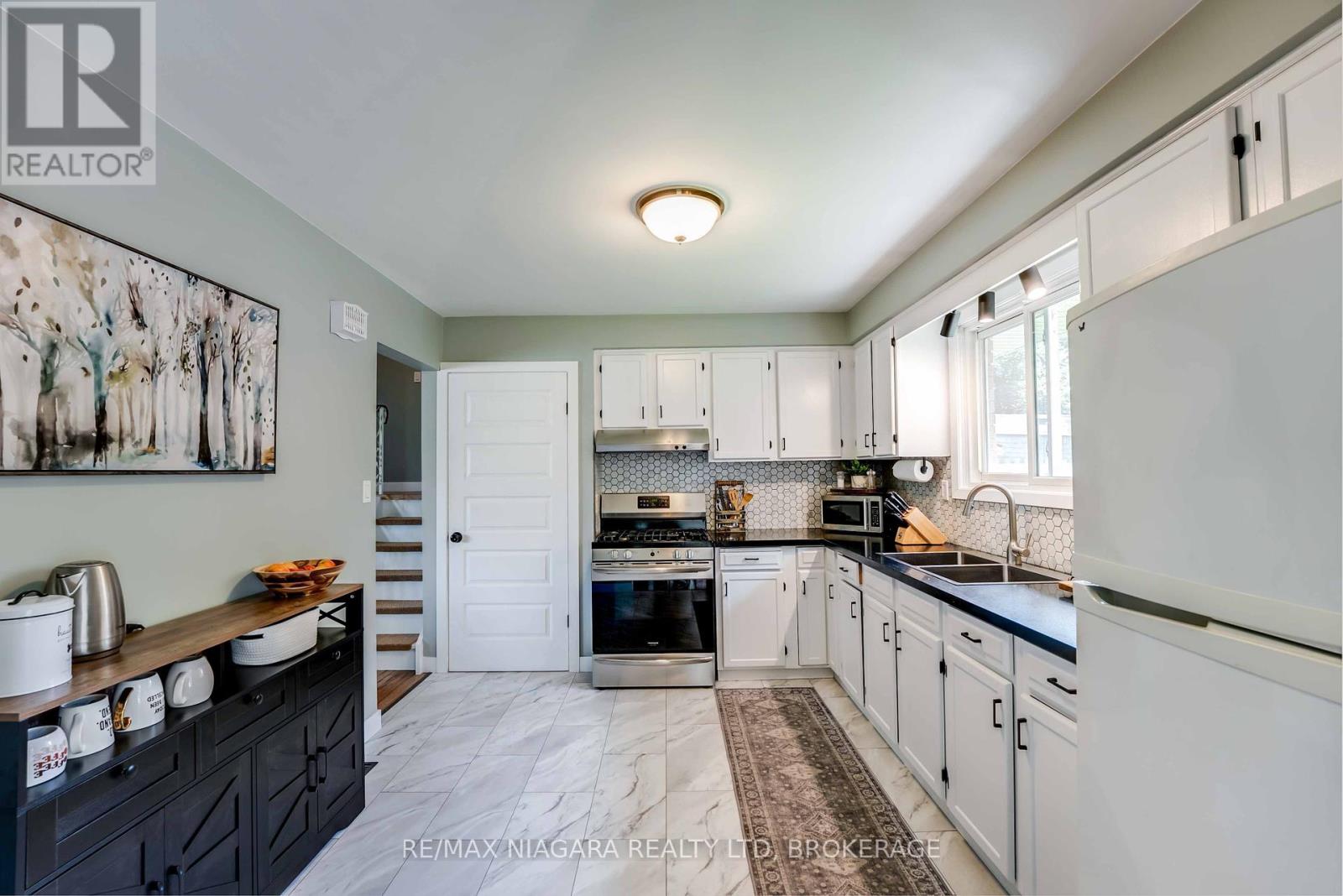 Welcome to this spacious 4-level side-split, perfectly situated in one of Welland's most family-friendly neighbourhoods on a large pool-sized lot. Freshly painted and full of updates, this home features new flooring, modern bathrooms, roof (2019), soffit and fascia (2023), garage door (2023), and a new breaker panel (2025). The main floor showcases a newly renovated kitchen with quartz countertops and a formal dining area with walkout to a custom covered porch, extending your living space outdoors. Upstairs you'll find 3 comfortable bedrooms, while the lower level offers a 4th bedroom, a cozy rec room with fireplace, and a 2pc bath, perfect for growing families or in-law potential with its separate entrance. The unfinished 4th level provides plenty of room for your creativity to design additional living space, storage, or a hobby area. With space to entertain, relax, grow, or even add a future pool, this move-in-ready property blends comfort, flexibility, and peace of mind with its extensive list of upgrades. Close proximity to schools, parks, bus stops, shopping and all other amenities, this house is the one to check all your boxes! (id:51158)