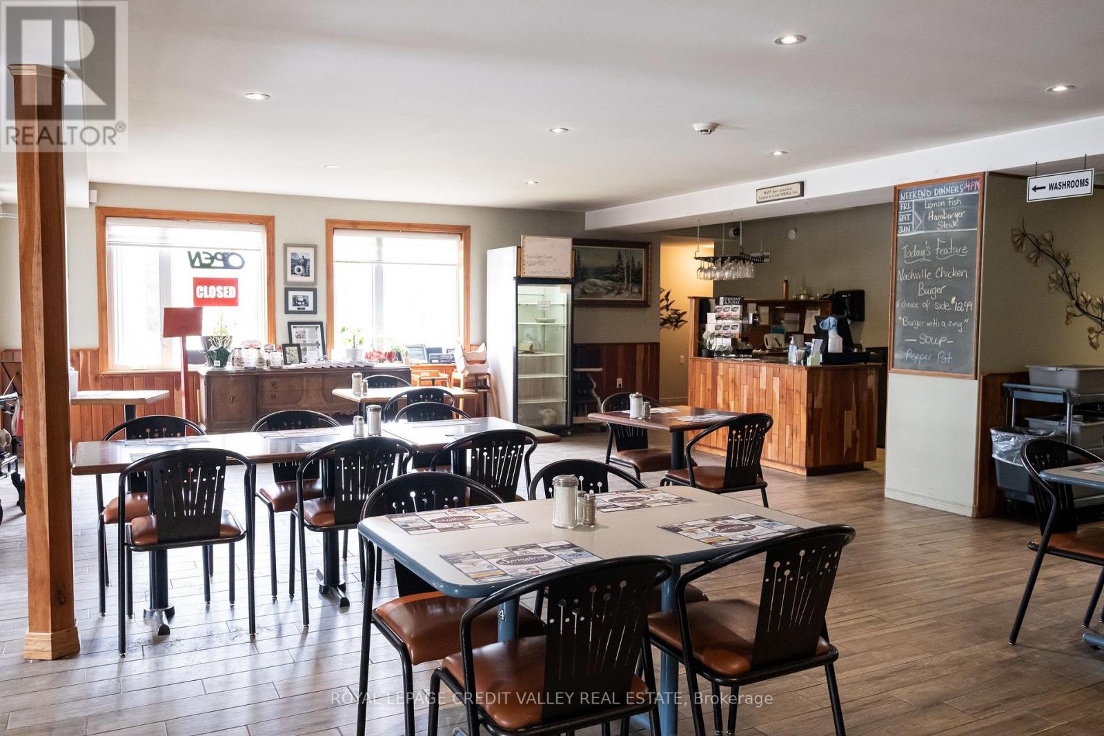 Springbrook Diner has long been a popular destination for both locals and travelers, known for its great food and welcoming atmosphere. Ideally situated on a well-traveled route frequented by cottagers, sports teams, and tourists, this property features a successful restaurant and a spacious banquet hall that accommodates over 100 guests. Included with the business is a well-maintained 3-bedroom residence perfect for owner occupancy or as a source of rental income. The restaurant offers excellent visibility, plenty of parking, and has benefited from numerous recent updates to the building. This is a fantastic opportunity to own a thriving, turnkey business and take control of your future. (id:51158)