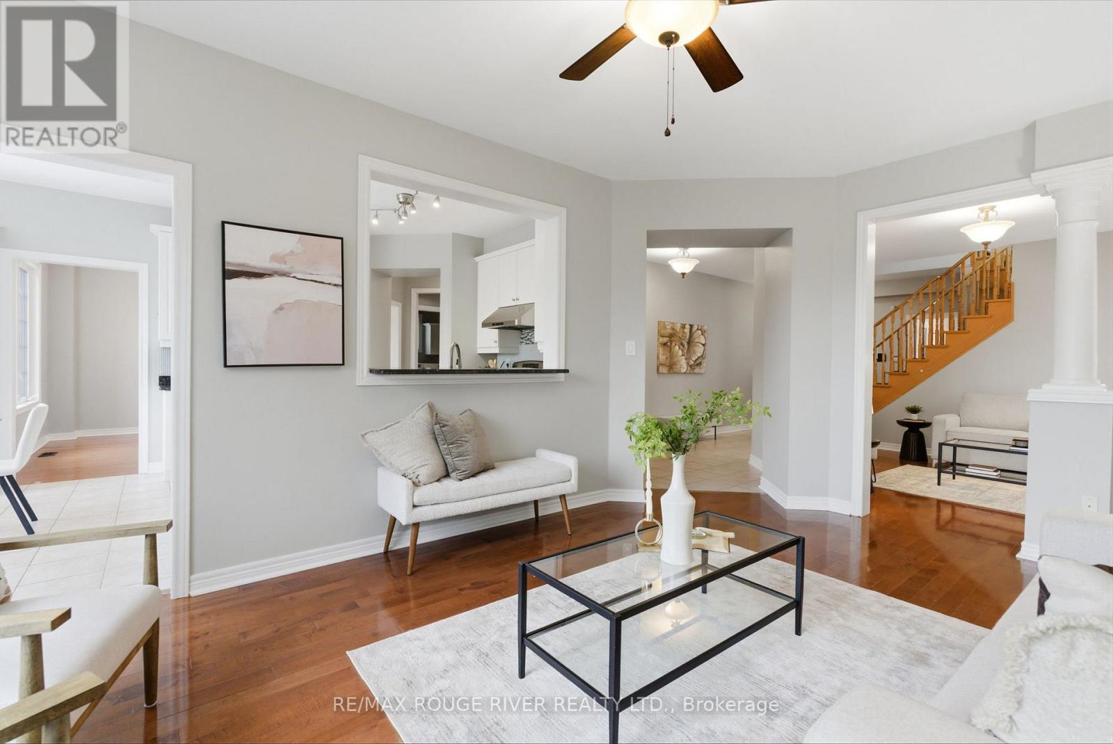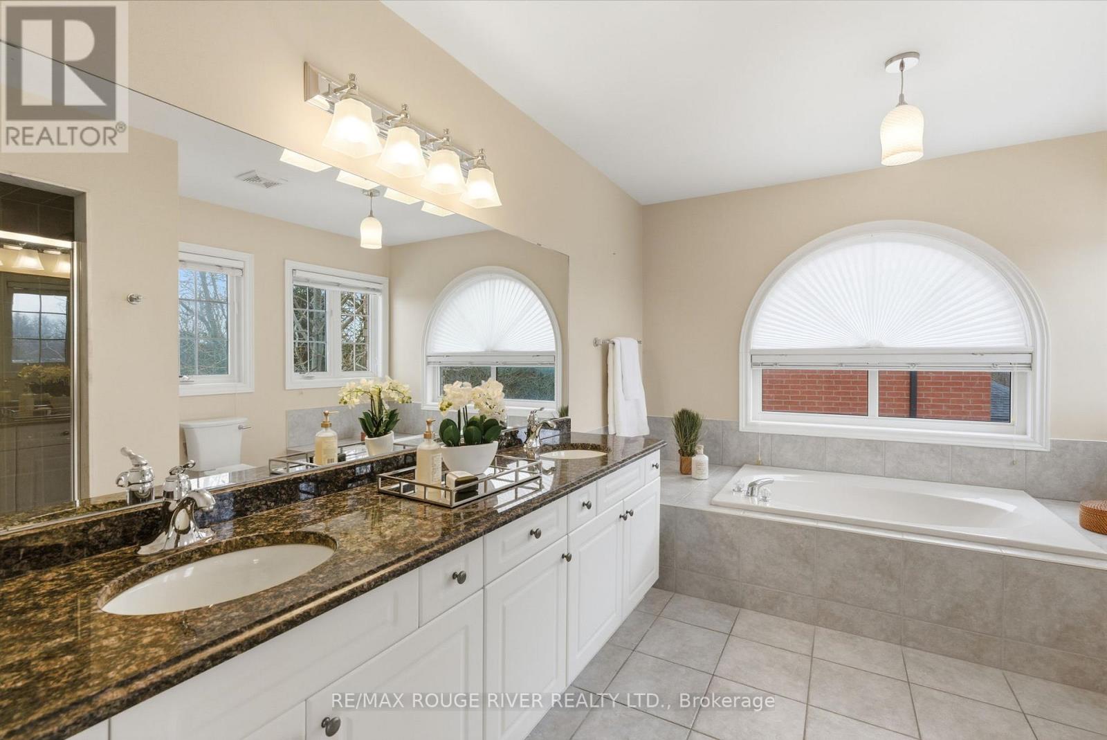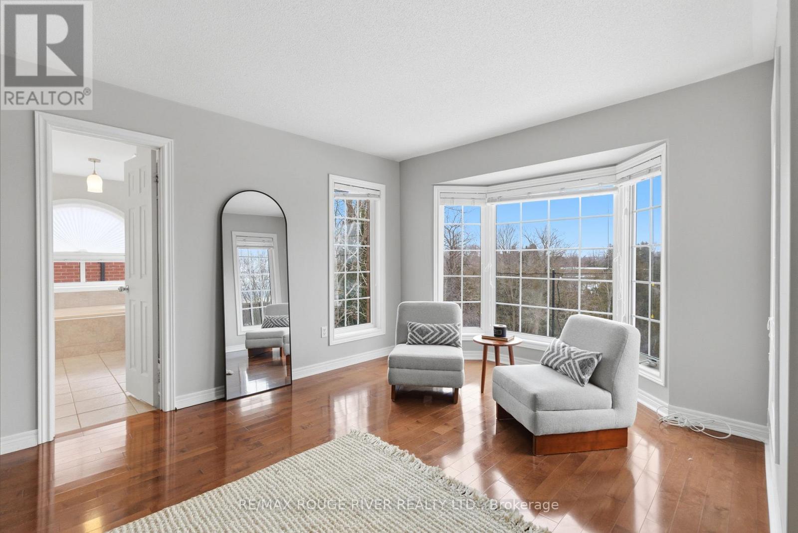 Prepare to be impressed by this remarkable 5-bedroom residence offering over 4,000 sq ft of thoughtfully designed living space, perfectly positioned on a premium lot backing onto the picturesque Winchester Golf Course. Step inside to a bright and inviting main level finished with warm maple hardwood floors throughout. The chef-inspired kitchen is both stylish and functional, featuring granite countertops, stainless steel appliances, a sunny bay window, and a walk-out to the deck-ideal for indoor-outdoor living with sweeping golf course views. The open living and dining areas create an effortless flow for entertaining, with the dining room enhanced by an elegant coffered ceiling. A spacious family room with large windows provides a comfortable gathering space, while a private main-floor office behind French doors offers a quiet retreat for work or study. Main-floor laundry adds everyday convenience. The upper level is designed with comfort and privacy in mind. The expansive primary suite delivers a true escape, complete with a walk-in closet, a spa-like 5-piece ensuite, and stunning views of the fairways. The remaining bedrooms are all generously sized, each with hardwood floors, including one with soaring cathedral ceilings, two with semi-ensuite access, and another with its own full 5-piece ensuite-perfect for growing families or overnight guests. Downstairs, the fully finished basement continues to impress with a massive recreation space featuring a wet bar, 3-piece bathroom, and a walk-out to the patio. A fifth bedroom, a dedicated exercise room with pot lighting, and a show-stopping theatre room complete this level, offering endless options for relaxation and entertainment. Outdoors, the home is equally impressive with interlock landscaping in both the front and backyard, enhancing curb appeal and creating beautiful, low-maintenance spaces. A truly exceptional home combining refined finishes, expansive living space, and a coveted golf course backdrop. (id:51158)