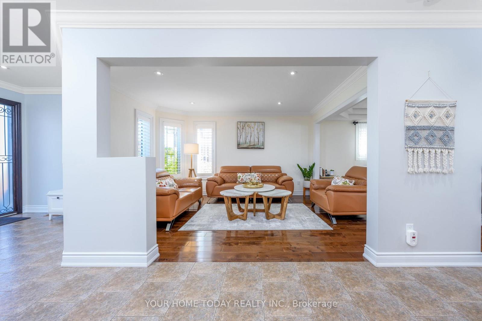 Bring the family! Multi-generational living with 2 primary bedrooms and basement in-law suite with rough-in for kitchen & laundry! A stone walkway, lovely gardens/landscaping, armor stone, covered stone porch and gorgeous entry system welcome you into this impeccable multi-generational home offering stylish hardwood and ceramic flooring, crown molding, California shutters and tasteful décor throughout. A spacious foyer sets the stage for this exceptional home featuring an airy open concept design with formal living and dining rooms for entertaining and spacious family room and kitchen, the heart of the home, located across the back with views over the amazing yard. The kitchen features classy 2-tone cabinetry, large island with seating, granite counter, glass tile backsplash, stainless steel appliances, pot lights and garden door walkout to a tiered patio and yard. The stunning family room features soaring windows and ceiling and is open to the upper-level balcony - talk about Wow factor! Wrapping up the main level is the well-equipped mudroom designed with family in mind, enviable laundry room, powder room and garage access. A sweeping wood staircase takes you to the tastefully finished upper level where you will find a spacious upper hall with views over the family room, 4 spacious bedrooms (2 primary) and 3 full bathrooms. The primary bedrooms enjoy walk-in closets and full ensuites, while the 3rd and 4th bedrooms share the main 4-piece (one with semi-ensuite access). A beautifully finished basement adds to the living space with a rec/living room (rough-in for kitchenette), 2 large bedrooms, 3-piece bathroom (rough-in for laundry), large cold cellar and plenty of storage/utility space. An amazing yard offers a party-sized patio, gazebo, covered barbeque area and lovely landscaping. A double garage and large driveway (parking for 7 cars in total) complete the package. Great location. Close to schools, parks, rec center, trails and main roads for commuters. (id:51158)