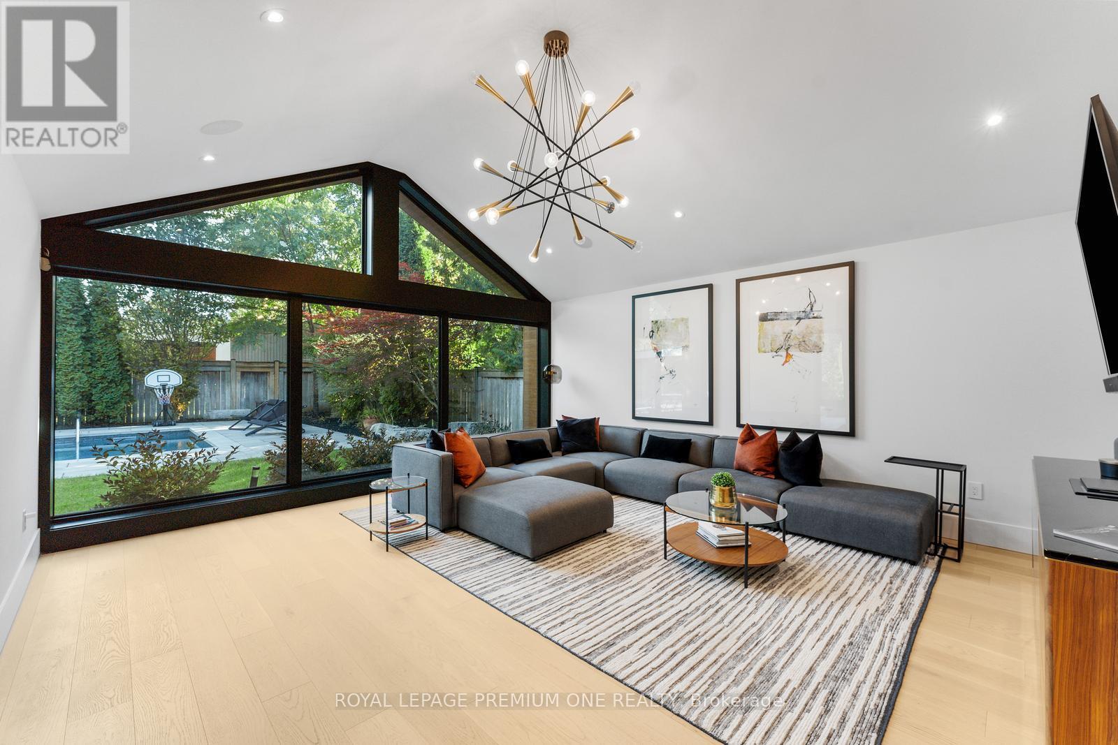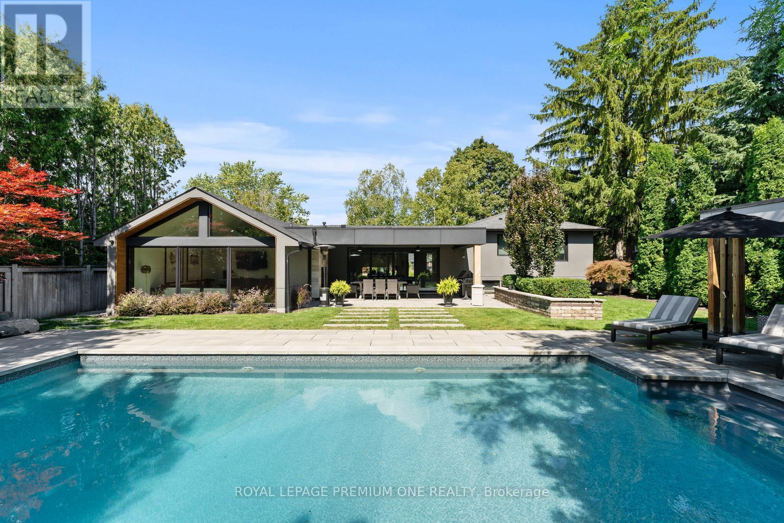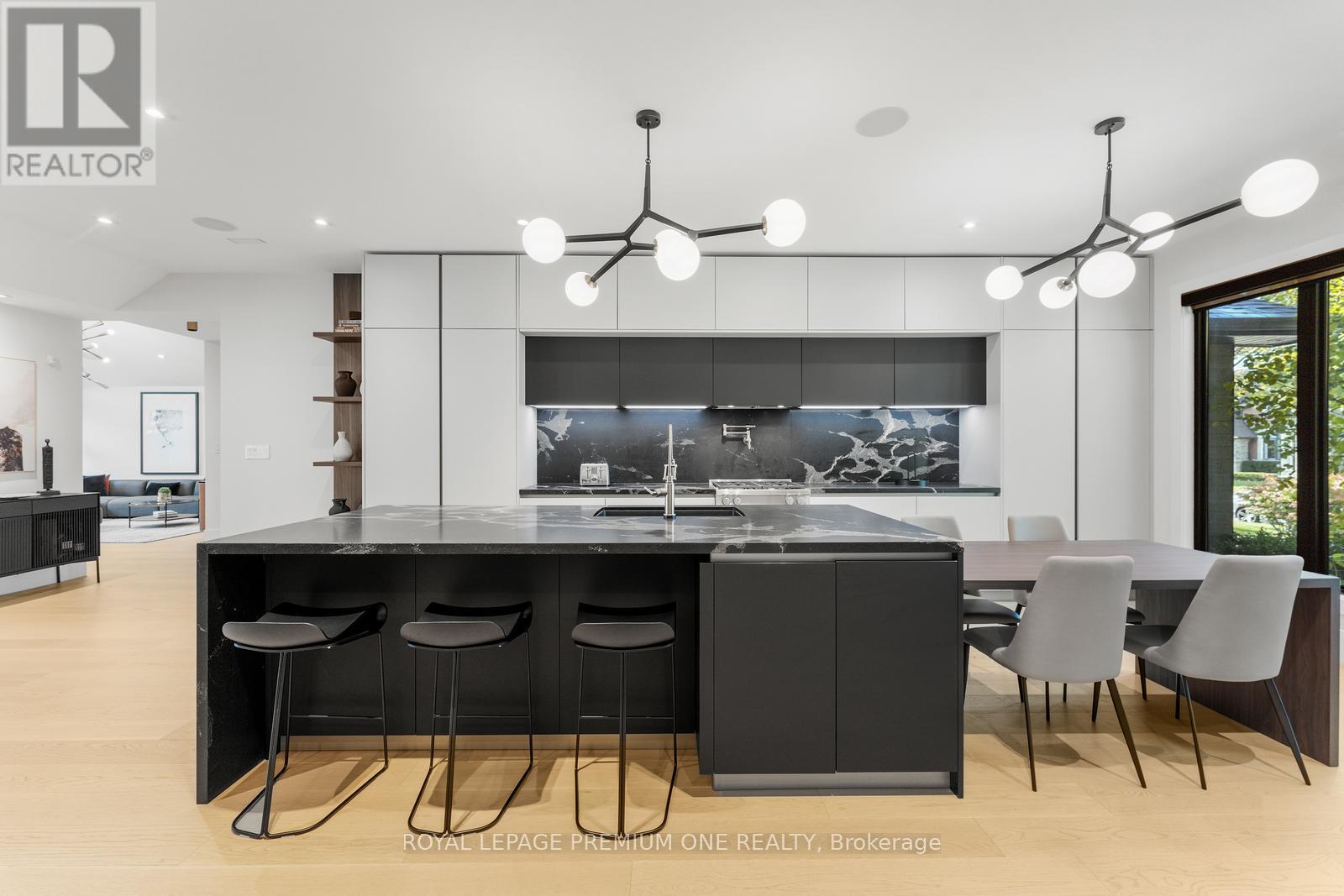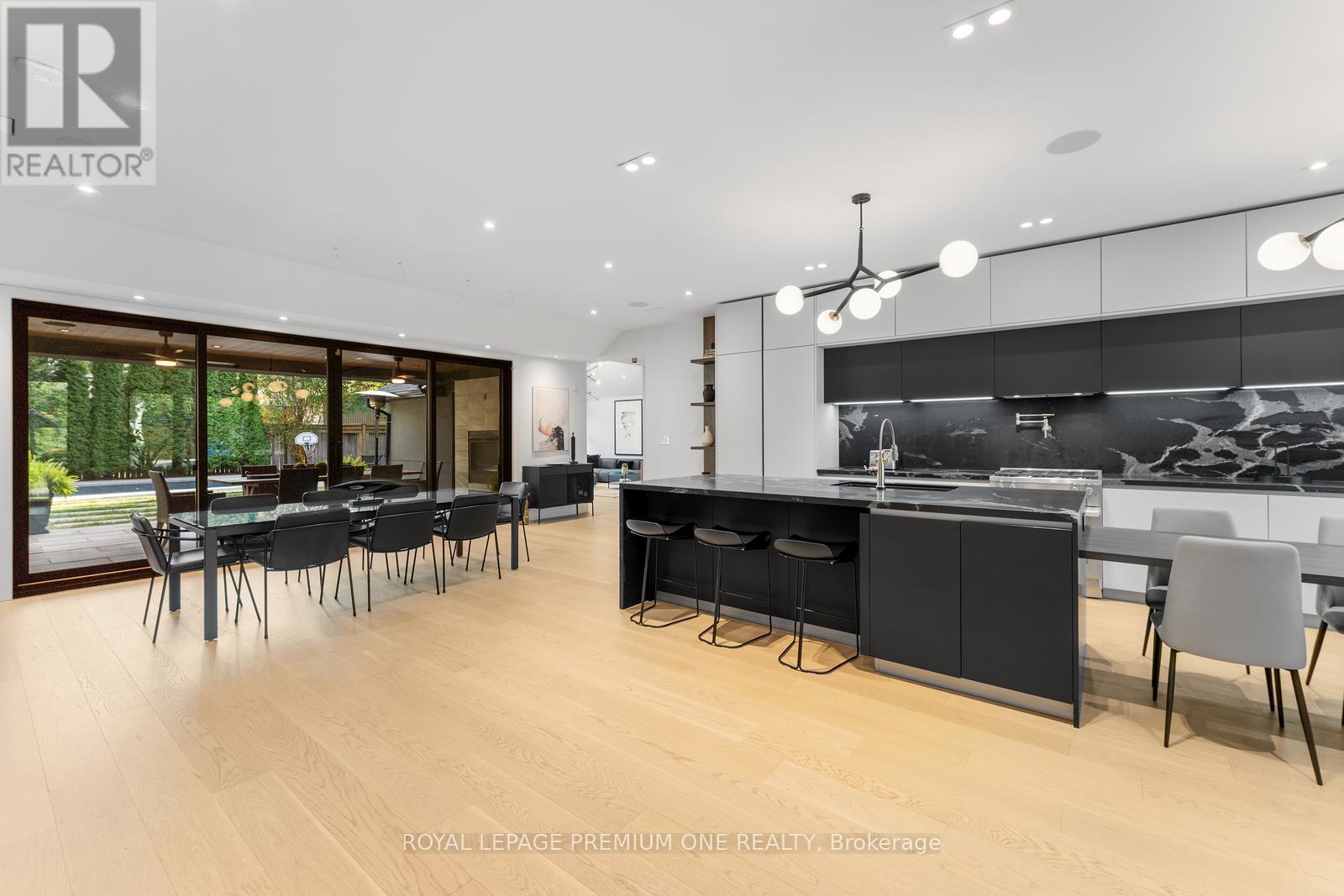 Welcome home to 49 Norman Drive! This modern architectural masterpiece presents a rare and unique offering blending refined luxury and clean contemporary lines in the heart of King City. The custom front opens to a bright, open concept layout featuring large custom windows, functional sightlines and oak hardwood flooring thru-out the living space. The reimagined Chefs Kitchen designed by Muti Kitchens is an entertainers delight boasting sleek custom cabinetry, a large center island with honed granite counters and a cascading waterfall. Complimented further by top-of-the-line Miele appliances and an extended breakfast table area. The spacious dining area is the perfect setting for hosting dinner soirees and seamlessly flows into the outdoor Loggia area, where guests can enjoy after-dinner cocktails overlooking the gorgeous backyard oasis. The large, bright living room features a beautiful, vaulted ceiling and a large, picturesque window offering stunning views of the backyard oasis. A two-sided gas Fireplace adds warmth & coziness for evening relaxation. The stunning backyard oasis provides the perfect backdrop for summer entertaining with family & friends, featuring a 15x28ft inground saltwater pool and a cedar-finished Cabana outfitted with a 4pc bathroom & kitchenette. The manicured landscaped grounds and loggia area offer a serene setting for al fresco dining. The Primary bedroom includes access to a spa-inspired ensuite with heated floors, porcelain slab walls, floating vanities, and a zero-entry shower. The lower level provides additional living space with a large recreational room, an office and a 4-pc ensuite. Located in close proximity to numerous amenities with easy access to Hwy 400 & the King City GO Station. Steps to beautiful restaurants/shops and top-rated schools (Villanova, Country Day School). King Valley & Kings Riding Golf Clubs & the New Zancor Recreational Center. Your refined luxury lifestyle awaits at 49 Norman Dr in King City! (id:51158)