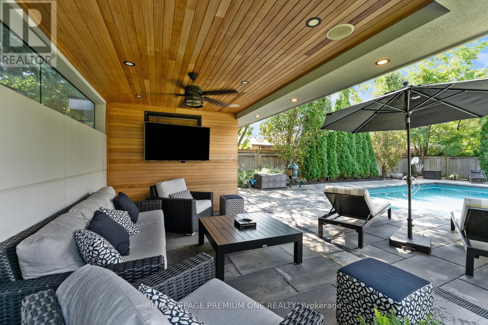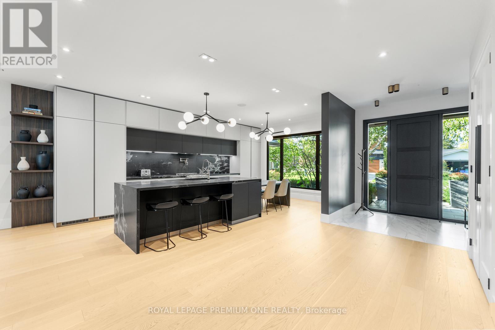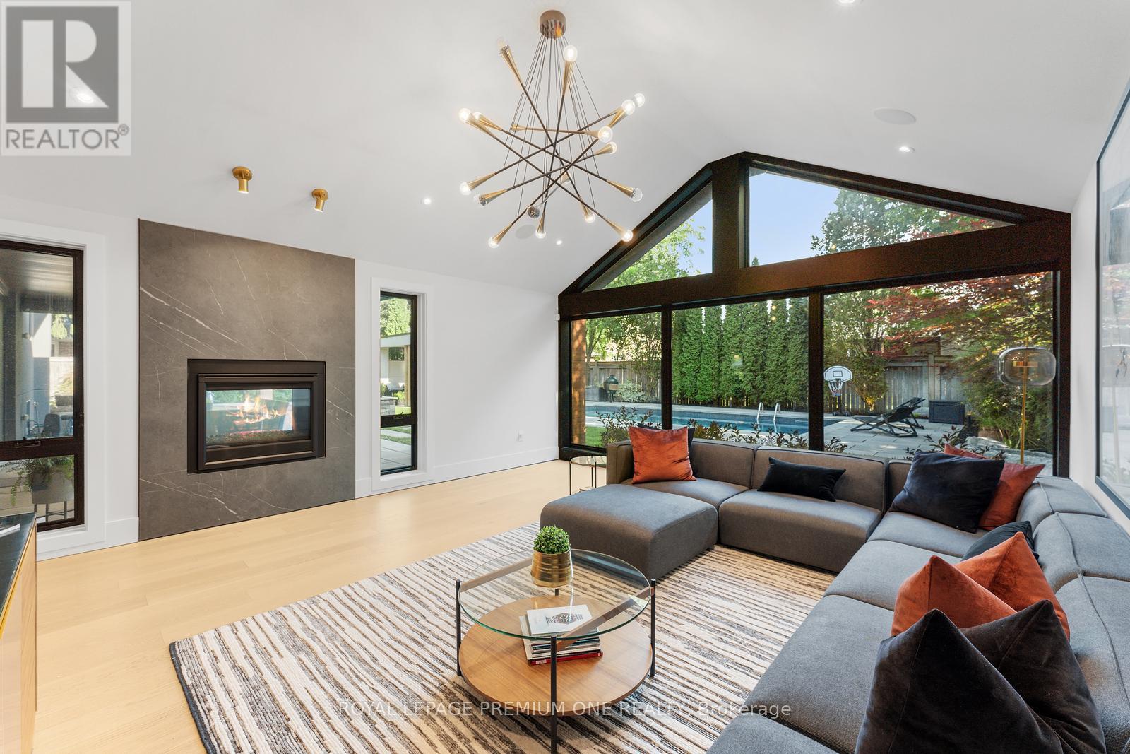 Welcome home to 49 Norman Drive! This modern architectural masterpiece presents a rare and unique offering blending refined luxury and clean contemporary lines in the heart of King City. The custom front opens to a bright, open concept layout featuring large custom windows, functional sightlines and oak hardwood flooring thru-out the living space. The reimagined Chefs Kitchen designed by Muti Kitchens is an entertainers delight boasting sleek custom cabinetry, a large center island with honed granite counters and a cascading waterfall. Complimented further by top-of-the-line Miele appliances and an extended breakfast table area. The spacious dining area is the perfect setting for hosting dinner soirees and seamlessly flows into the outdoor Loggia area, where guests can enjoy after-dinner cocktails overlooking the gorgeous backyard oasis. The large, bright living room features a beautiful, vaulted ceiling and a large, picturesque window offering stunning views of the backyard oasis. A two-sided gas Fireplace adds warmth & coziness for evening relaxation. The stunning backyard oasis provides the perfect backdrop for summer entertaining with family & friends, featuring a 15x28ft inground saltwater pool and a cedar-finished Cabana outfitted with a 4pc bathroom & kitchenette. The manicured landscaped grounds and loggia area offer a serene setting for al fresco dining. The Primary bedroom includes access to a spa-inspired ensuite with heated floors, porcelain slab walls, floating vanities, and a zero-entry shower. The lower level provides additional living space with a large recreational room, an office and a 4-pc ensuite. Located in close proximity to numerous amenities with easy access to Hwy 400 & the King City GO Station. Steps to beautiful restaurants/shops and top-rated schools (Villanova, Country Day School). King Valley & Kings Riding Golf Clubs & the New Zancor Recreational Center. Your refined luxury lifestyle awaits at 49 Norman Dr in King City! (id:51158)